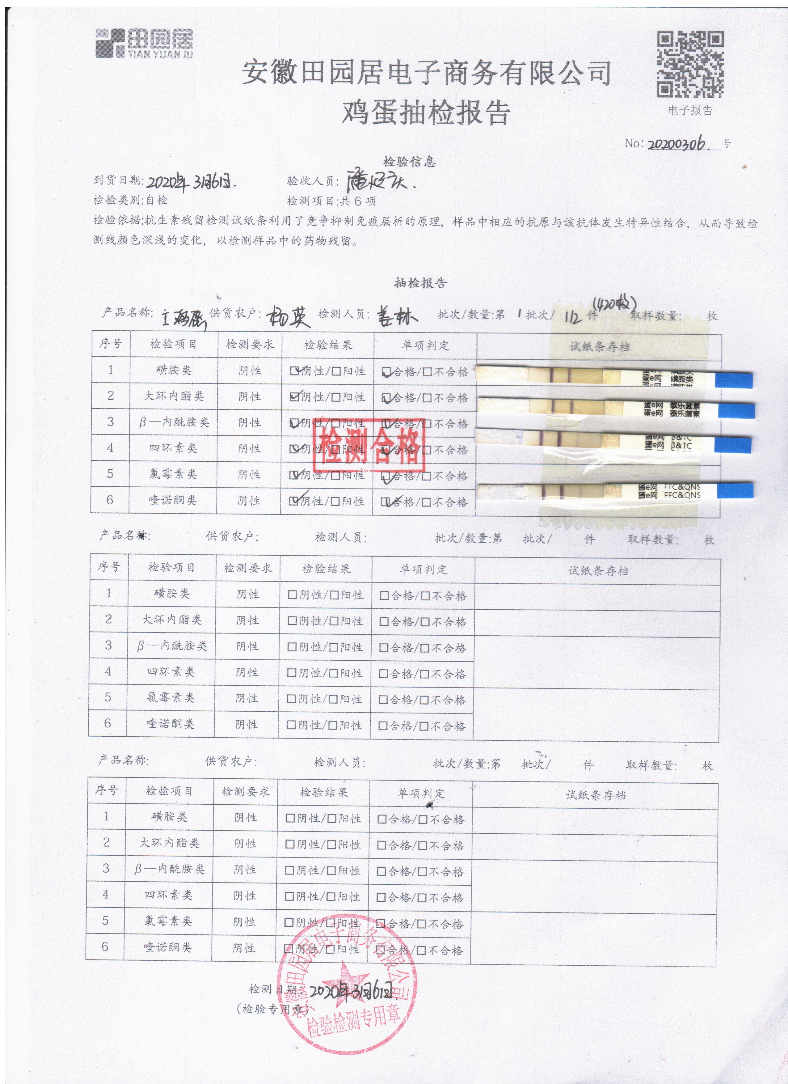 2020年3月6日鲜鸡蛋检测报告