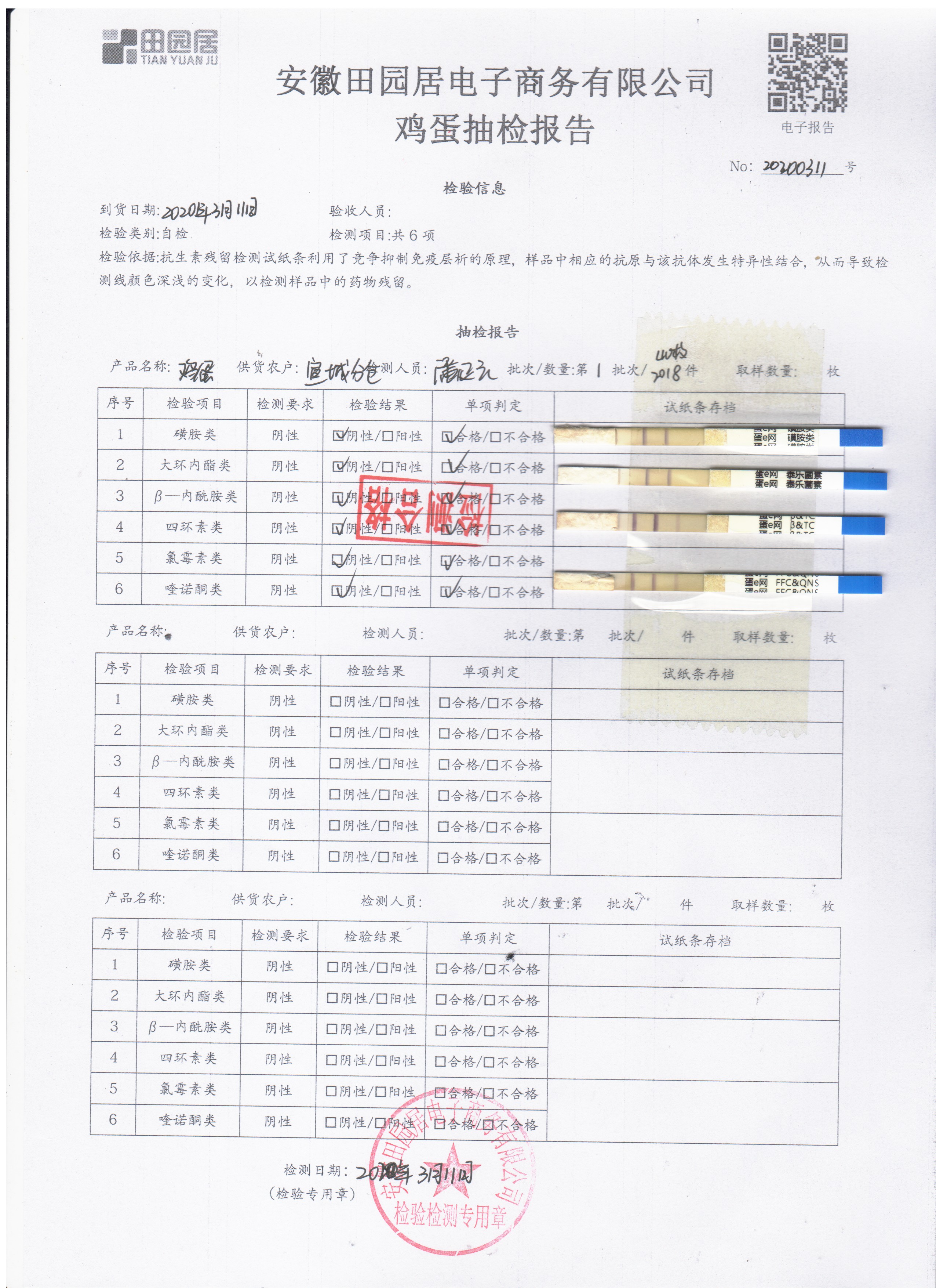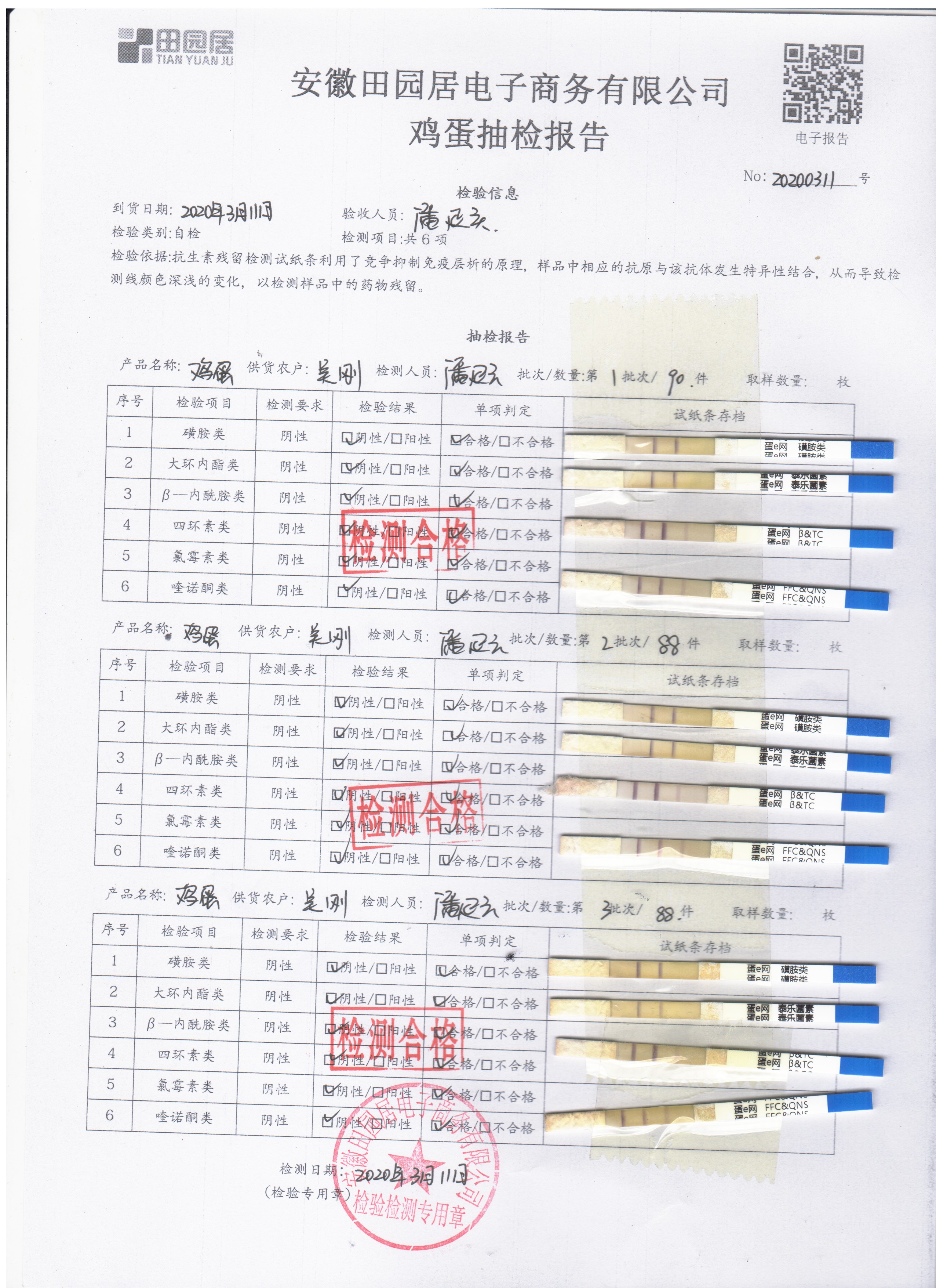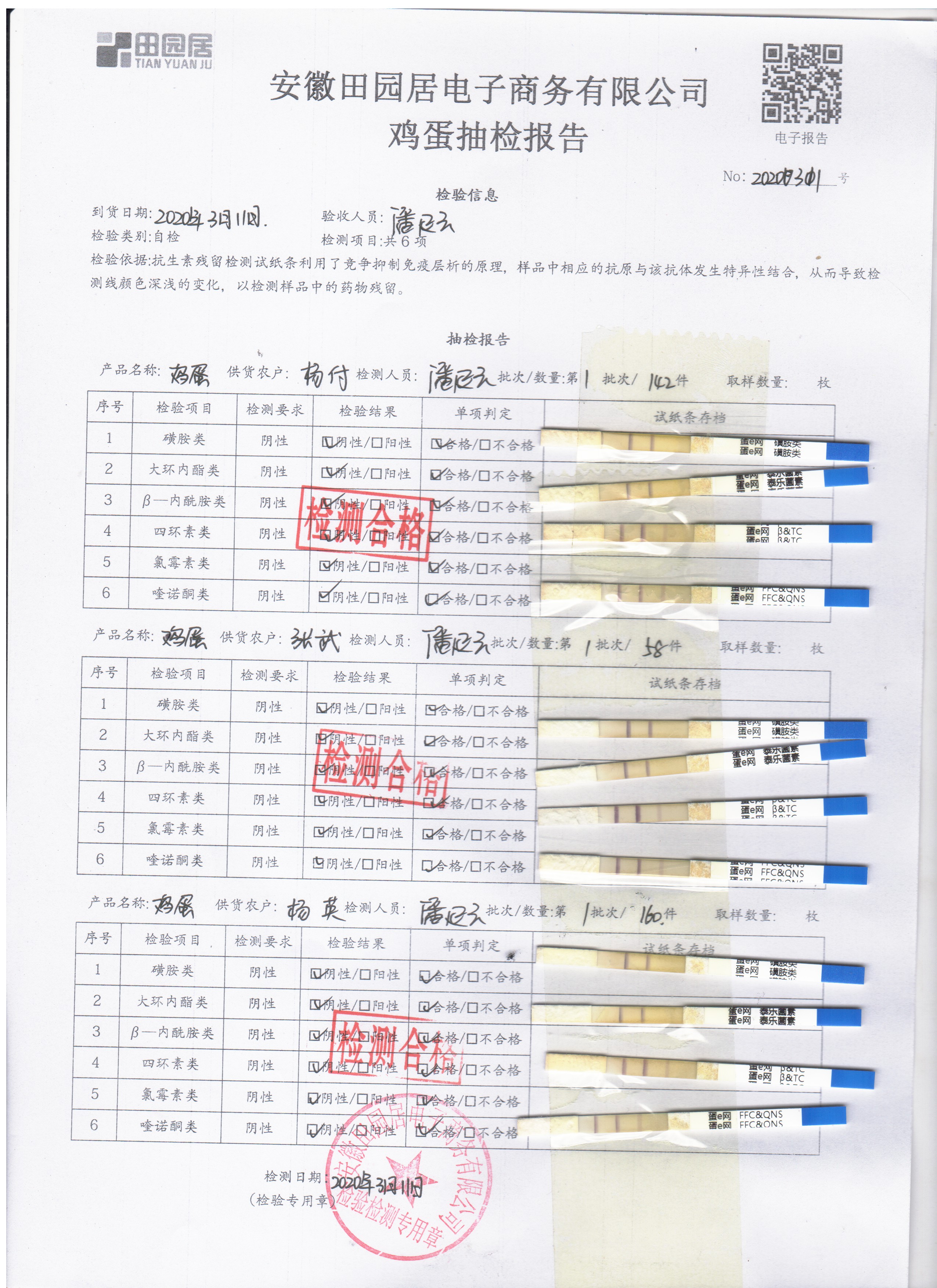 2020年3月11日鲜鸡蛋检测报告