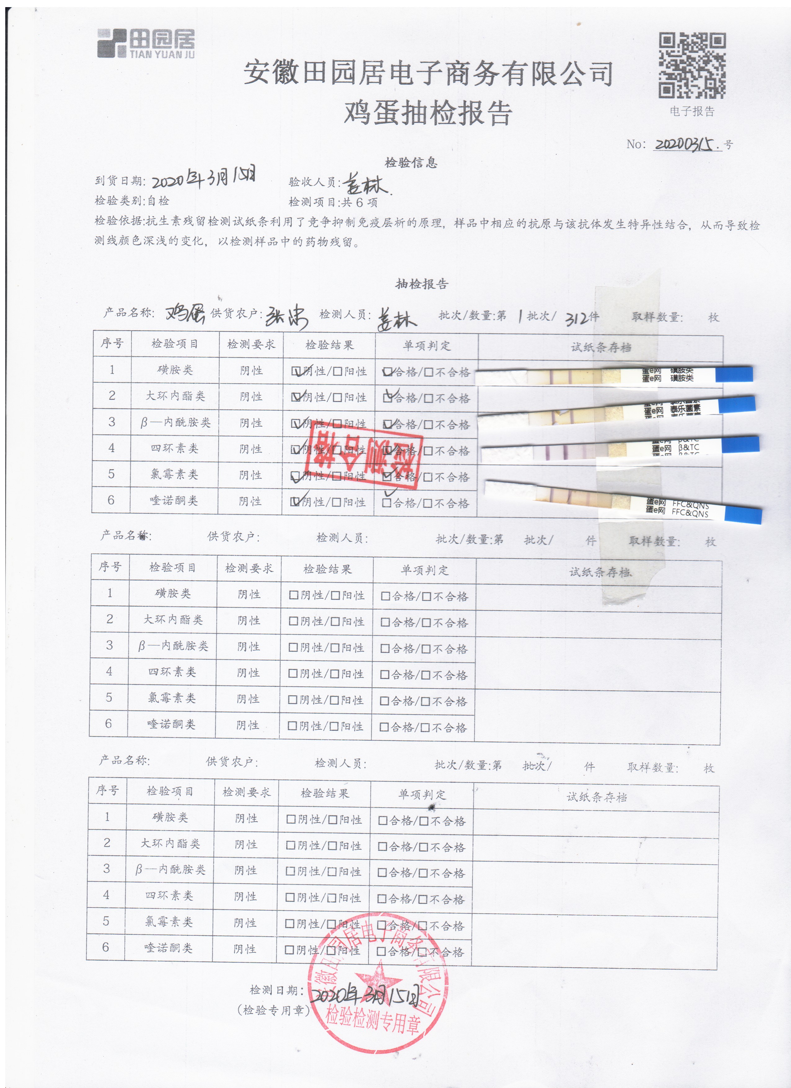 2020年3月15日鲜鸡蛋检测报告
