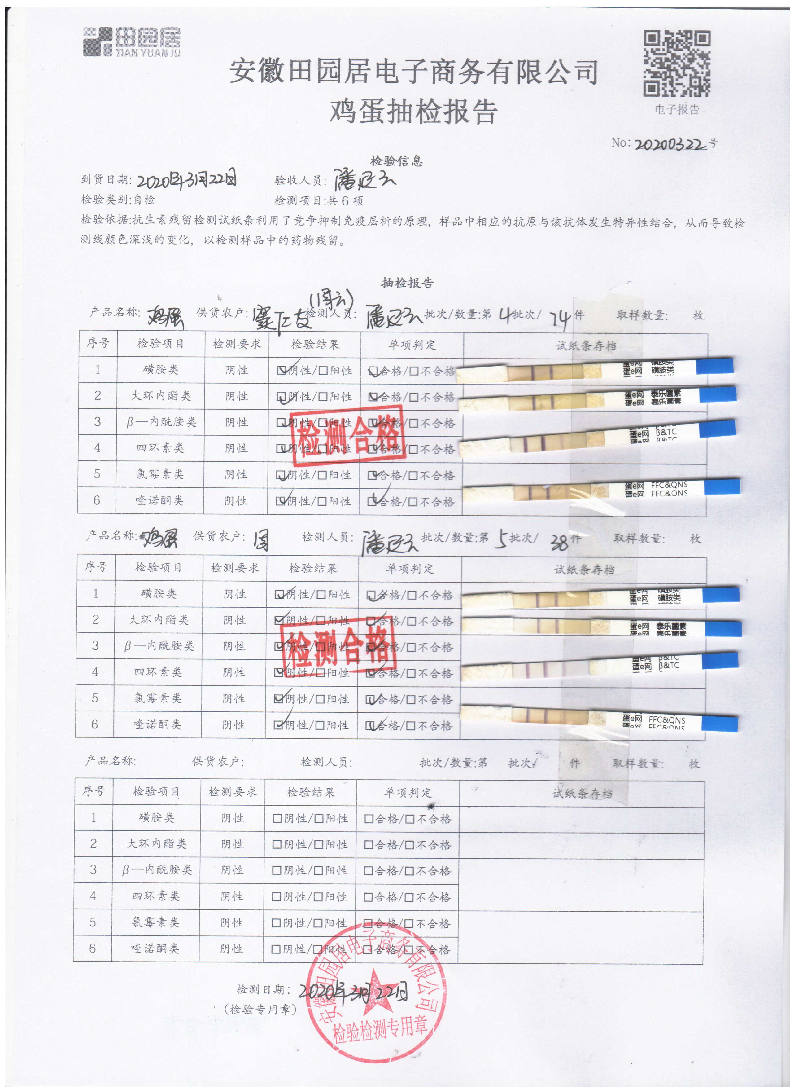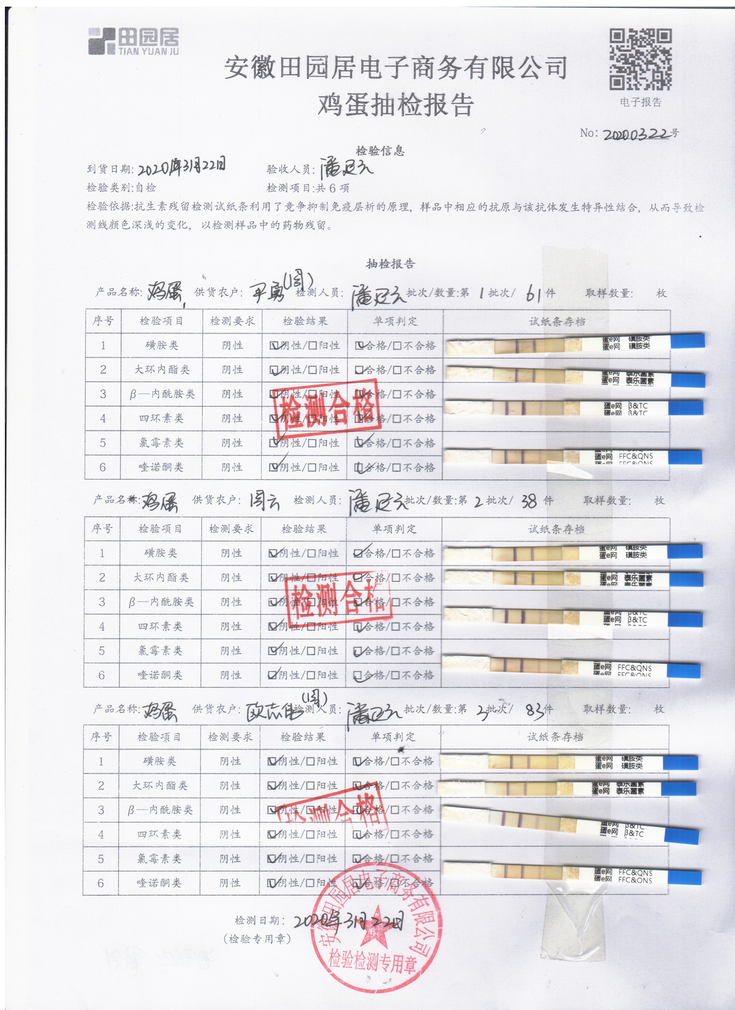 2020年3月22日鲜鸡蛋检测报告