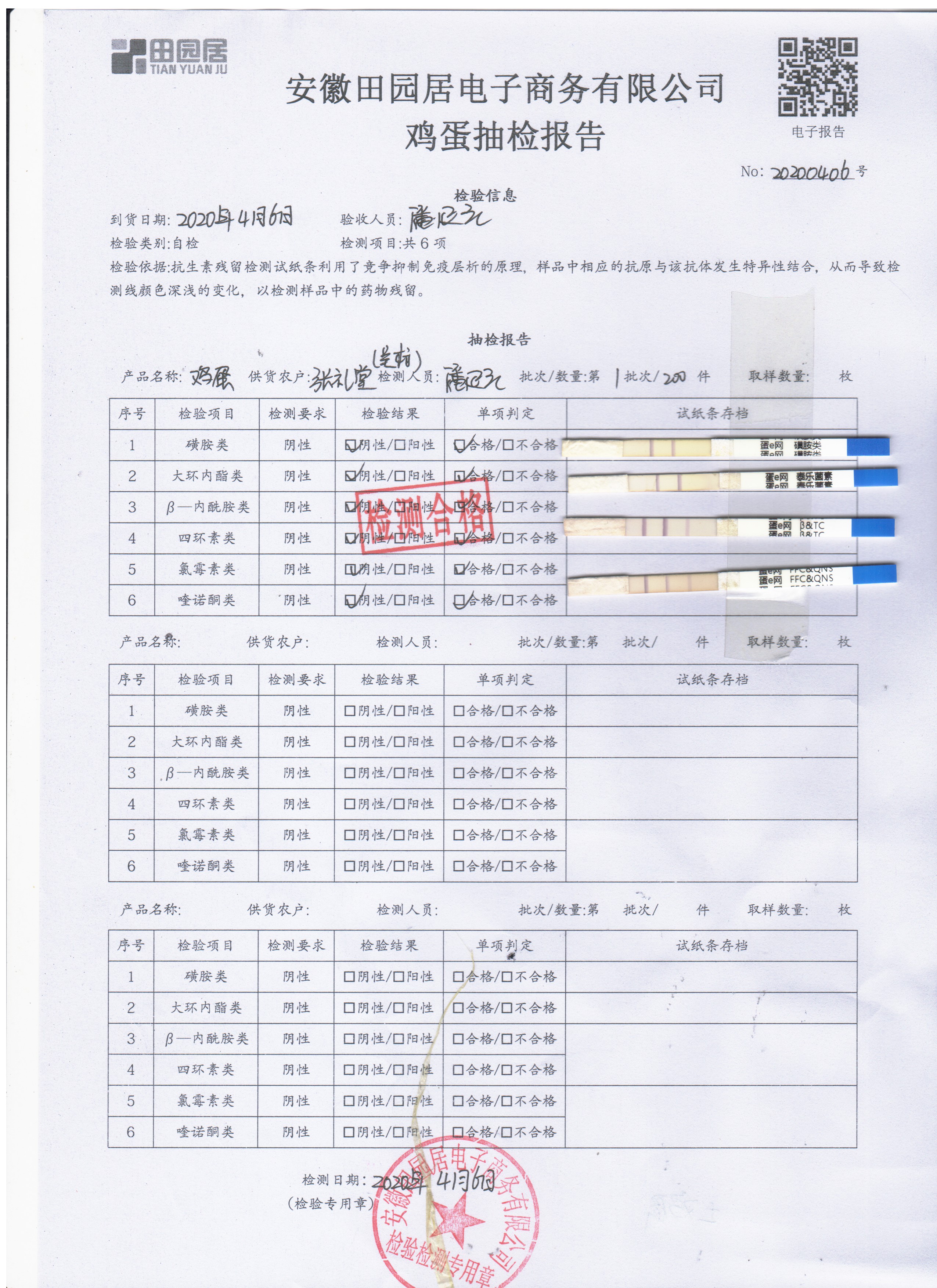 2020年4月6日鲜鸡蛋检测报告