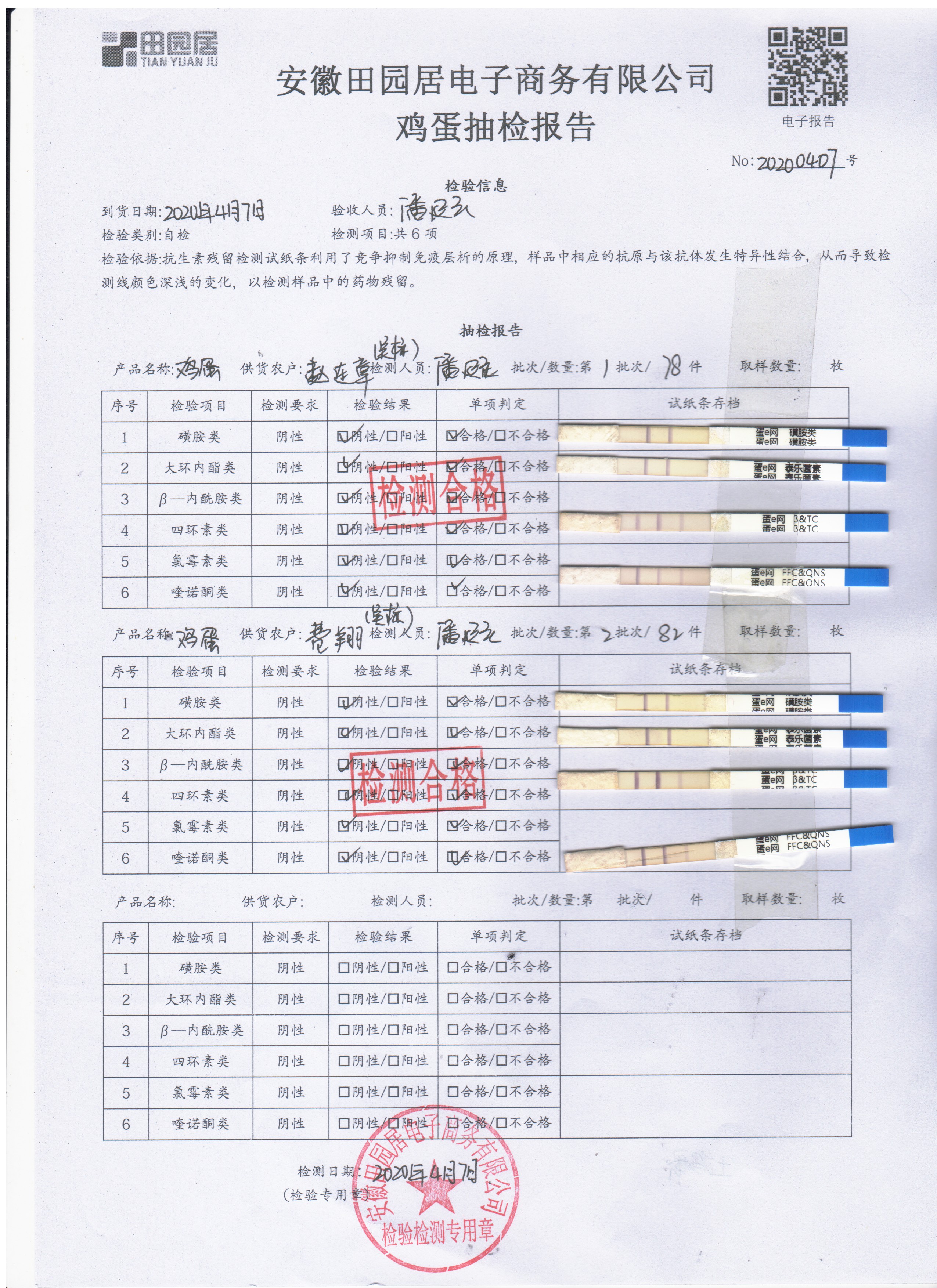 2020年4月7日鲜鸡蛋检测报告