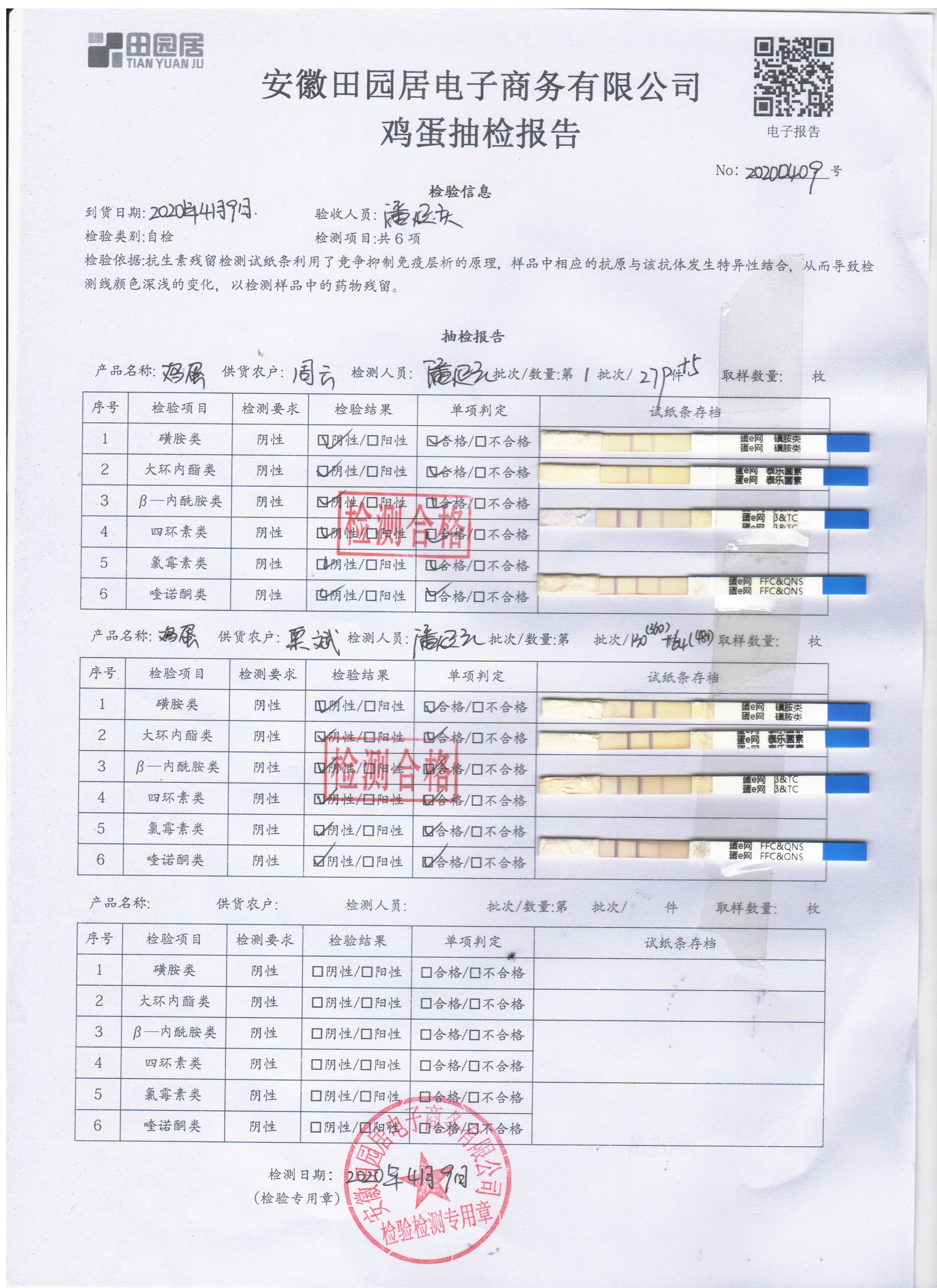 2020年4月9日鲜鸡蛋检测报告