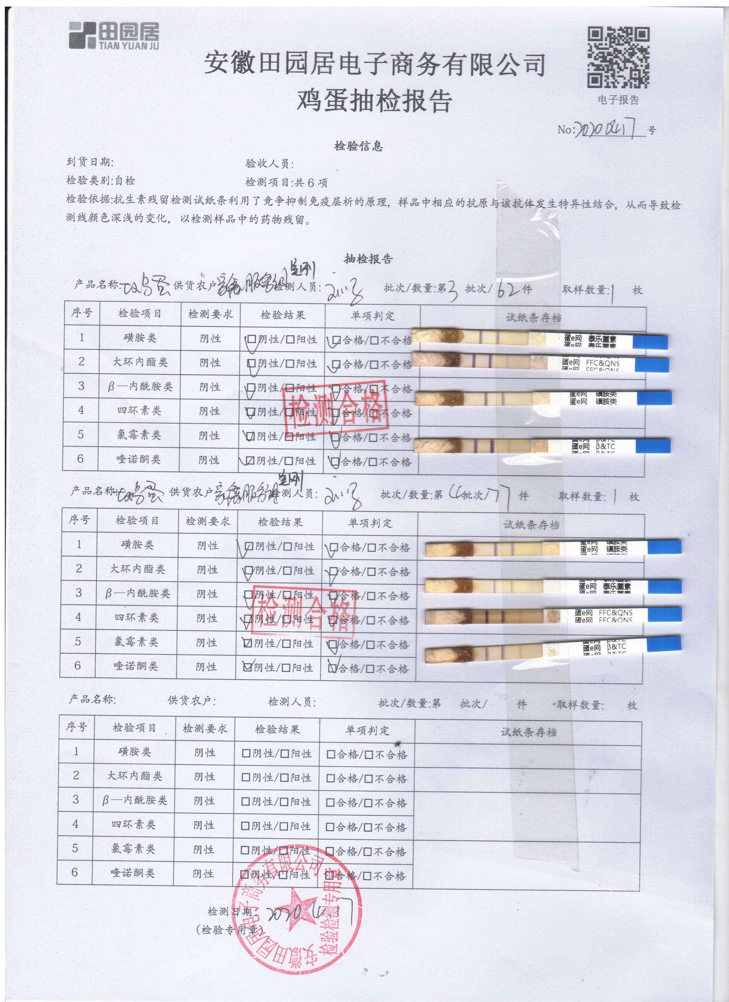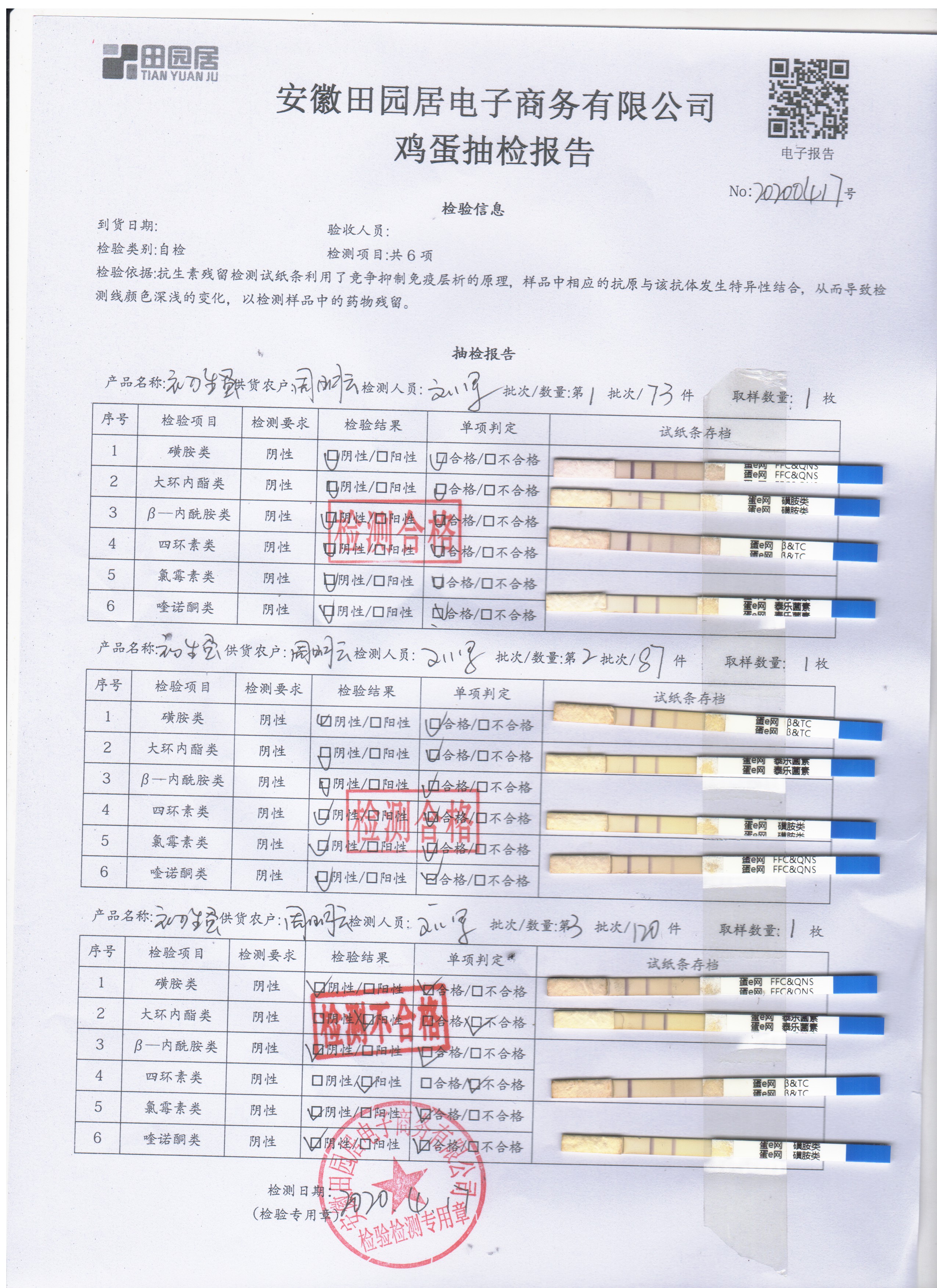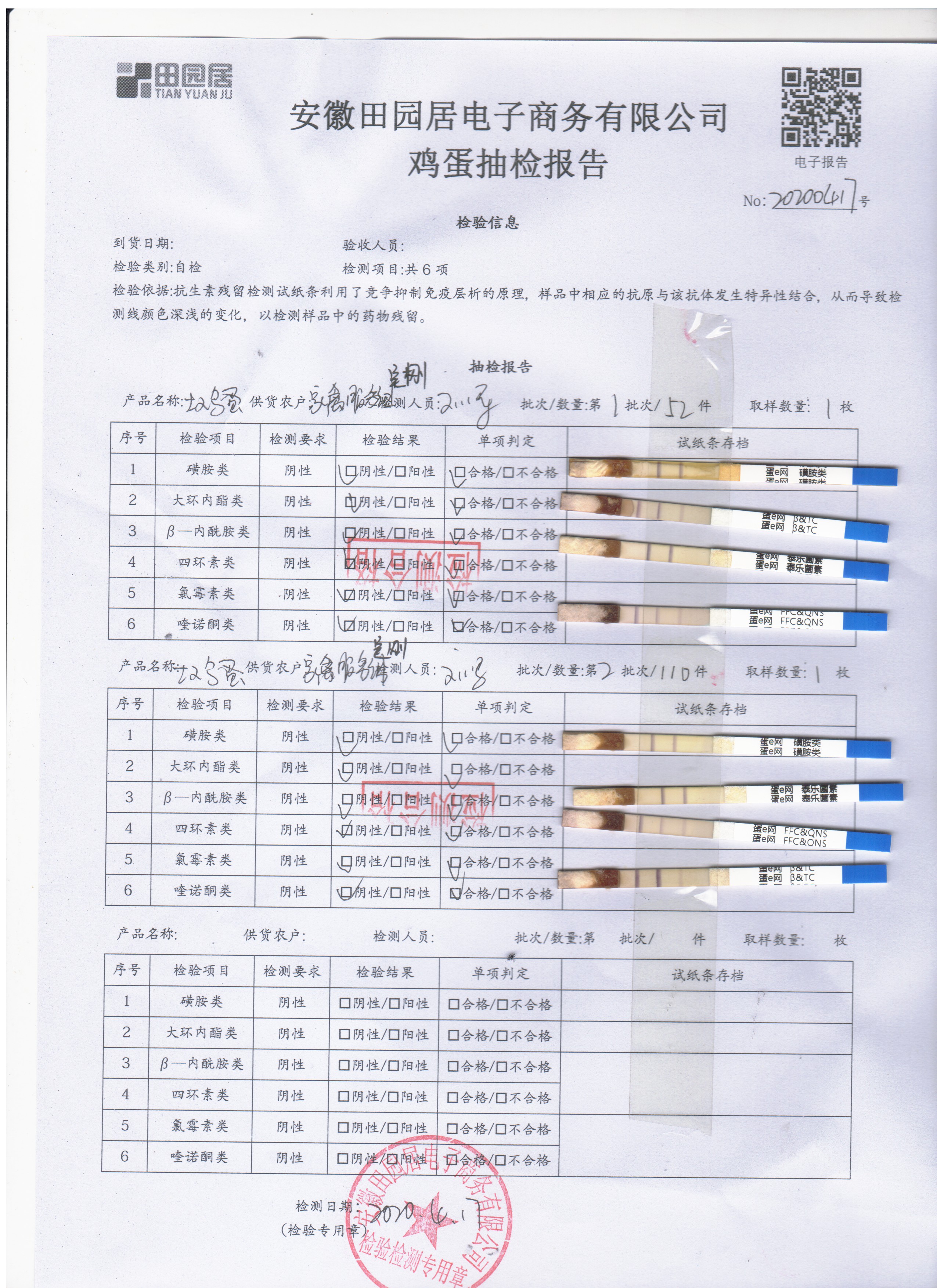 2020年4月17日鲜鸡蛋检测报告