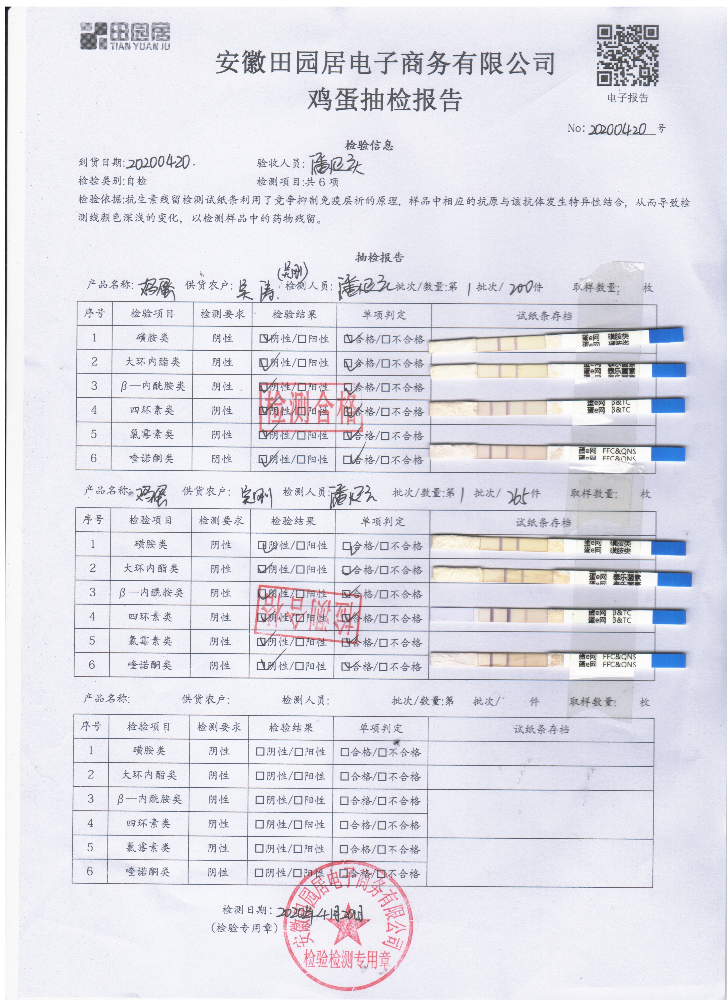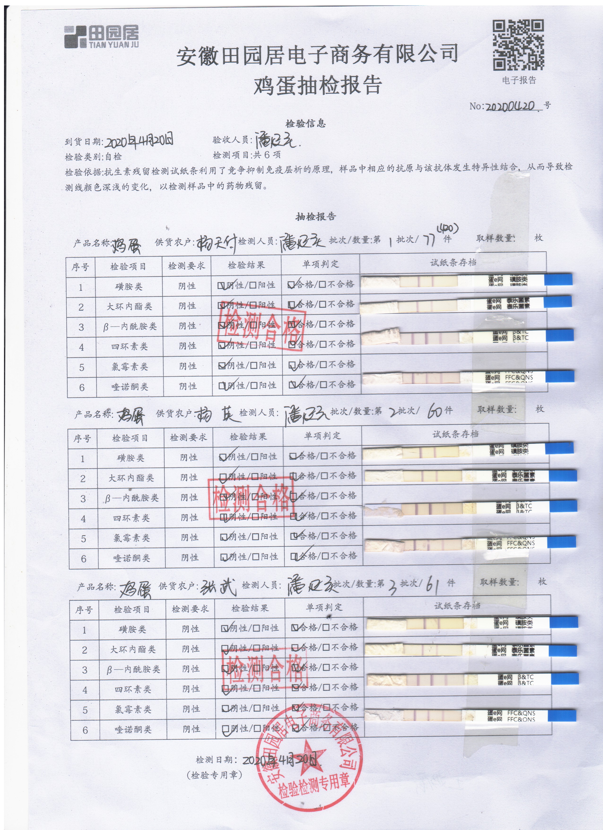 2020年4月20日鲜鸡蛋检测报告