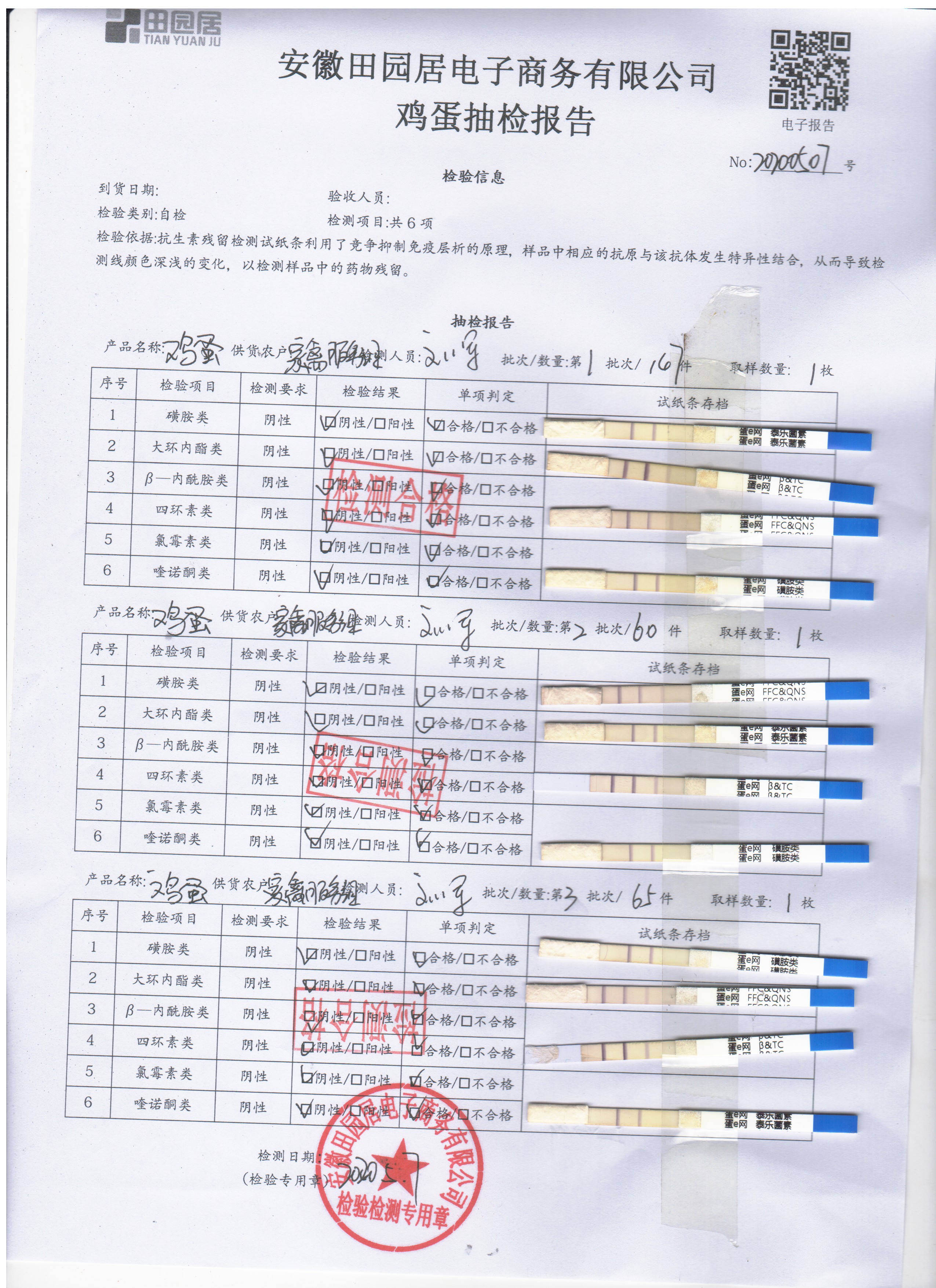 2020年5月7日鲜鸡蛋检测报告