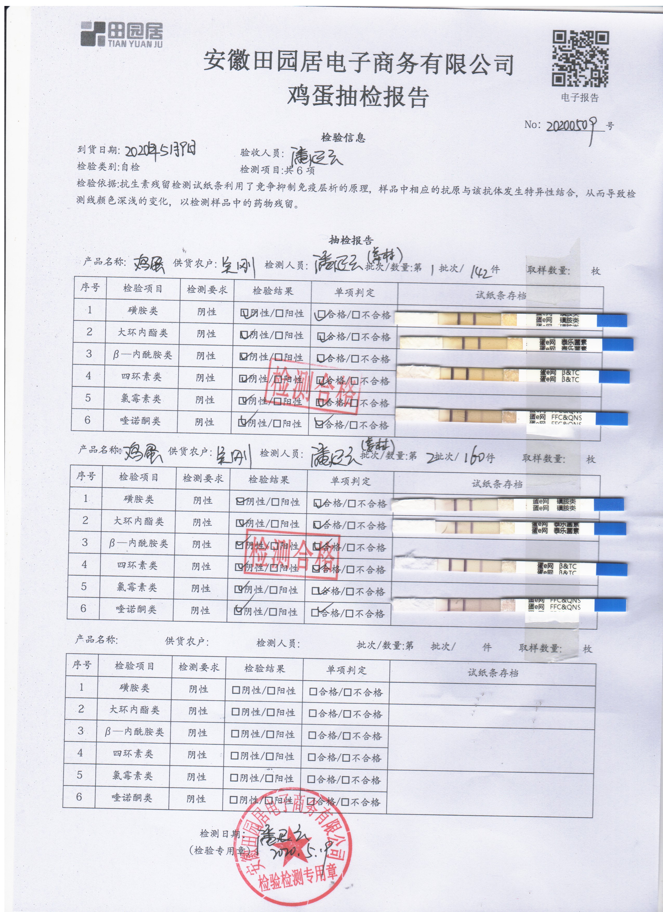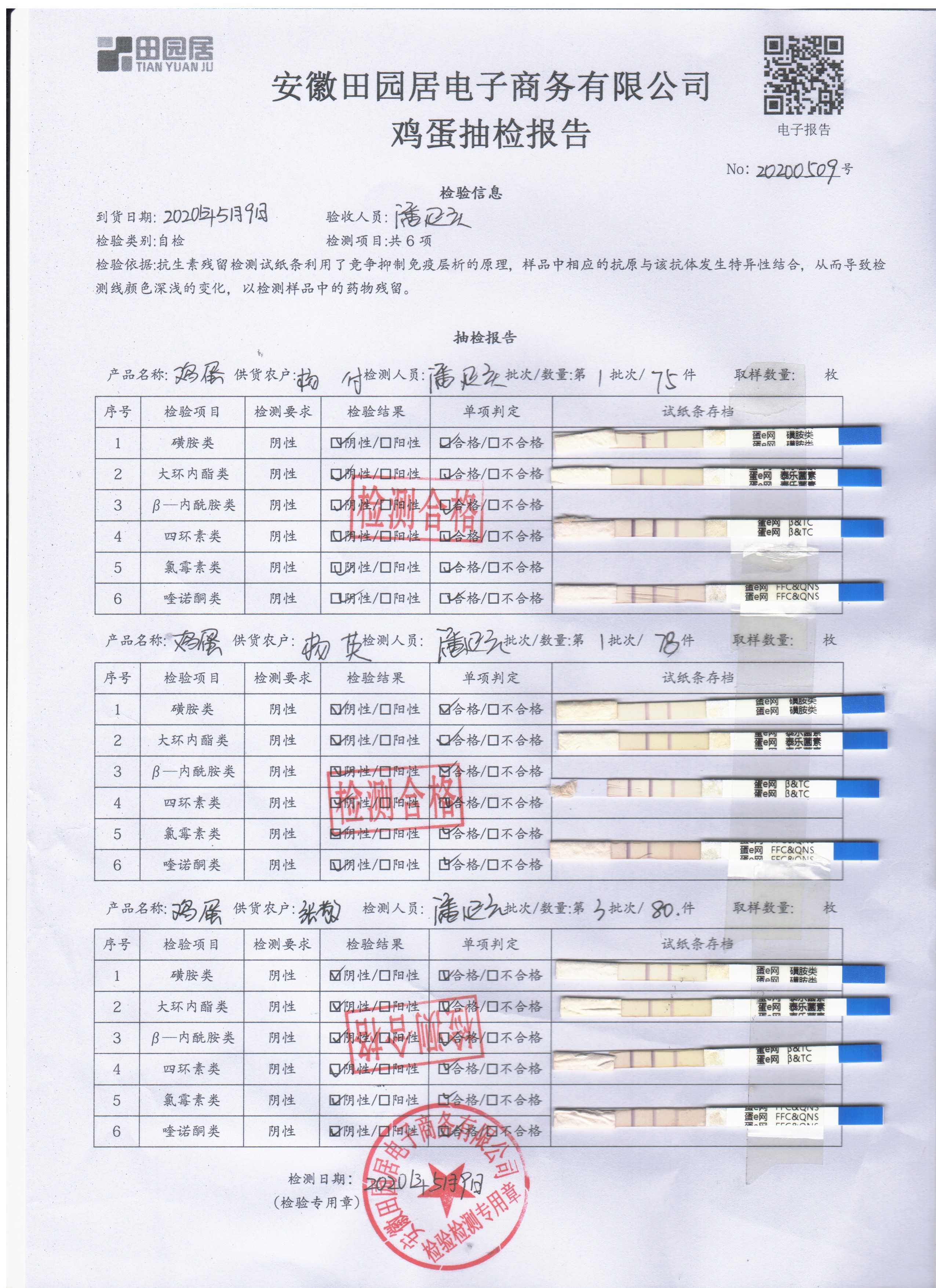 2020年5月9日鲜鸡蛋检测报告