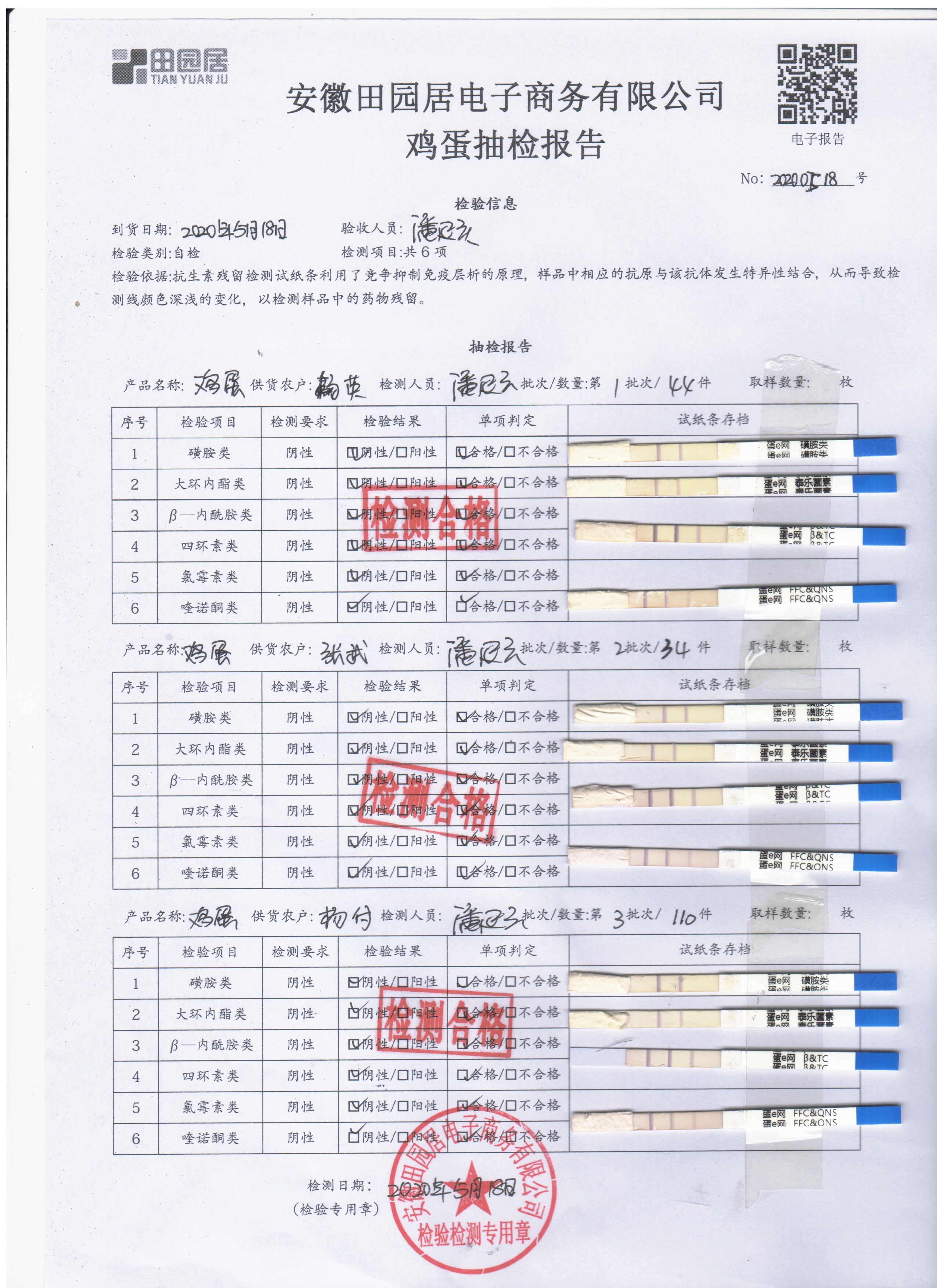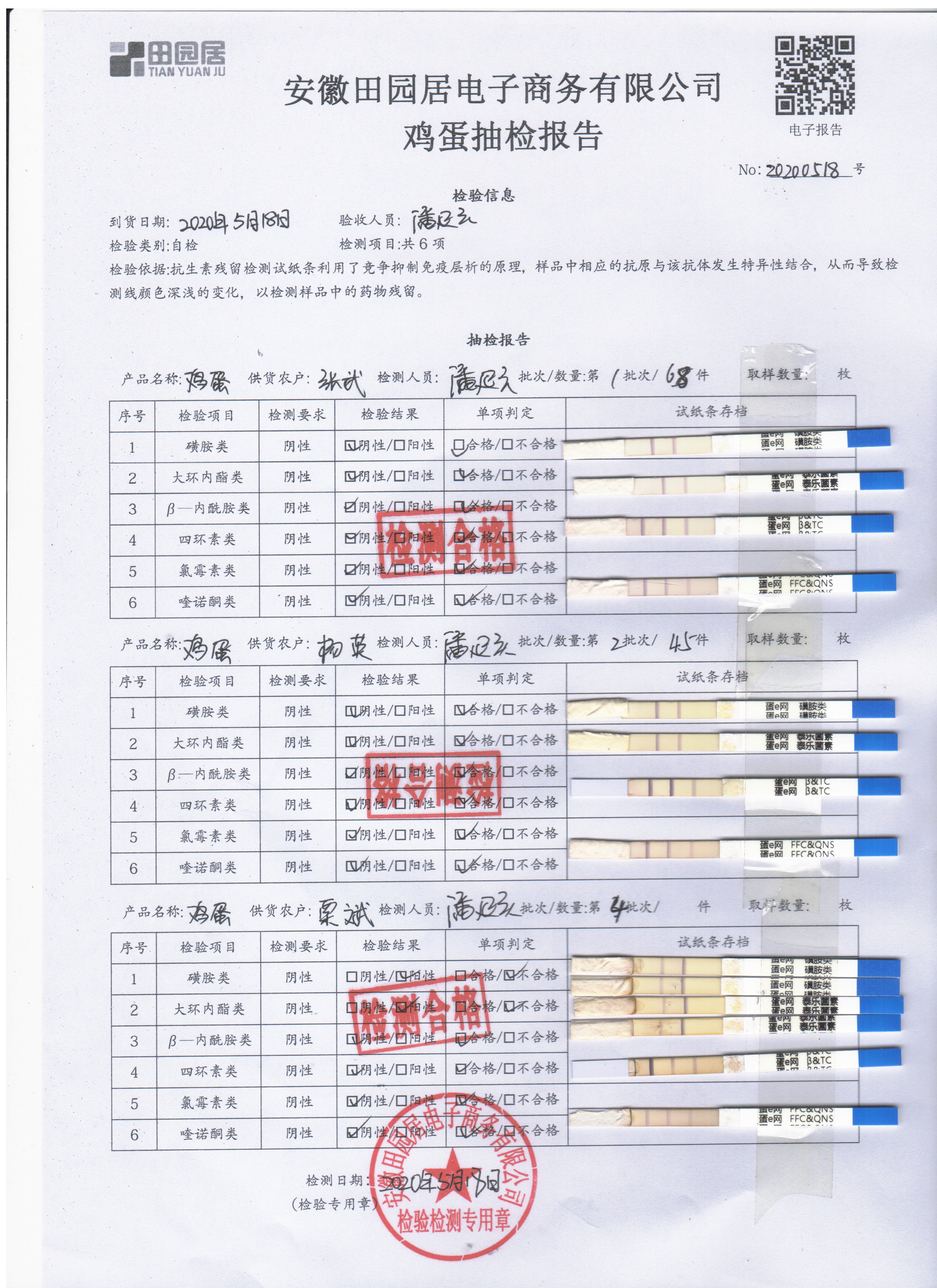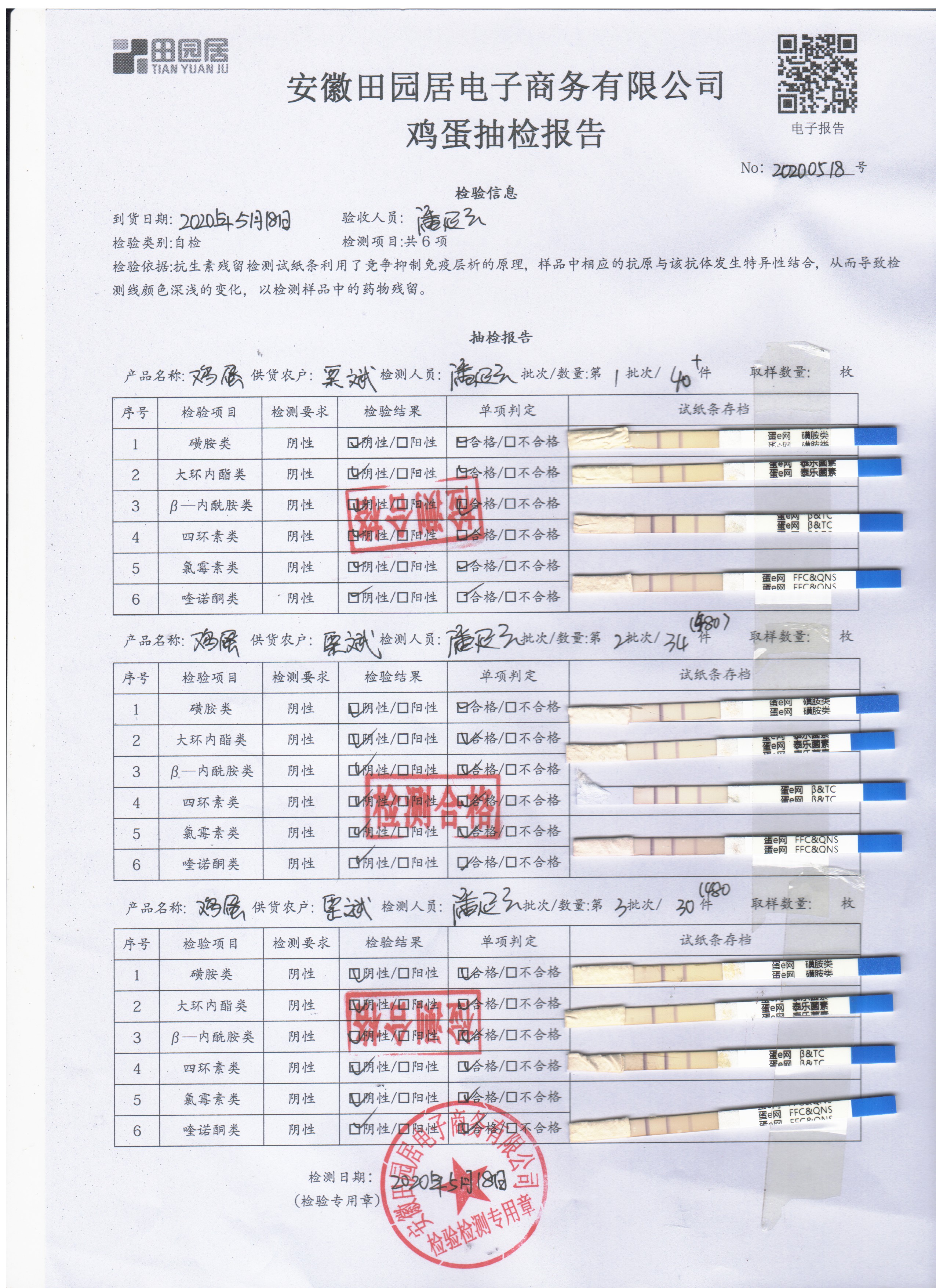2020年5月18日鲜鸡蛋检测报告
