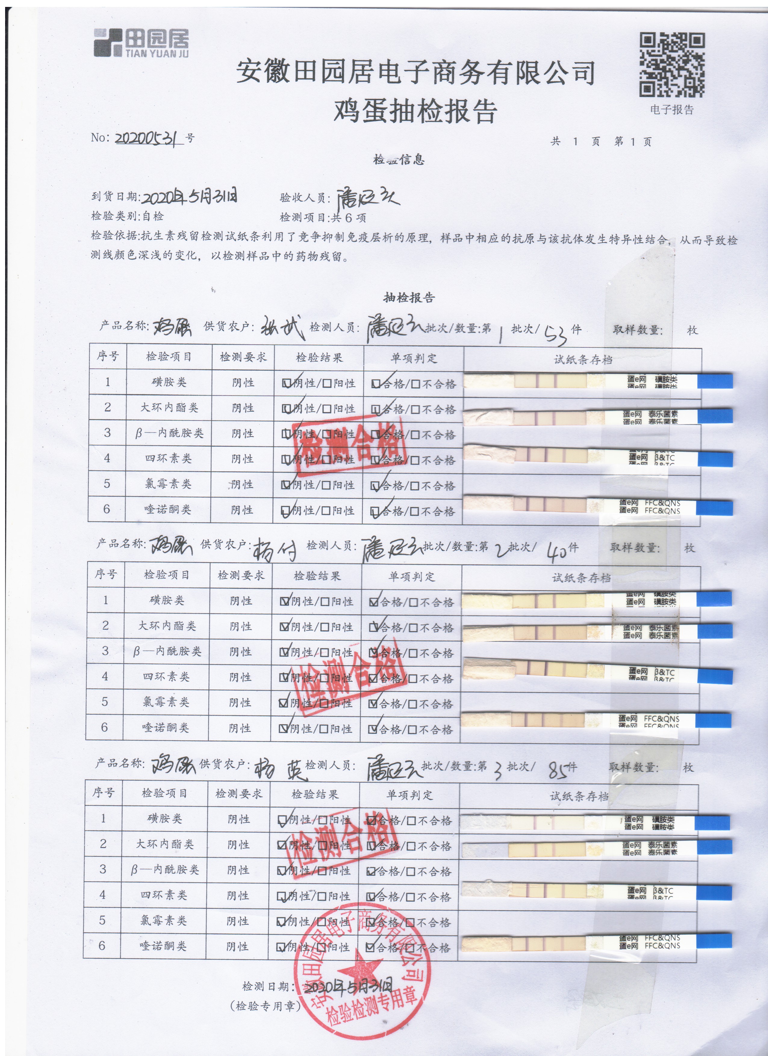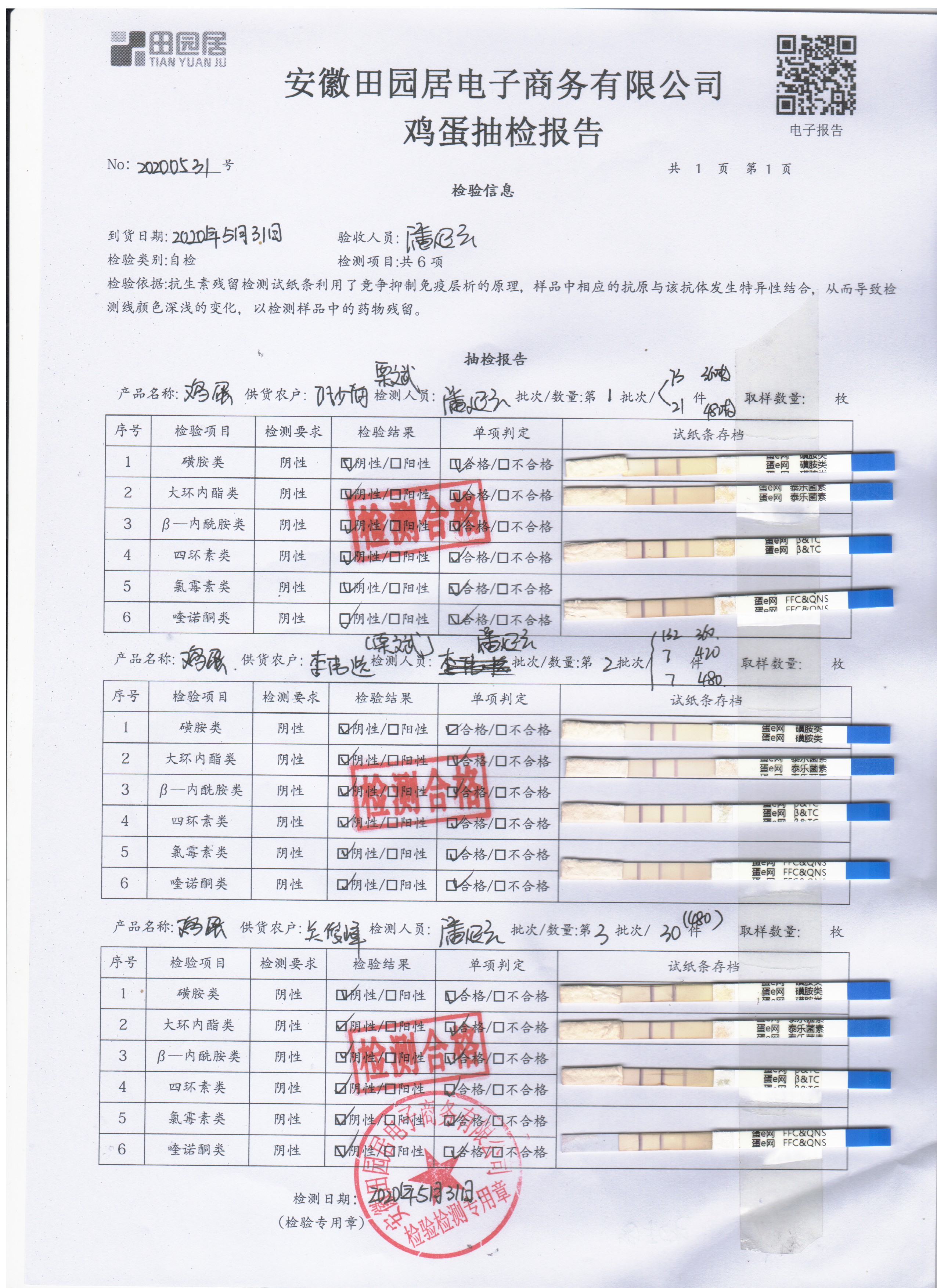 2020年5月31日鲜鸡蛋无抗检测