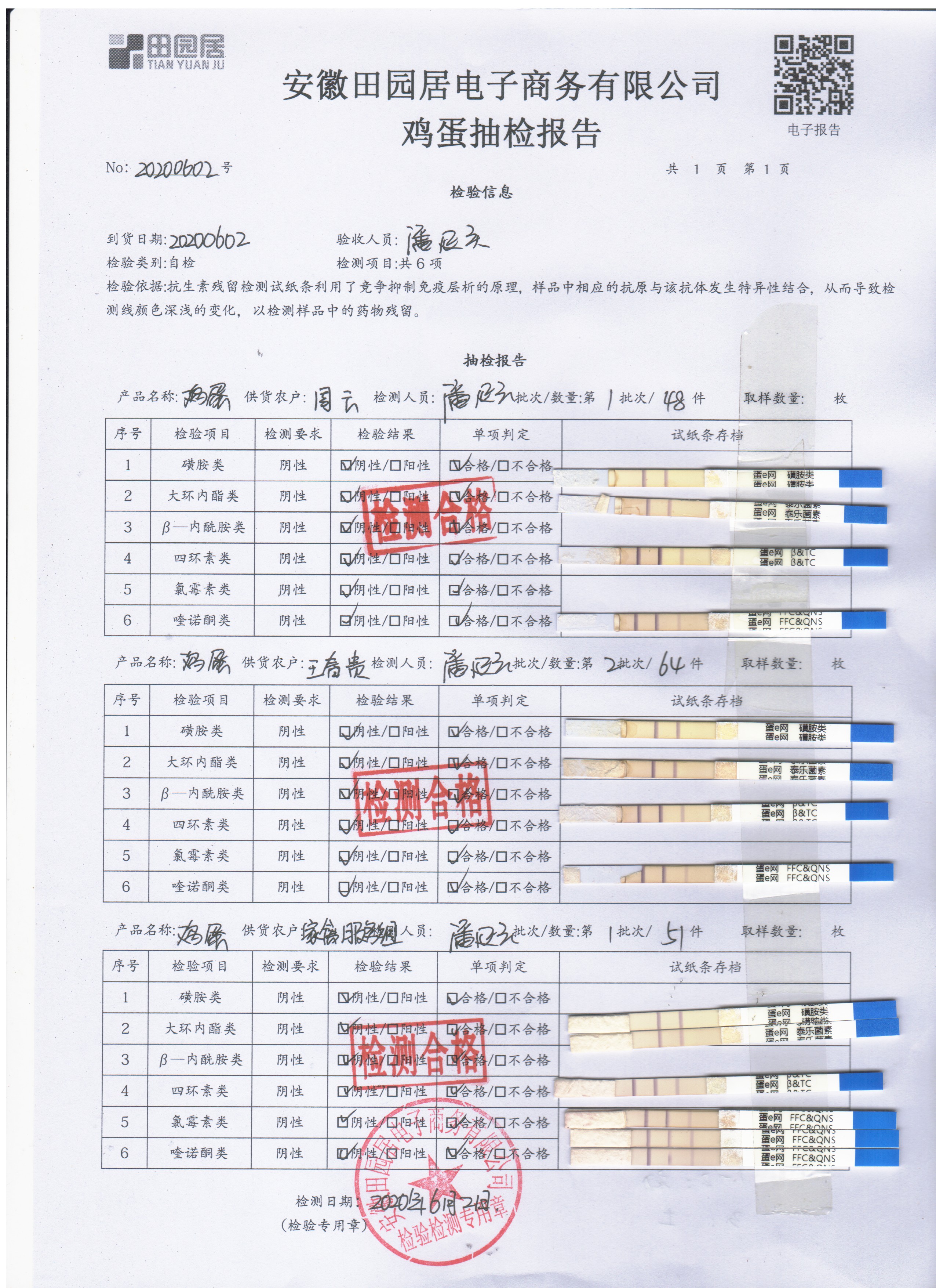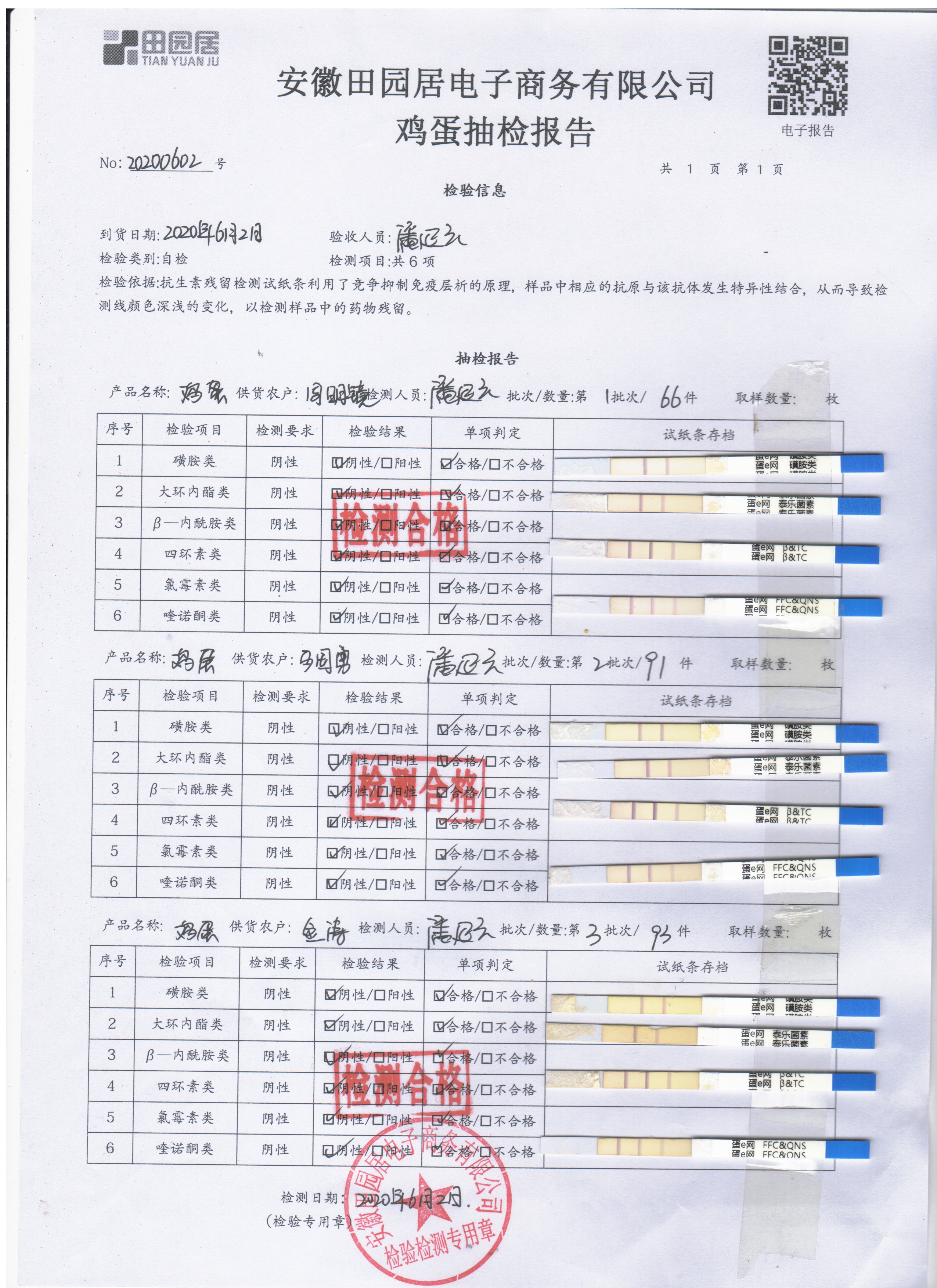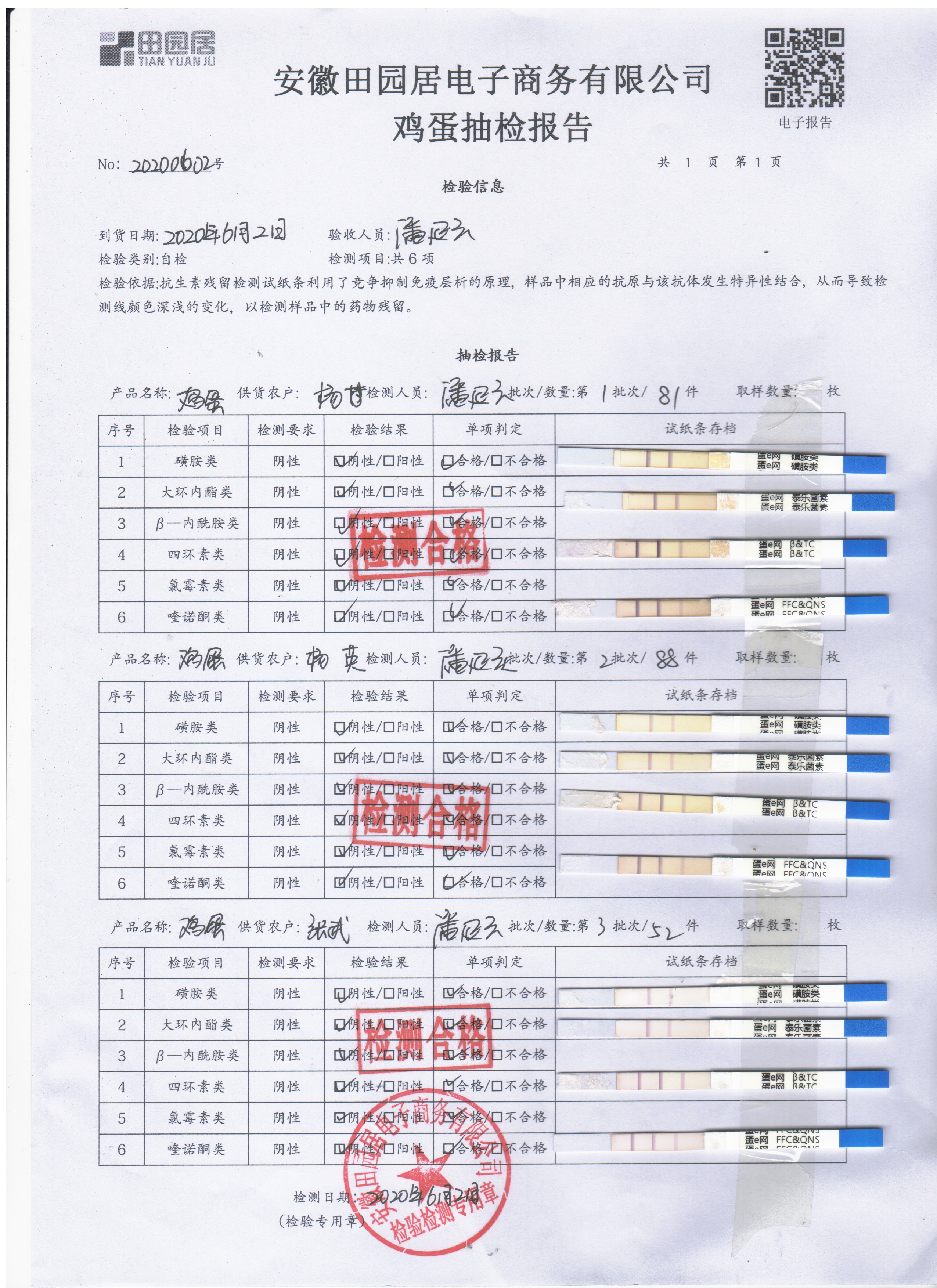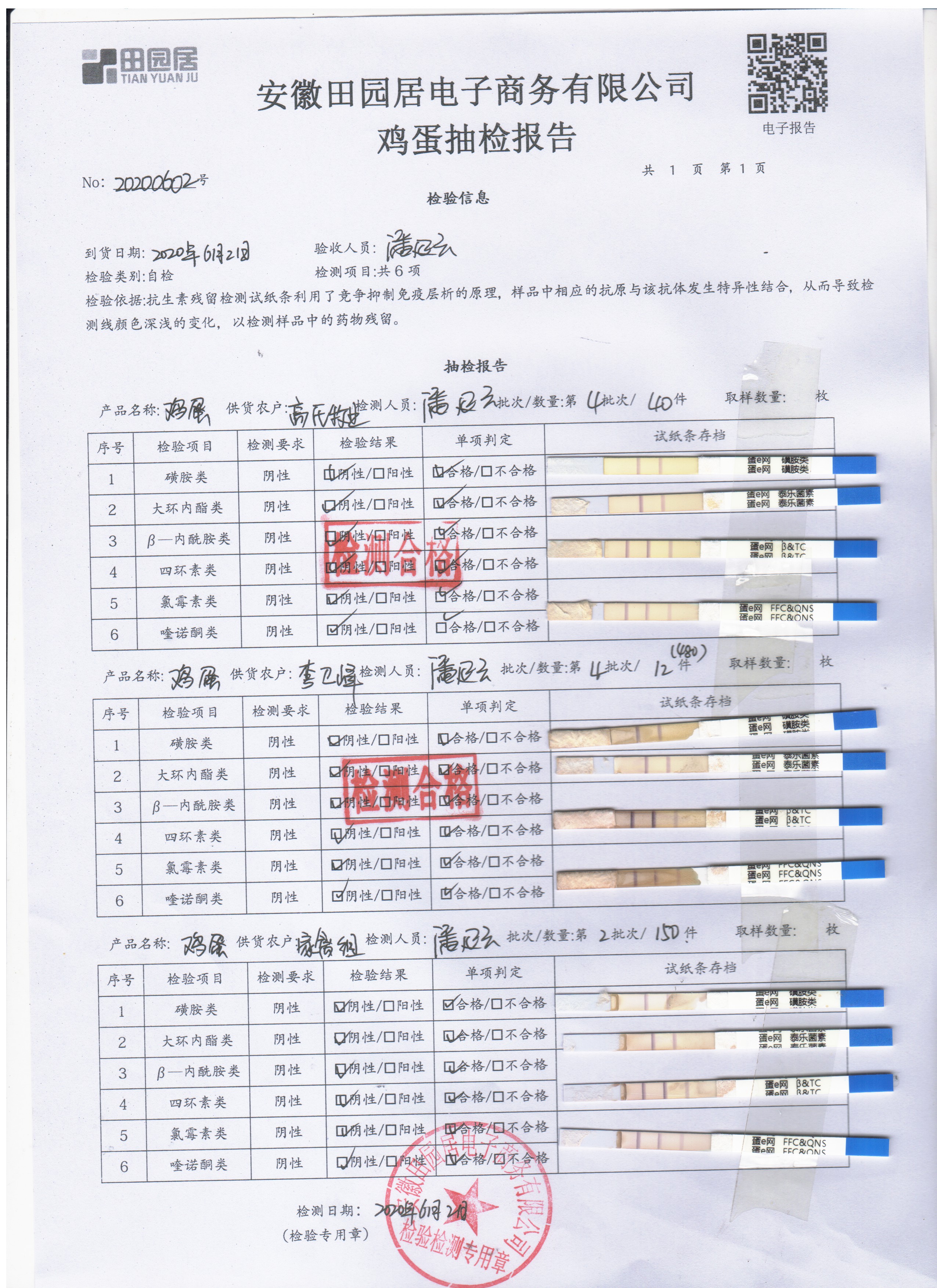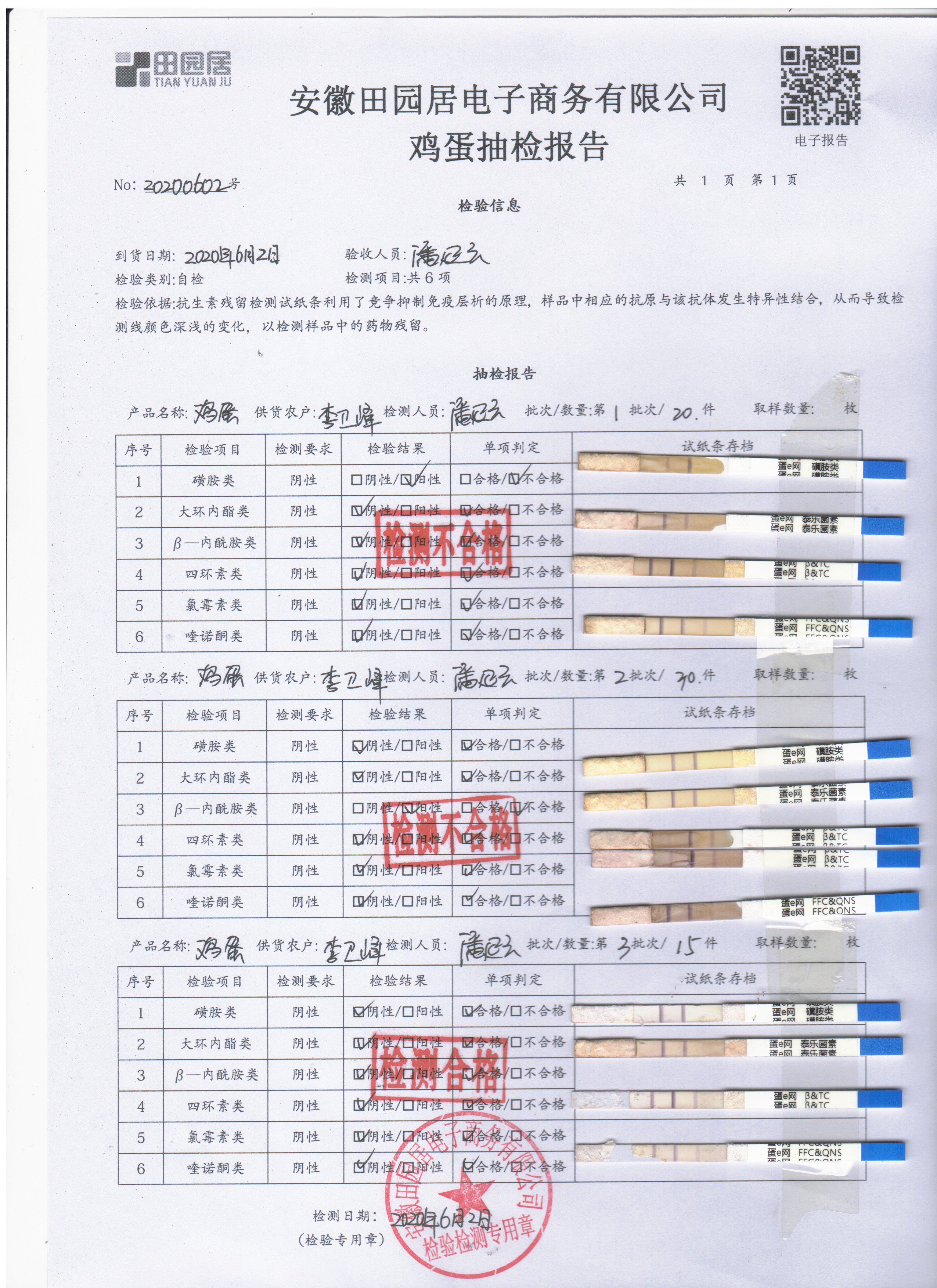 2020年6月3日鲜鸡蛋无抗检测