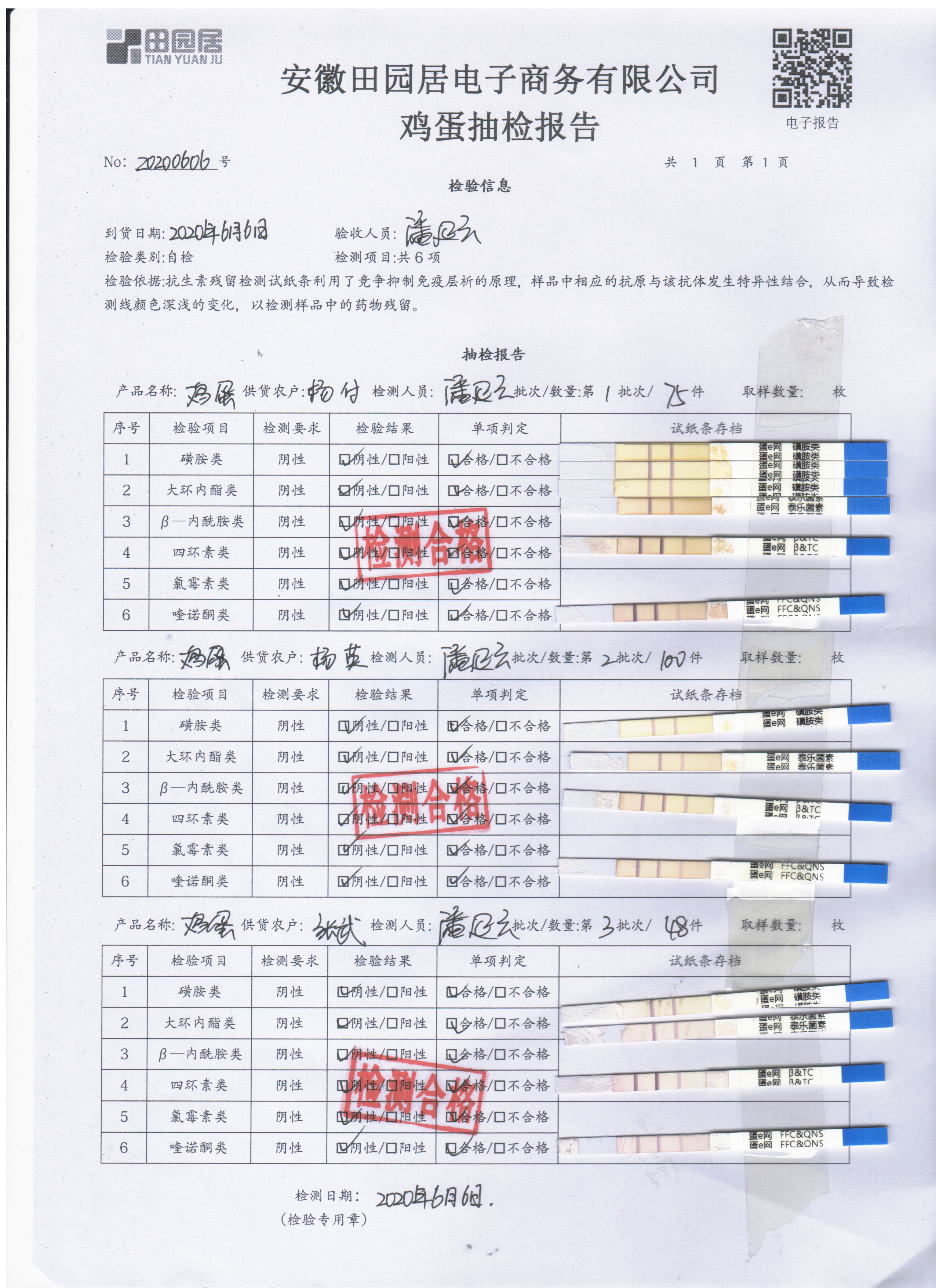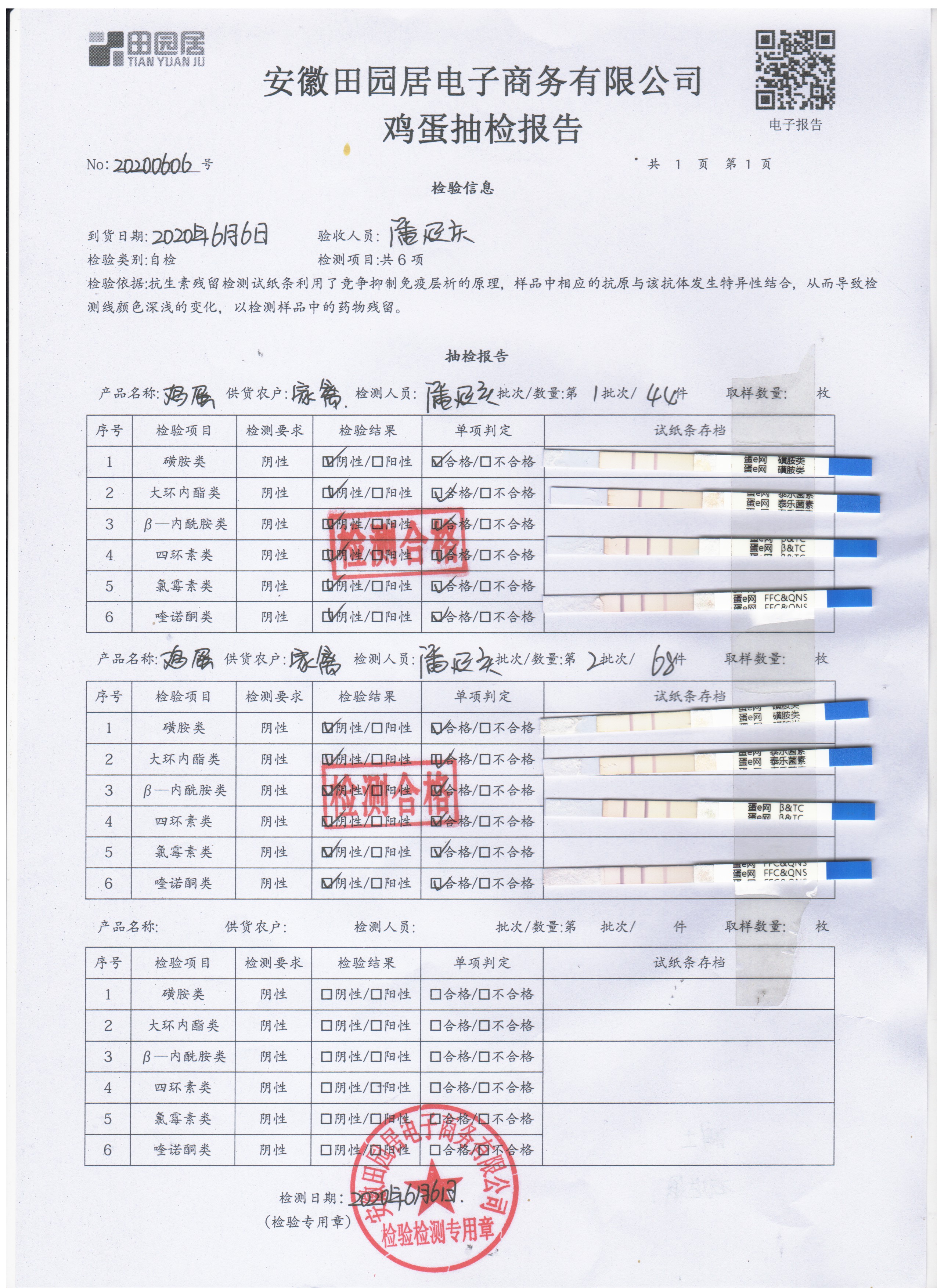 2020年6月6日鲜鸡蛋无抗检测
