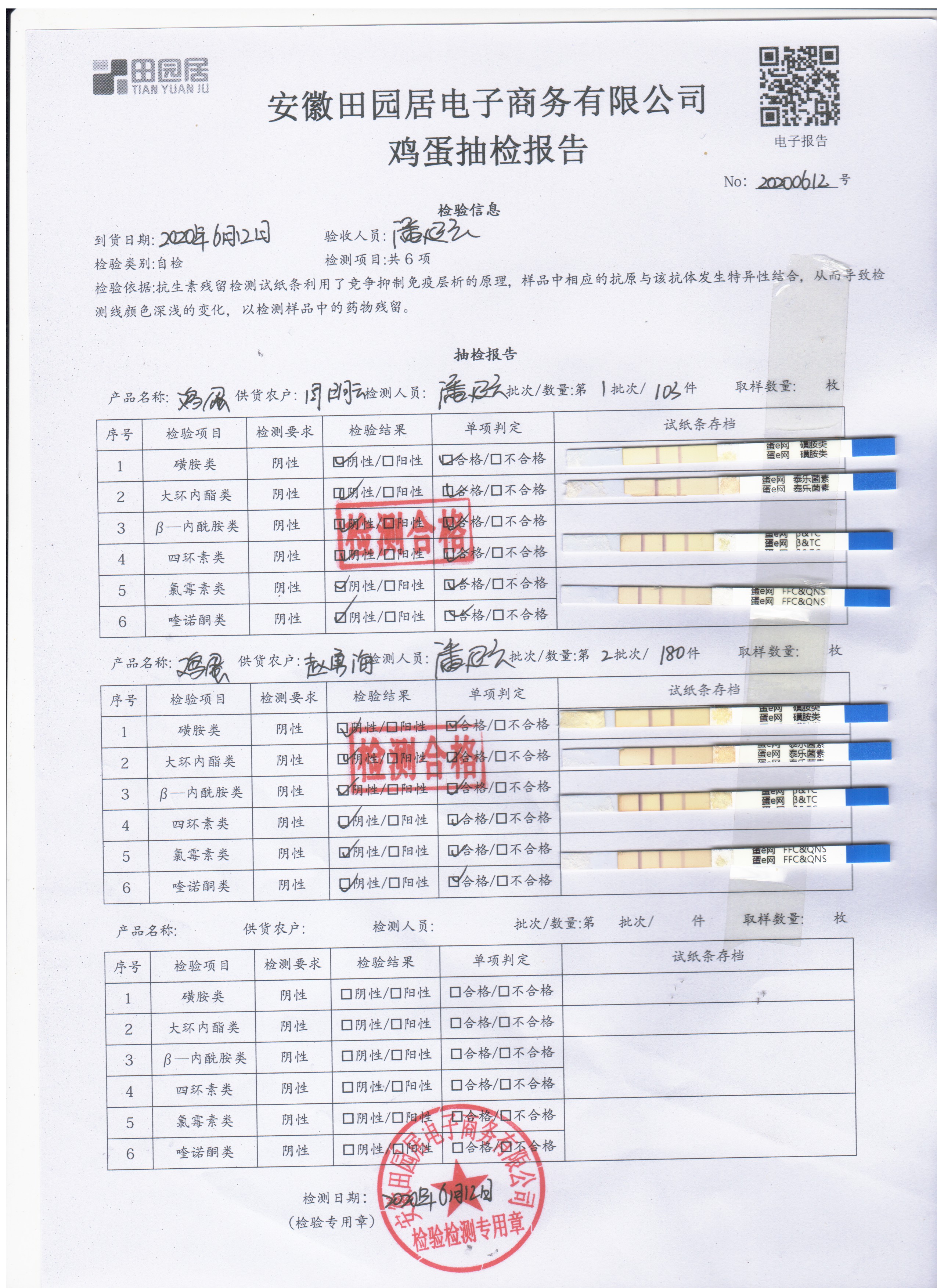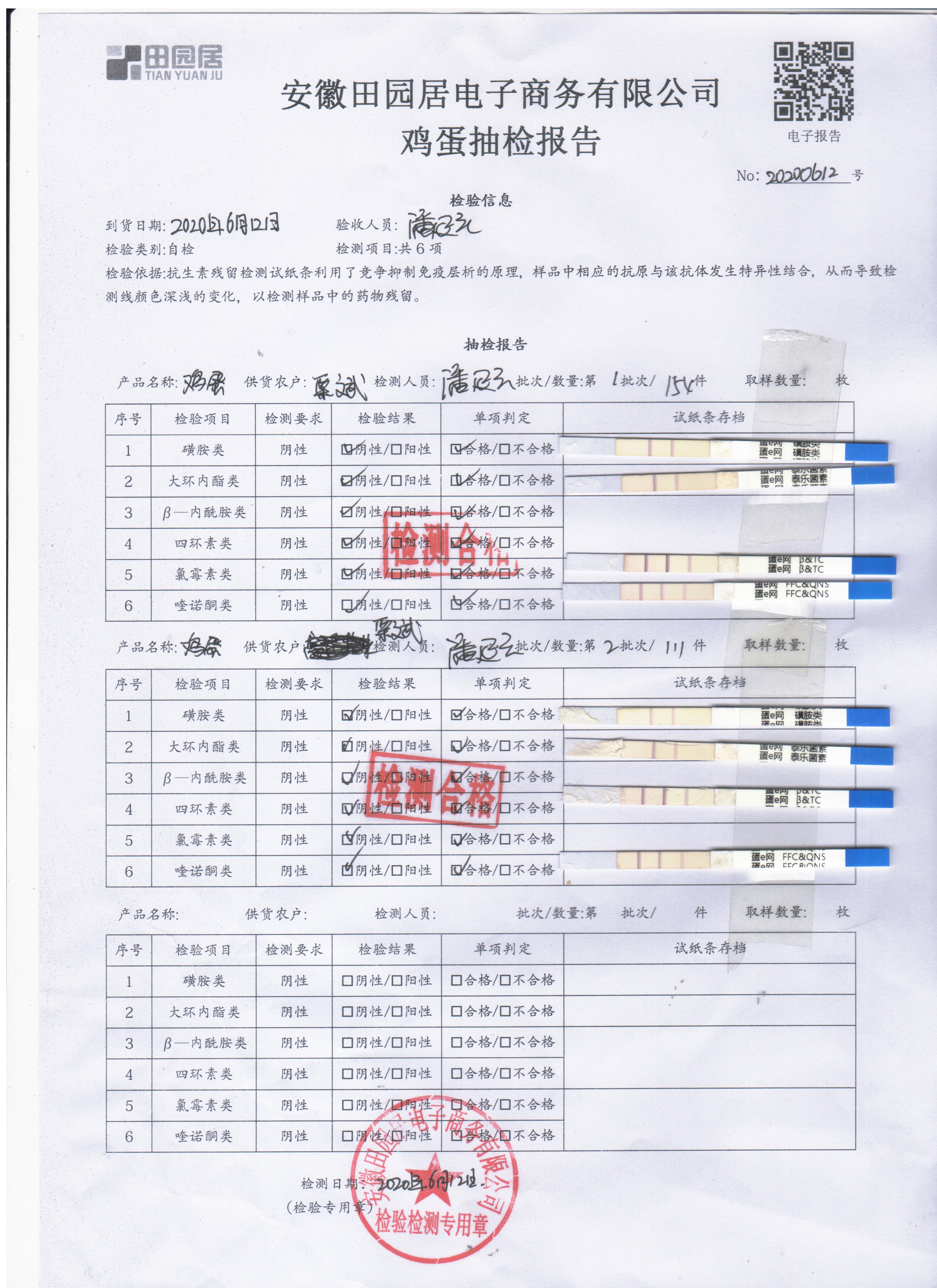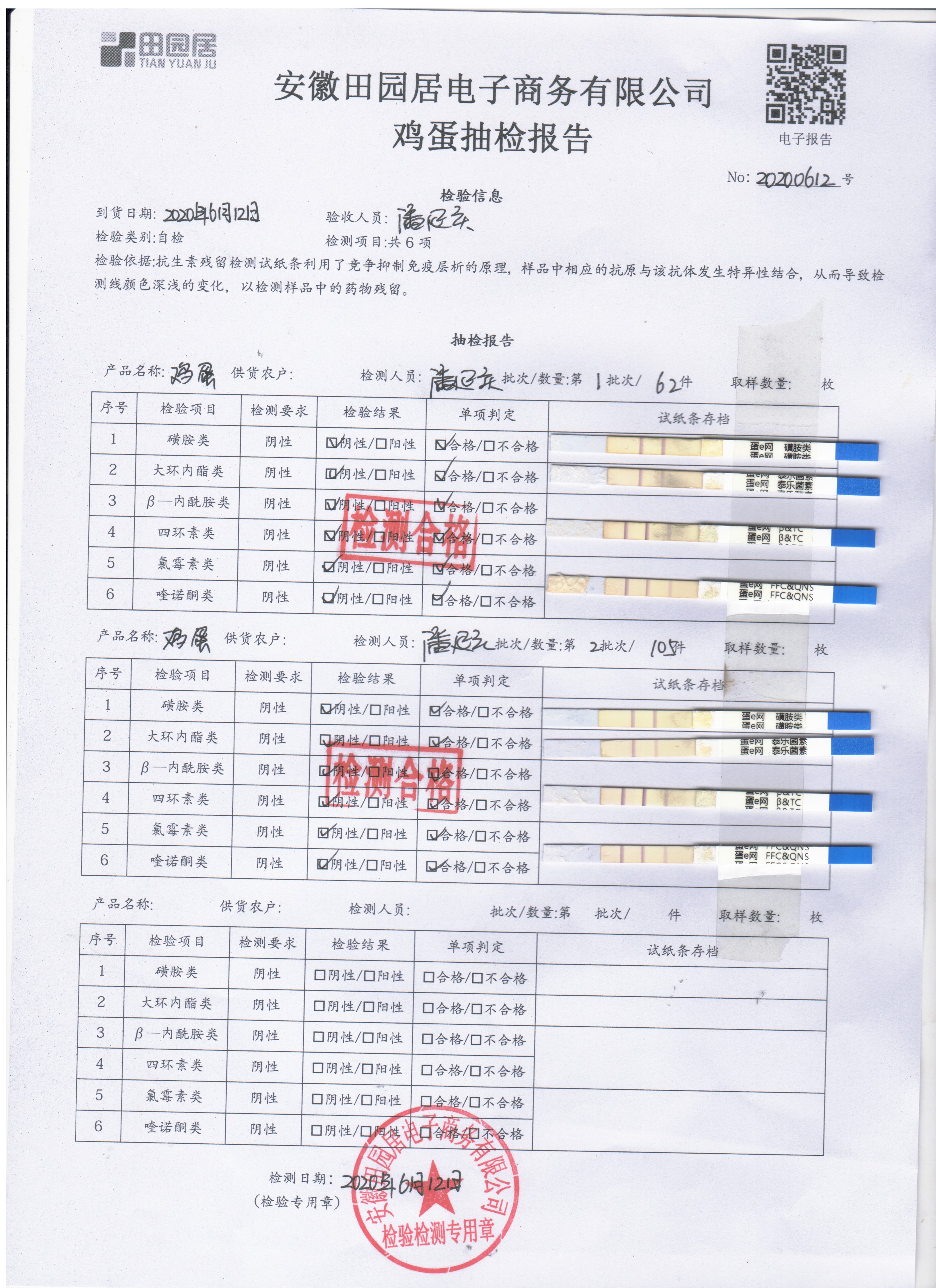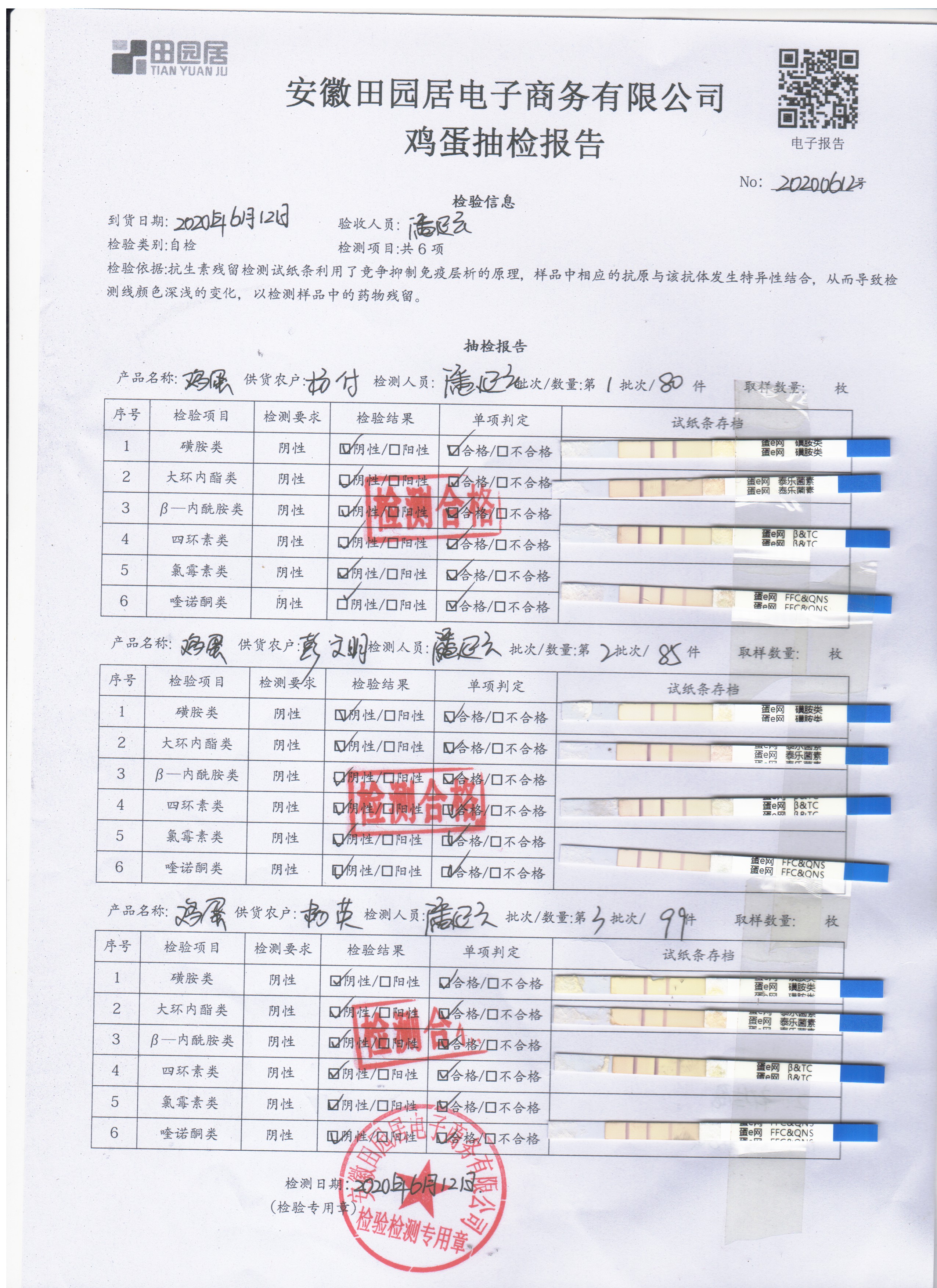 2020年6月12日鲜鸡蛋无抗检测