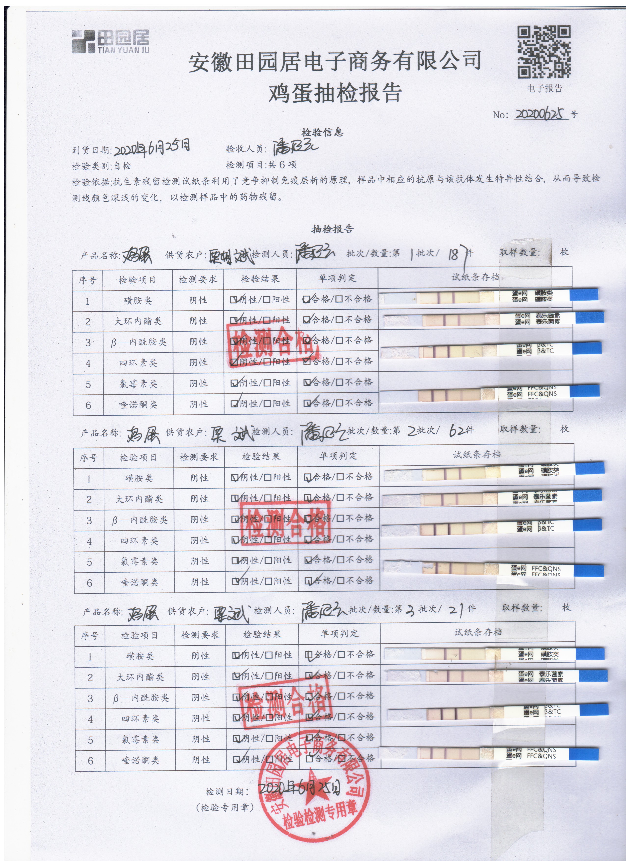 2020年6月25日鲜鸡蛋无抗检测