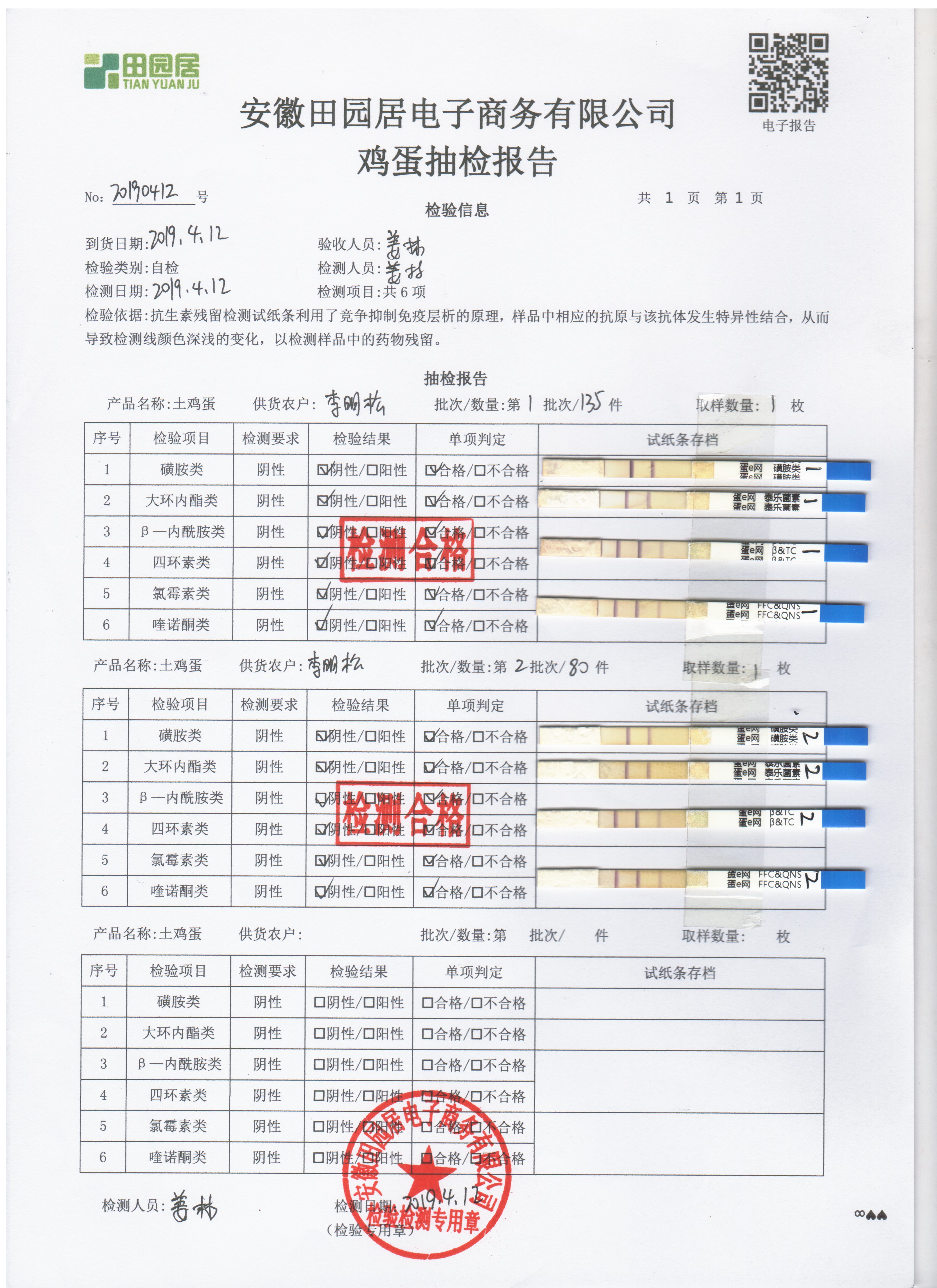 2019年4月12日鸡蛋自检报告