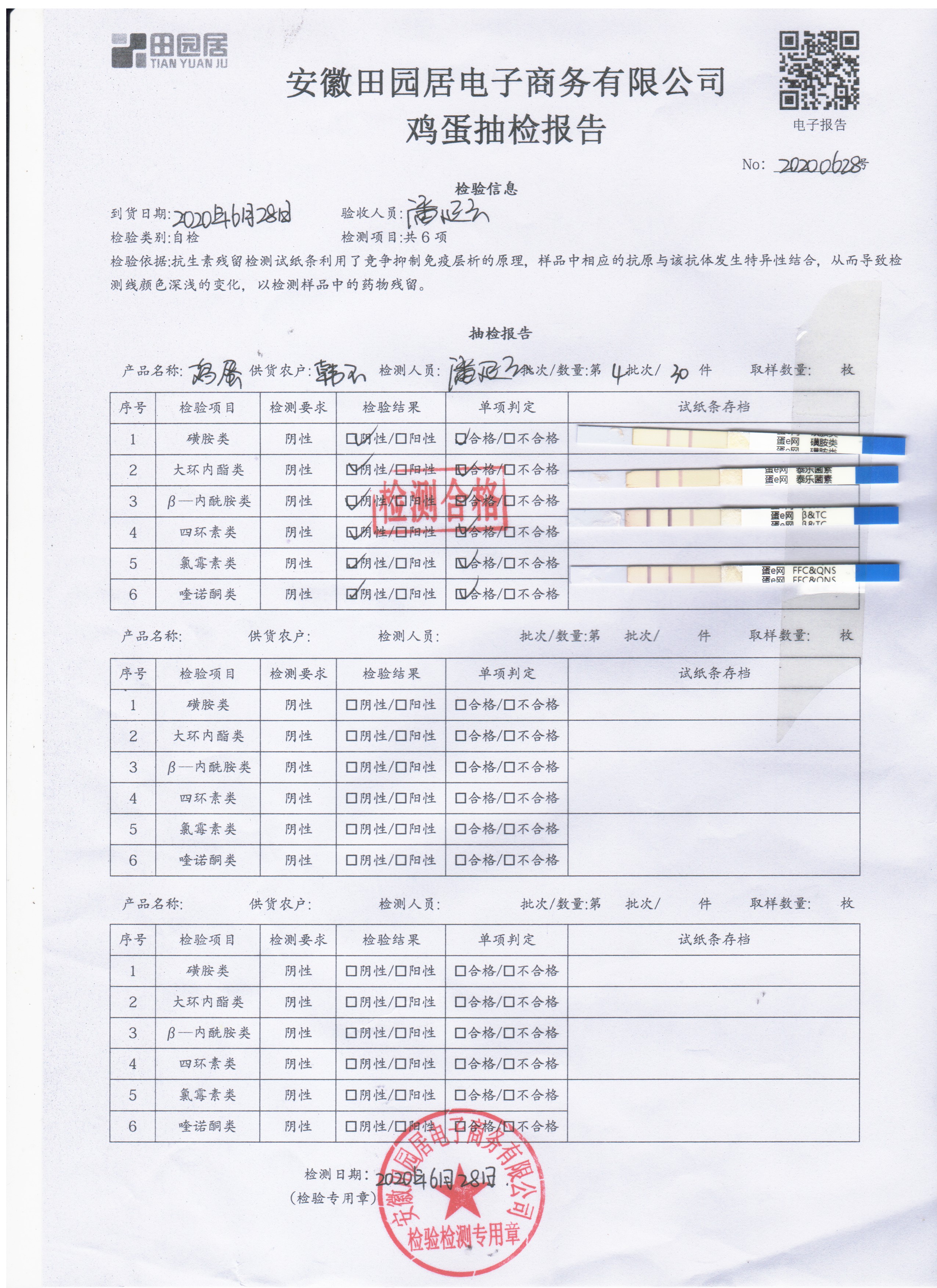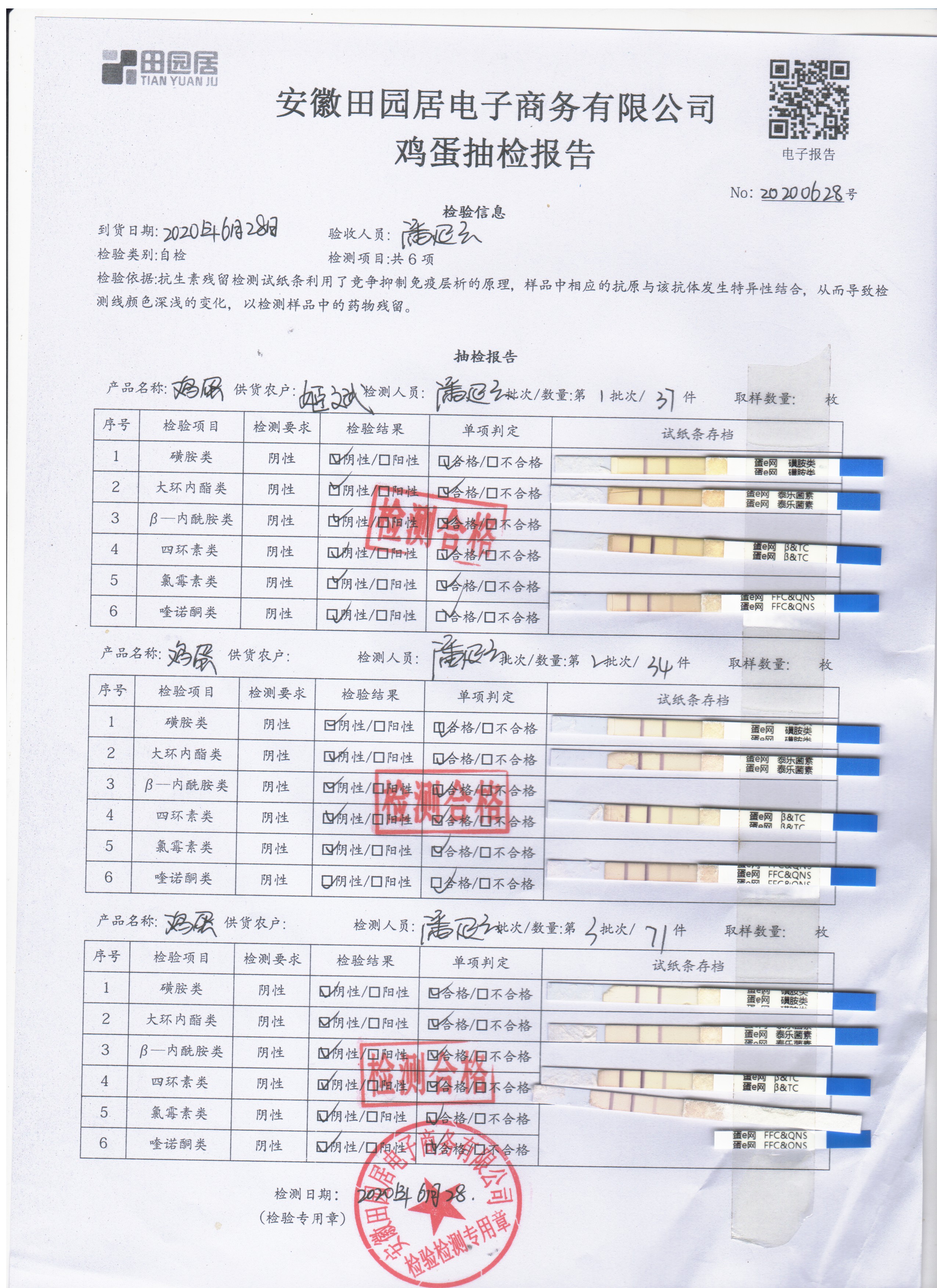 2020年6月28日鲜鸡蛋检测报告