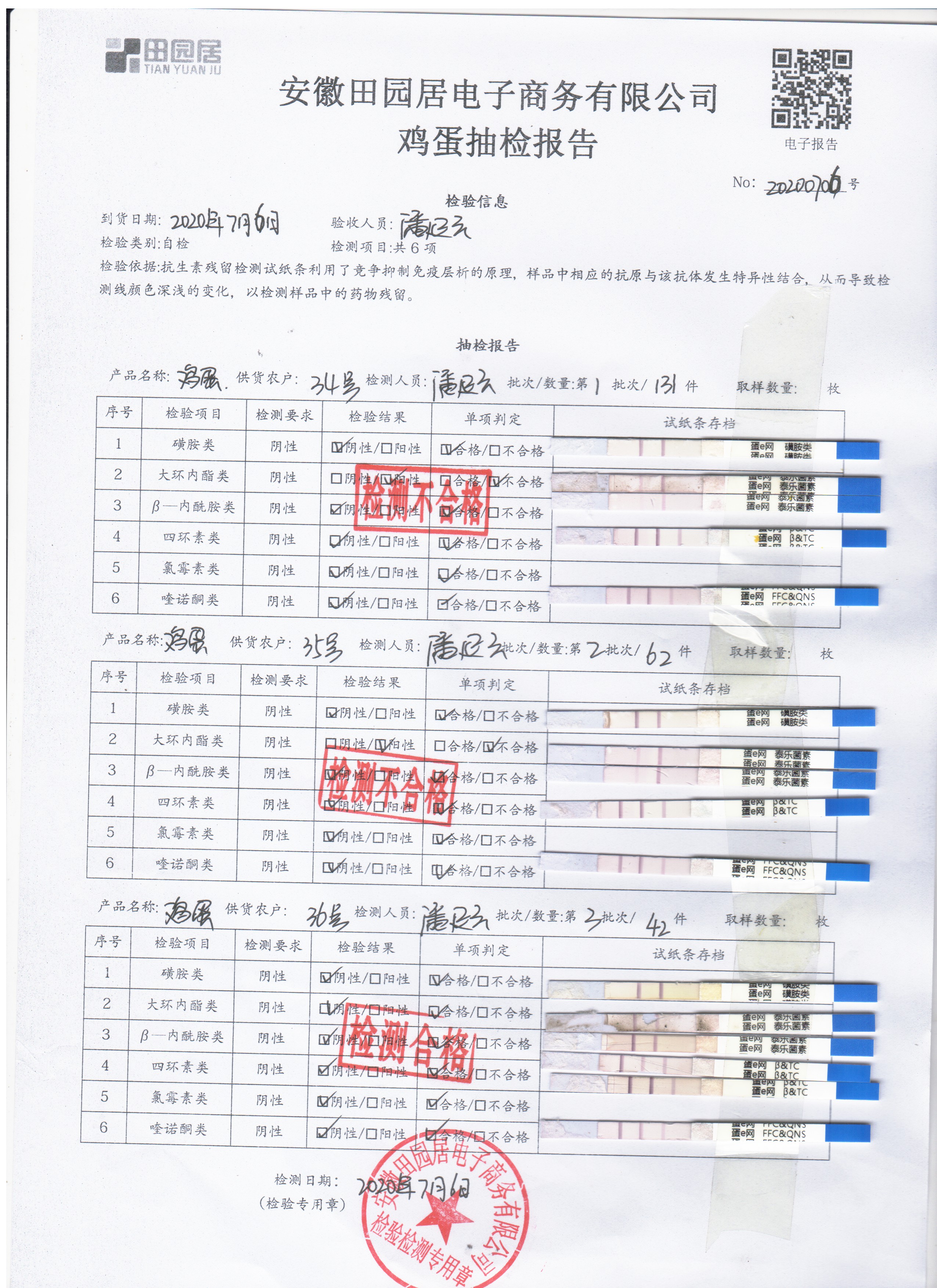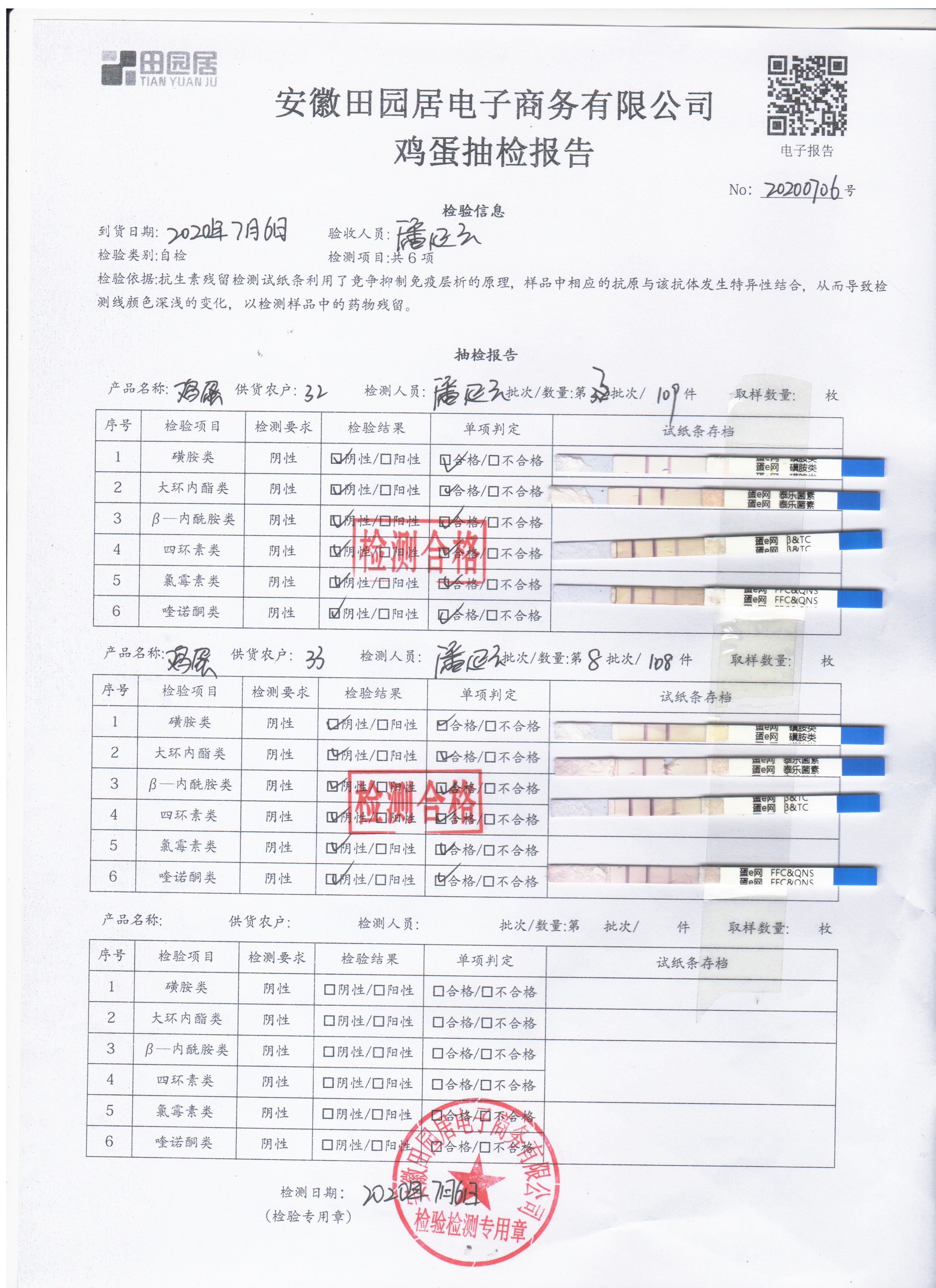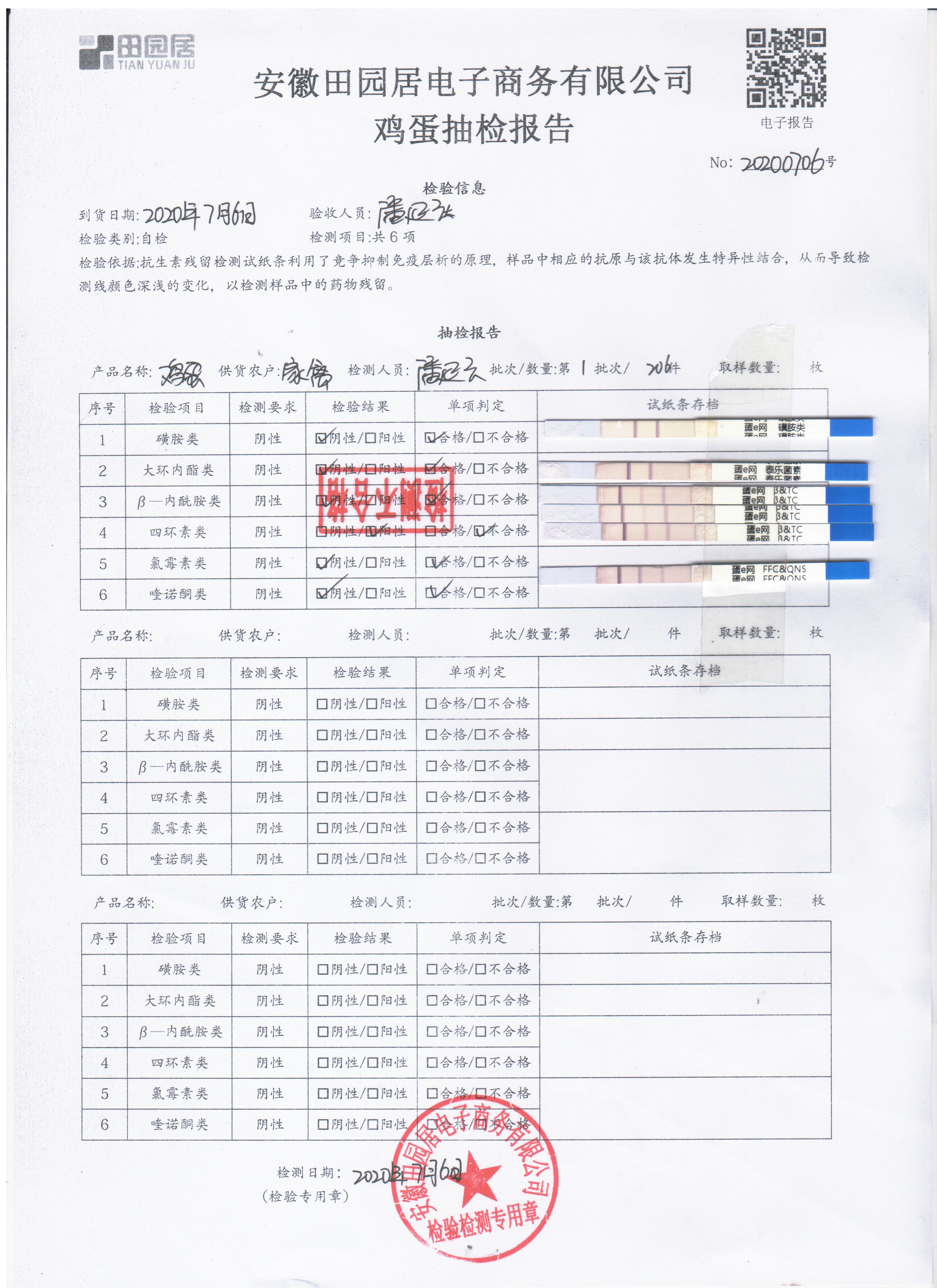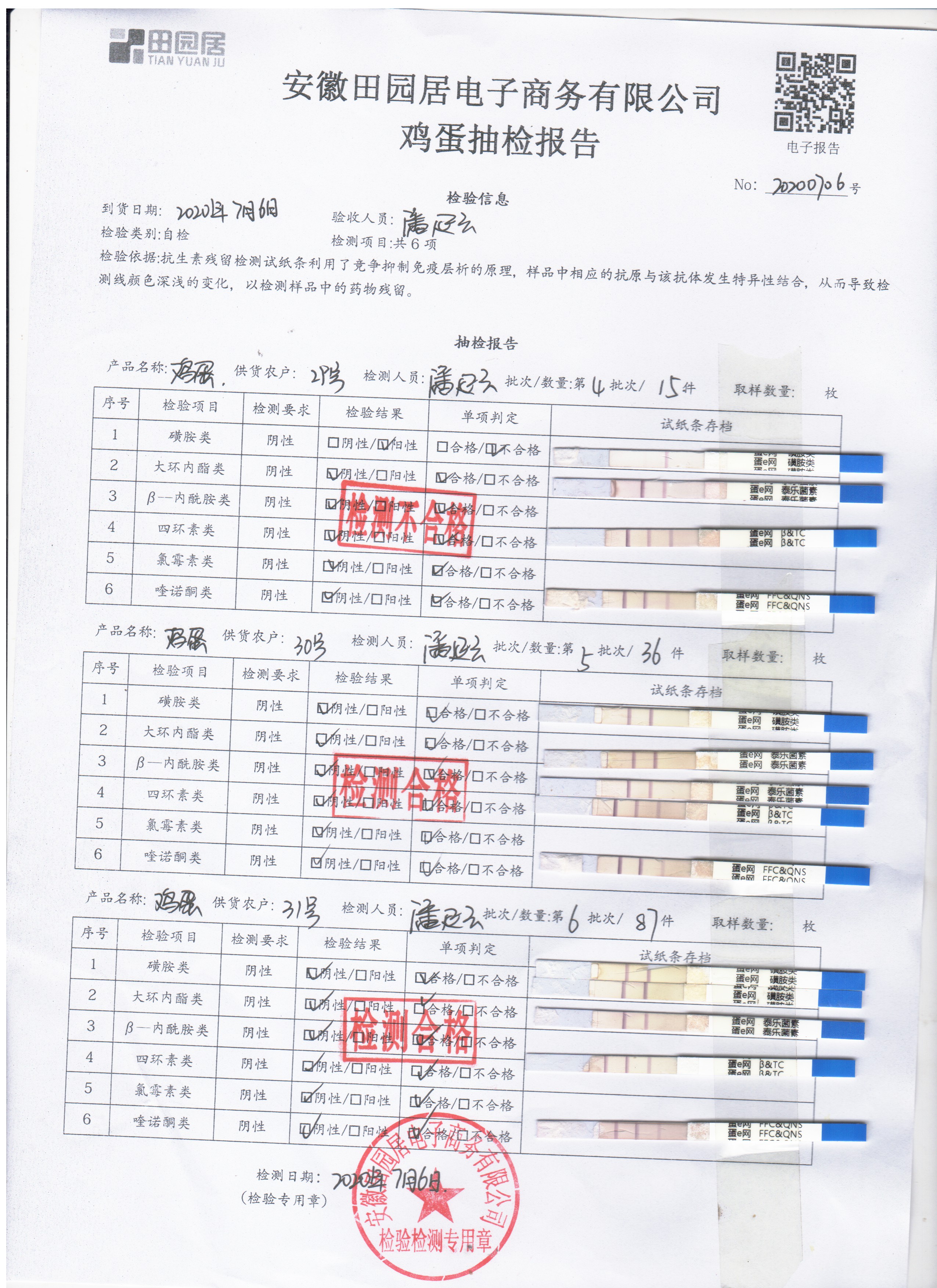 2020年7月6日鲜鸡蛋无抗检测
