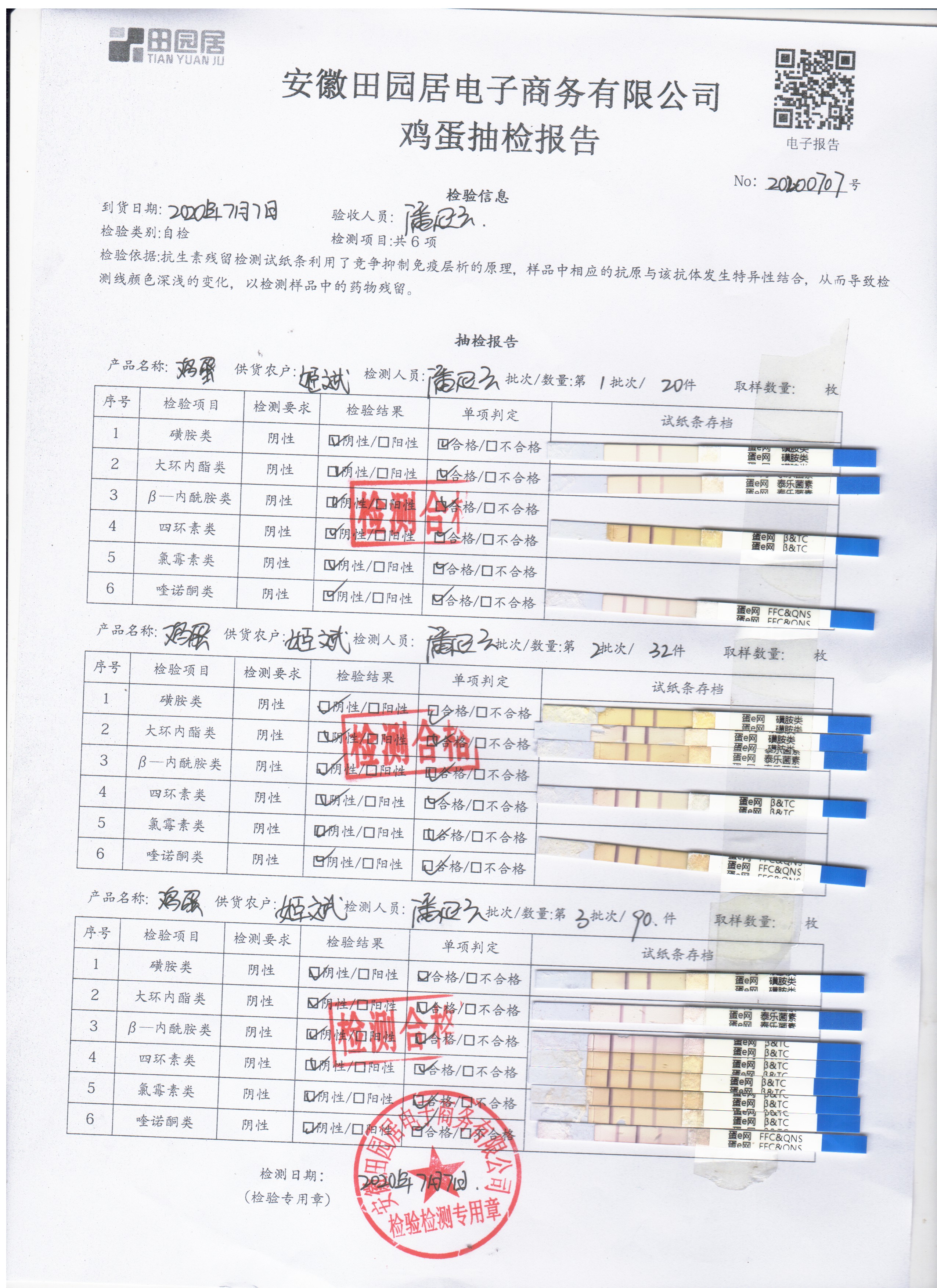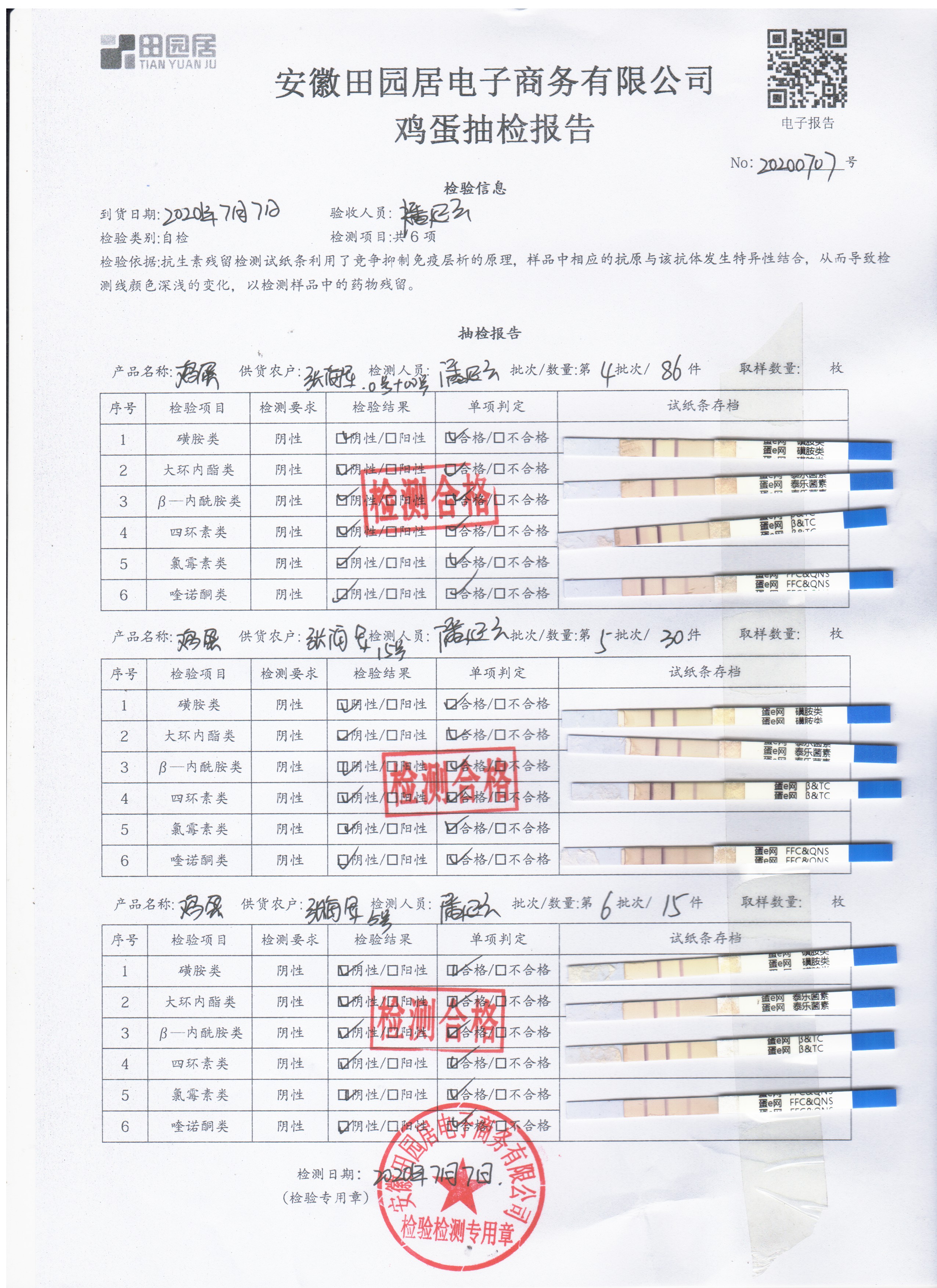 2020年7月7日鲜鸡蛋无抗检测