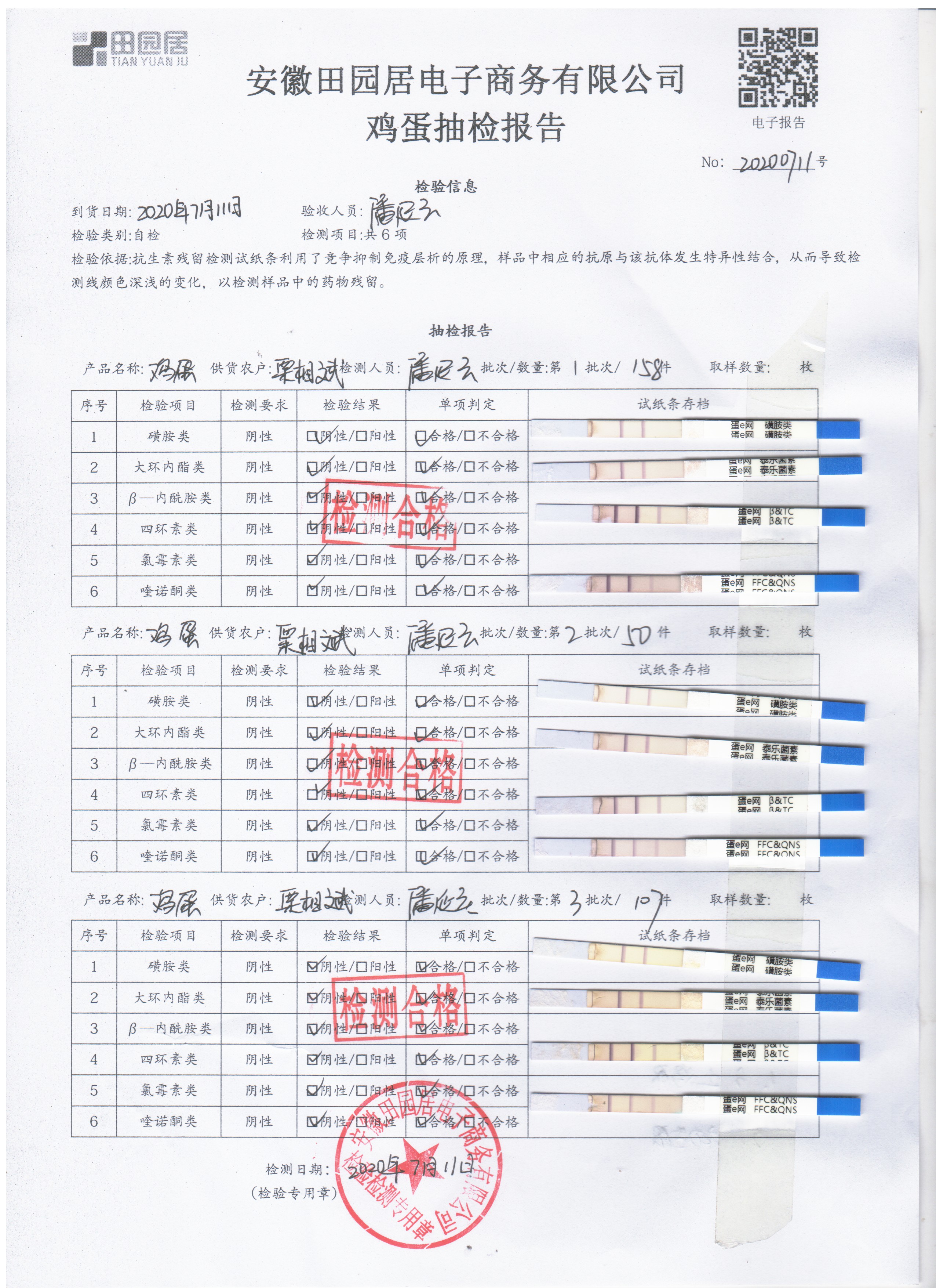 2020年7月11日鲜鸡蛋无抗检测