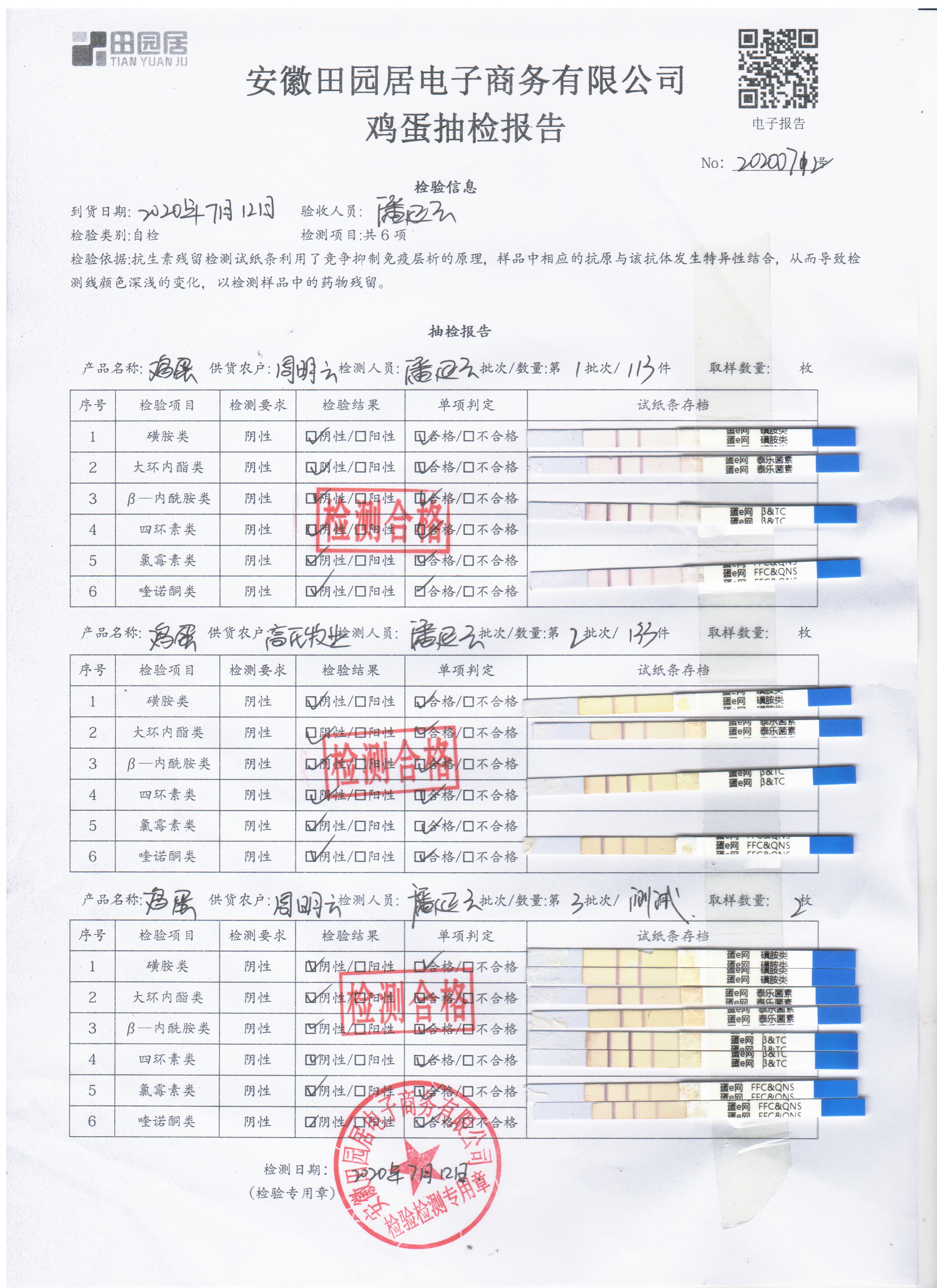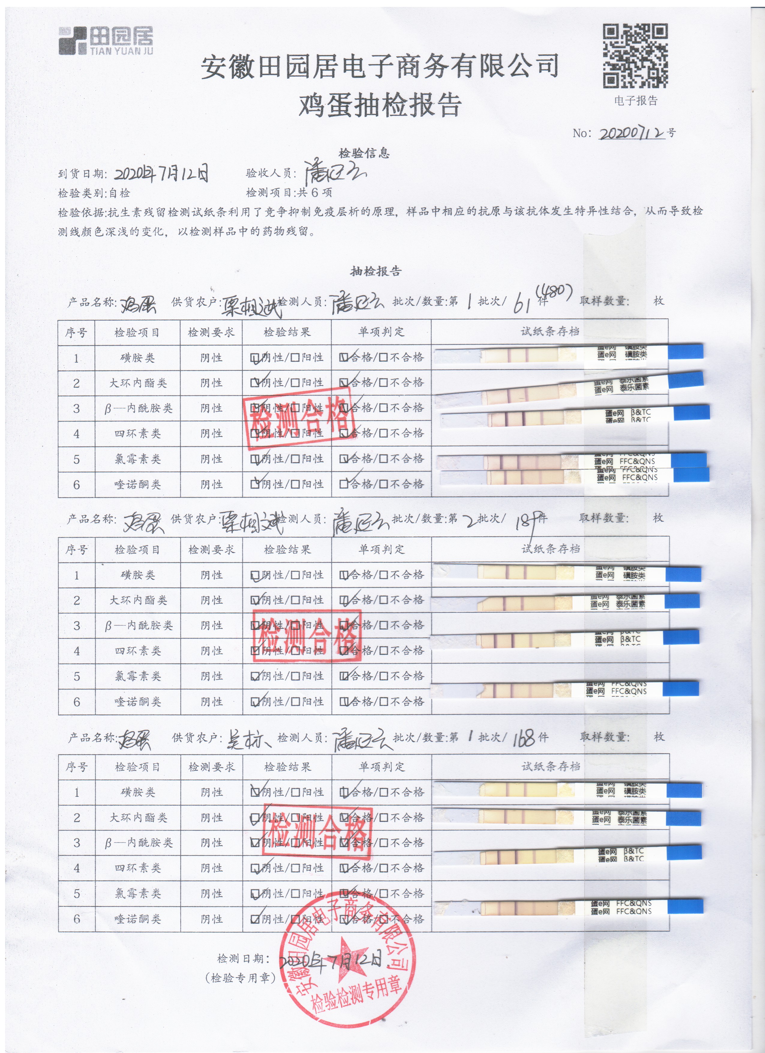 2020年7月12日鲜鸡蛋无抗检测