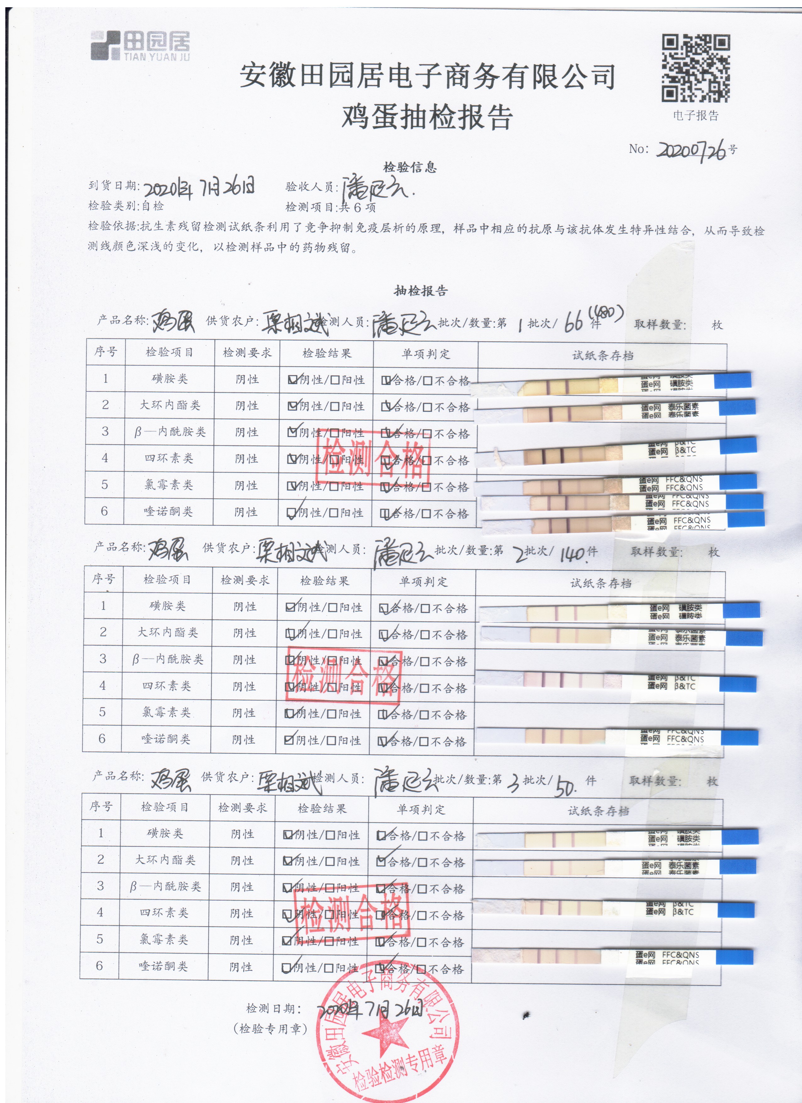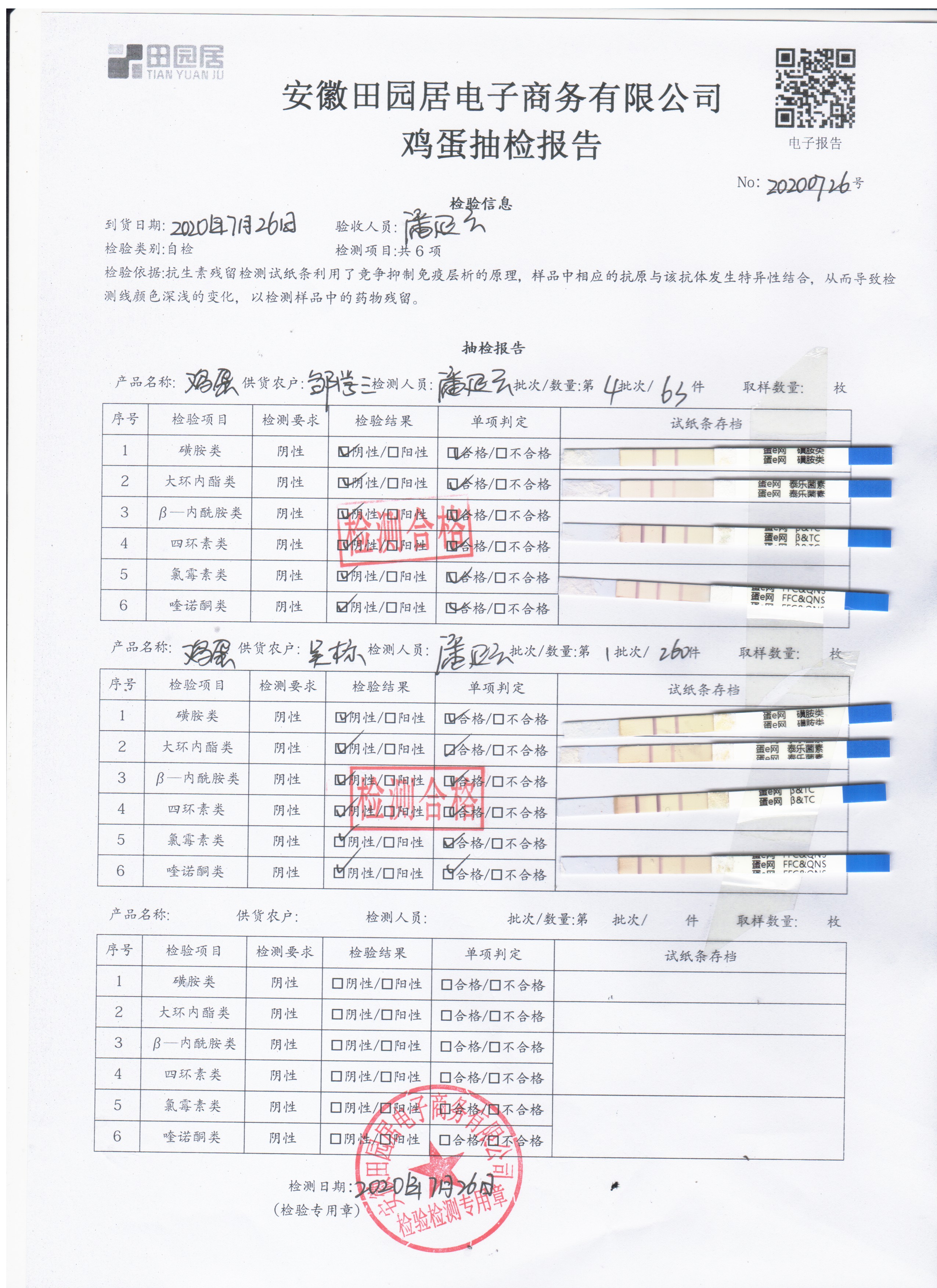 2020年7月26日鲜鸡蛋无抗检测
