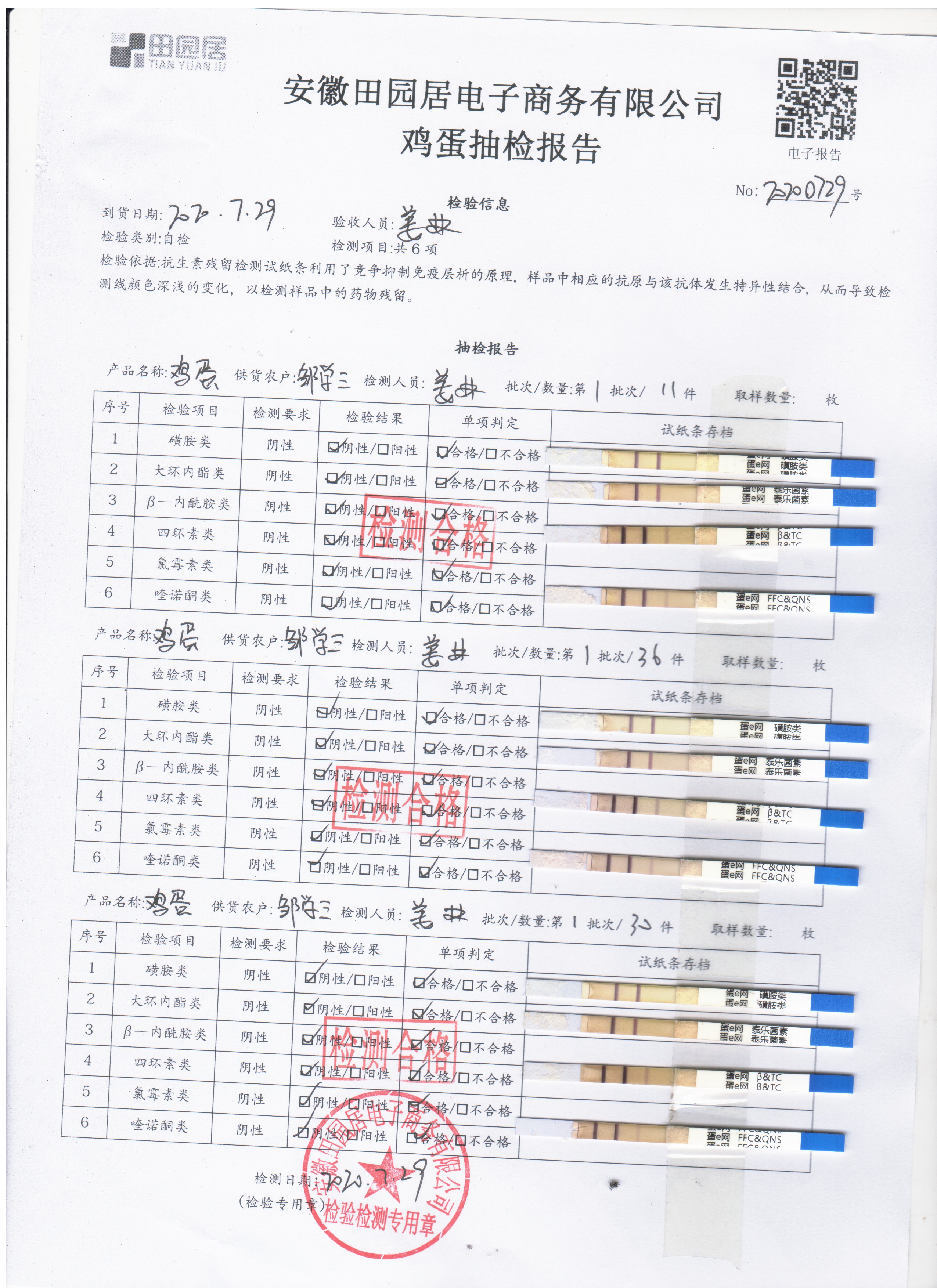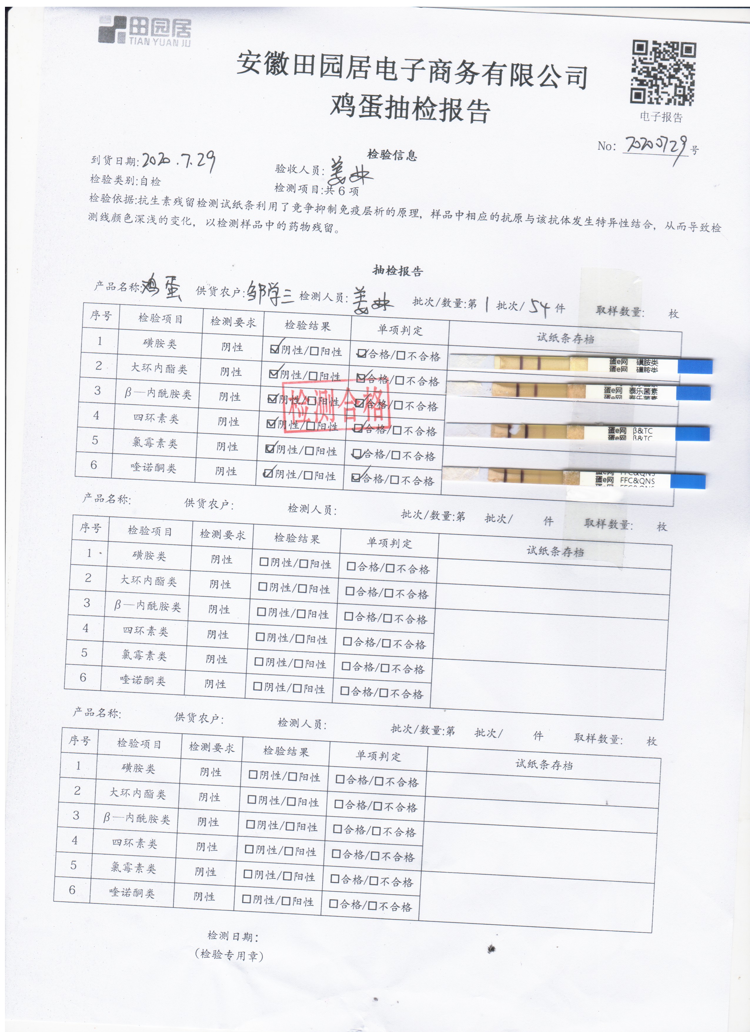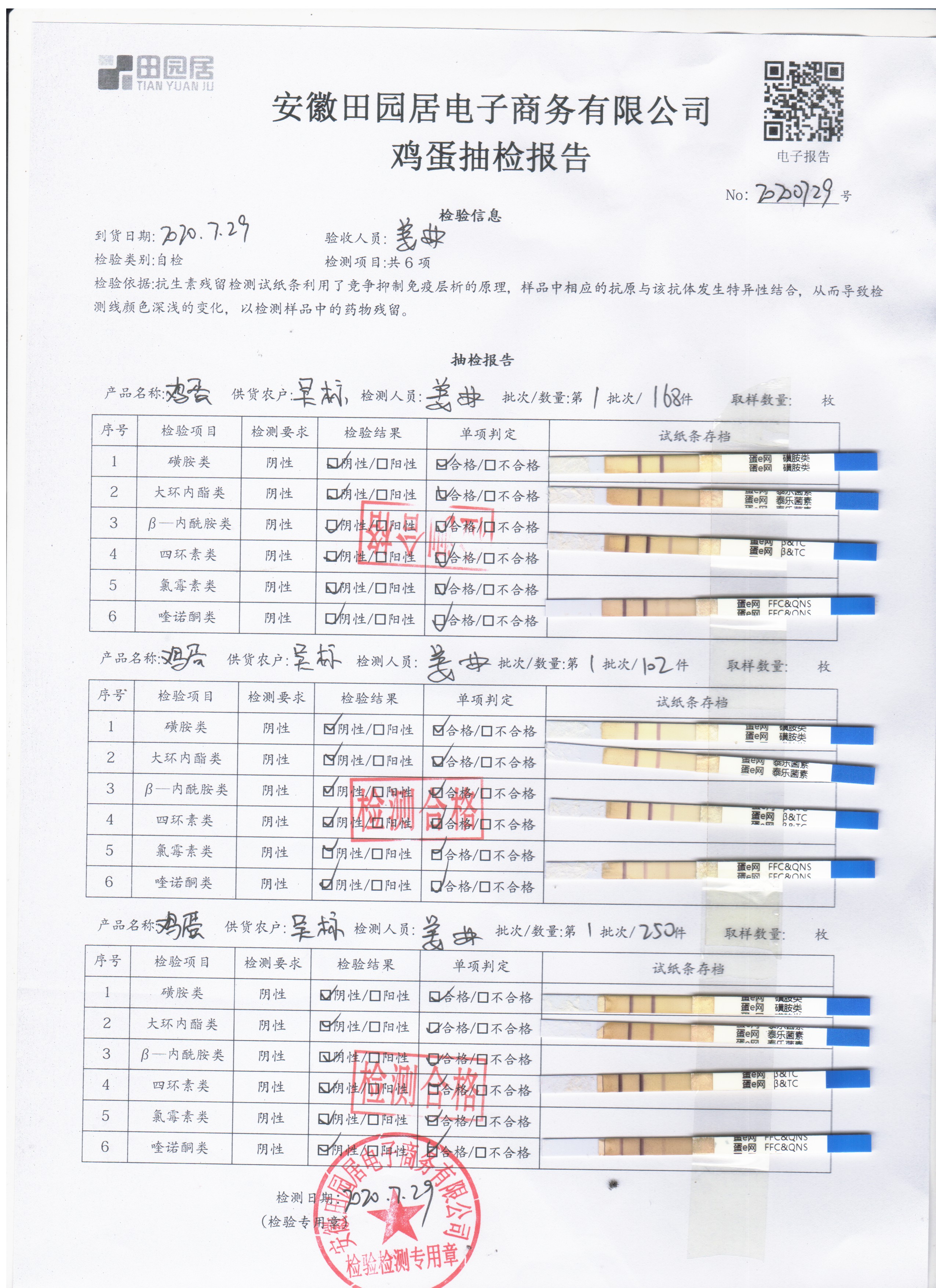 2020年7月29日鲜鸡蛋无抗检测