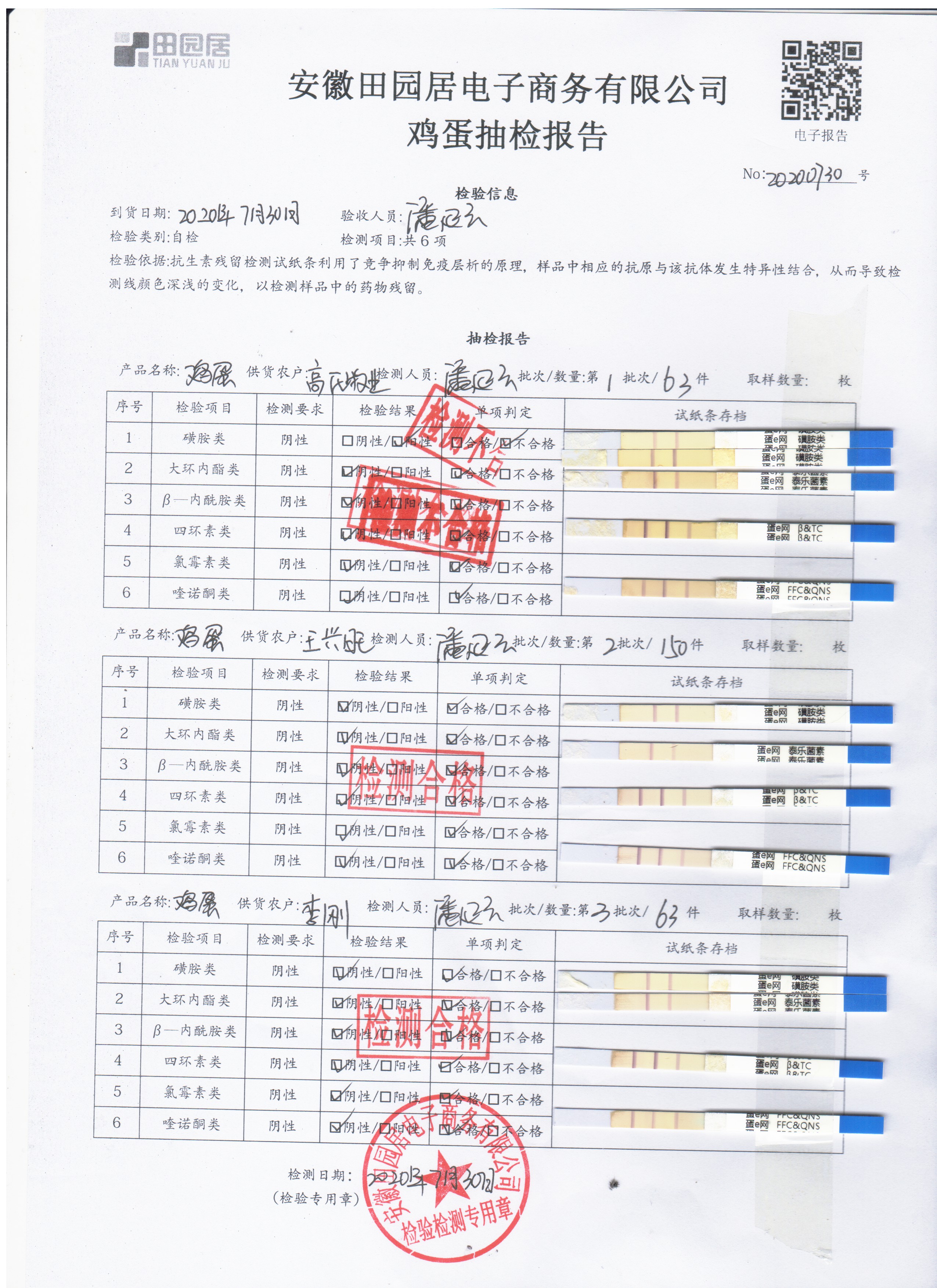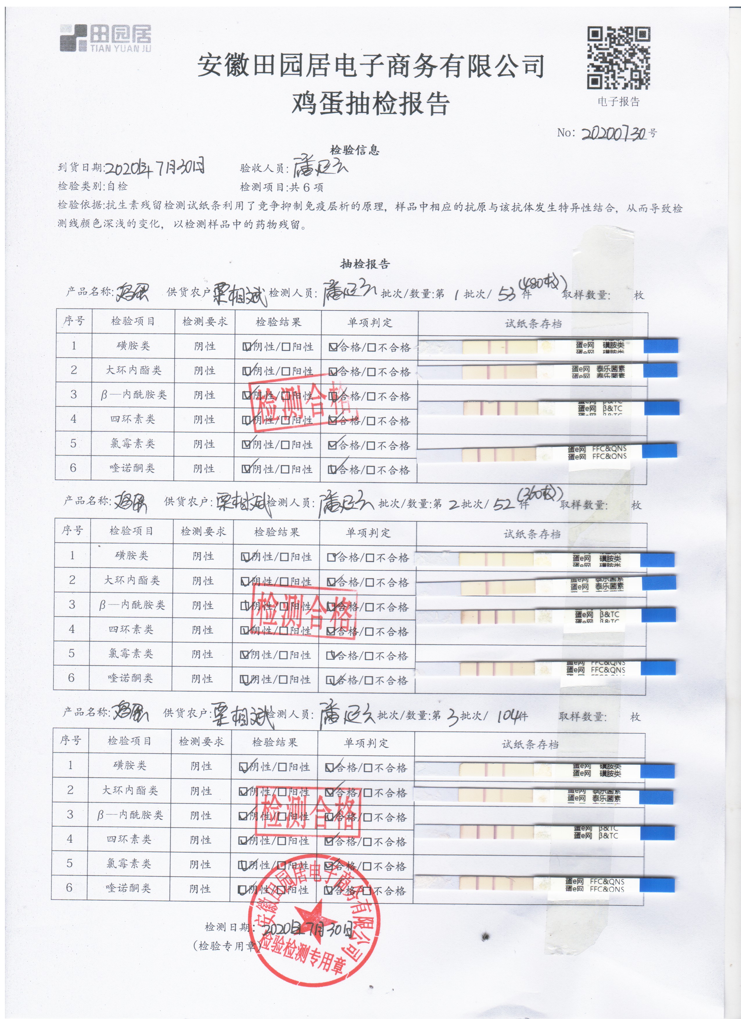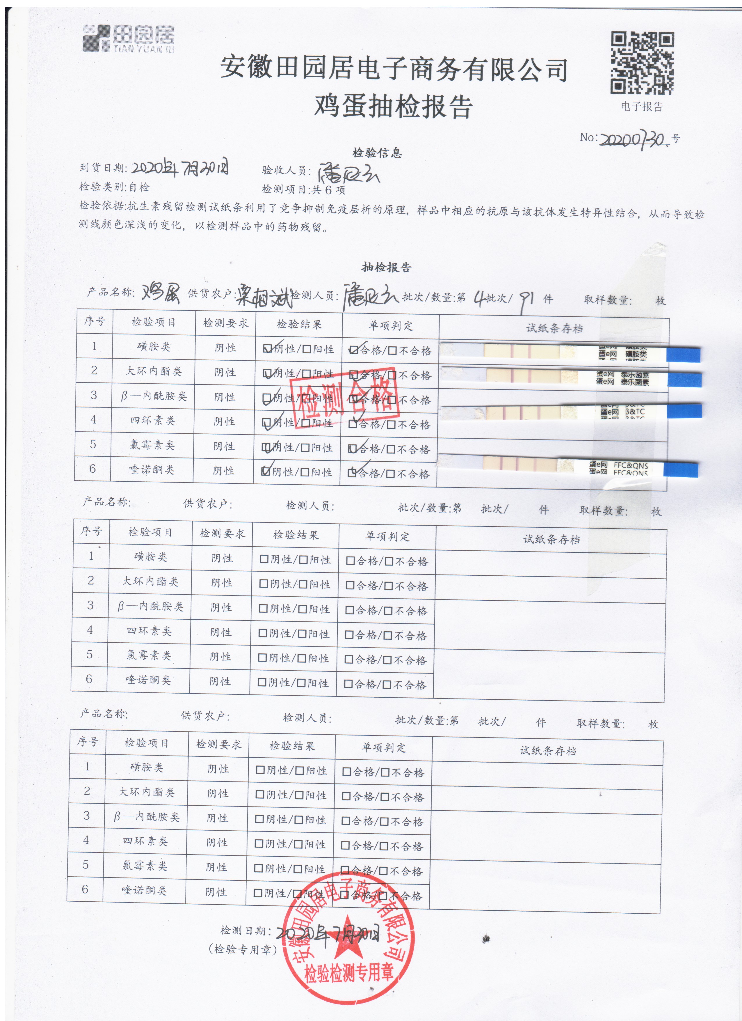 2020年7月30日鲜鸡蛋无抗检测