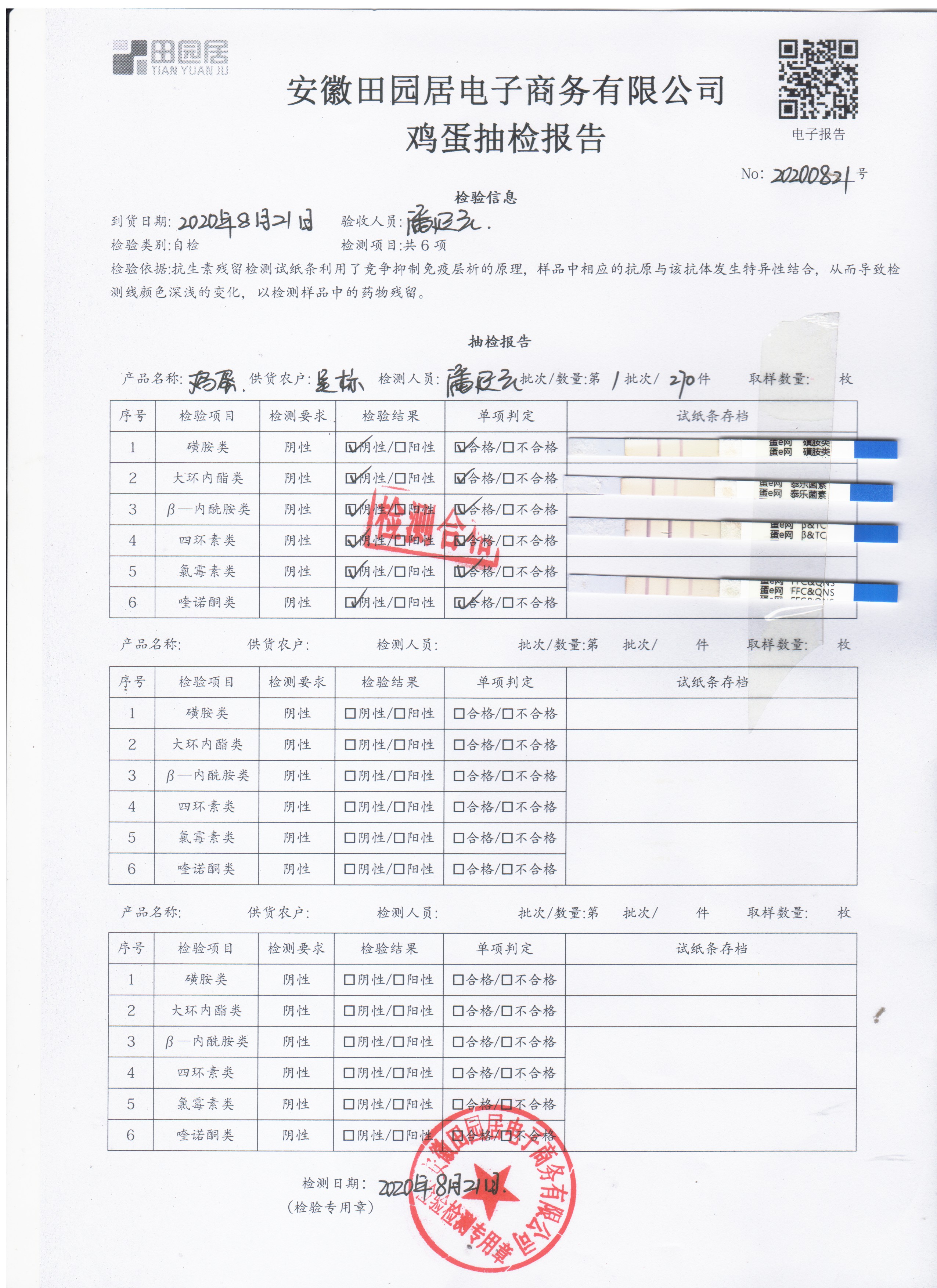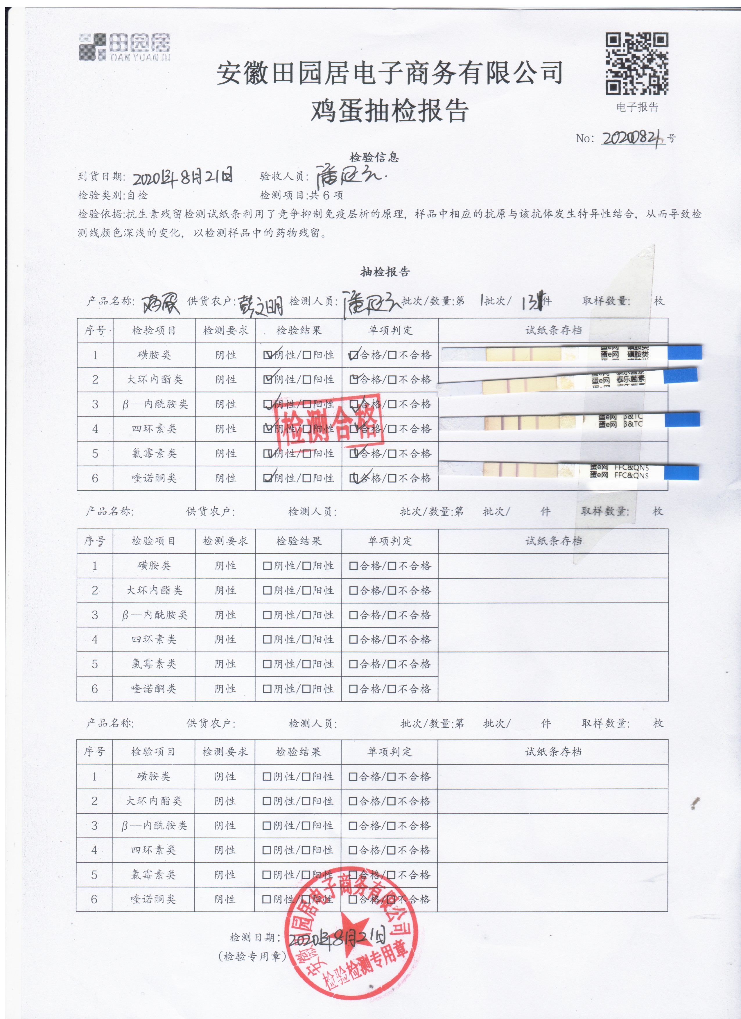 2020年8月20日鲜鸡蛋无抗检测