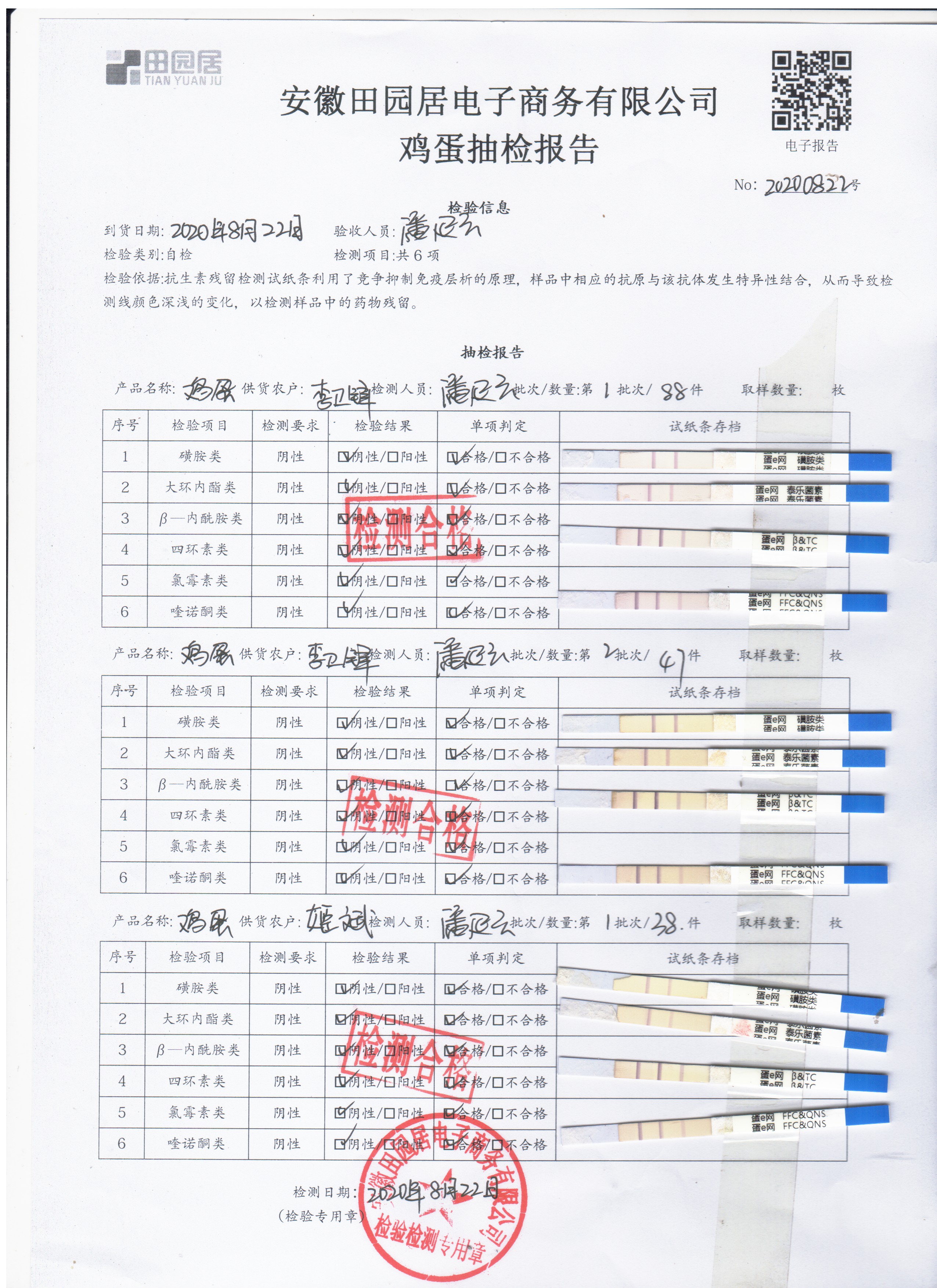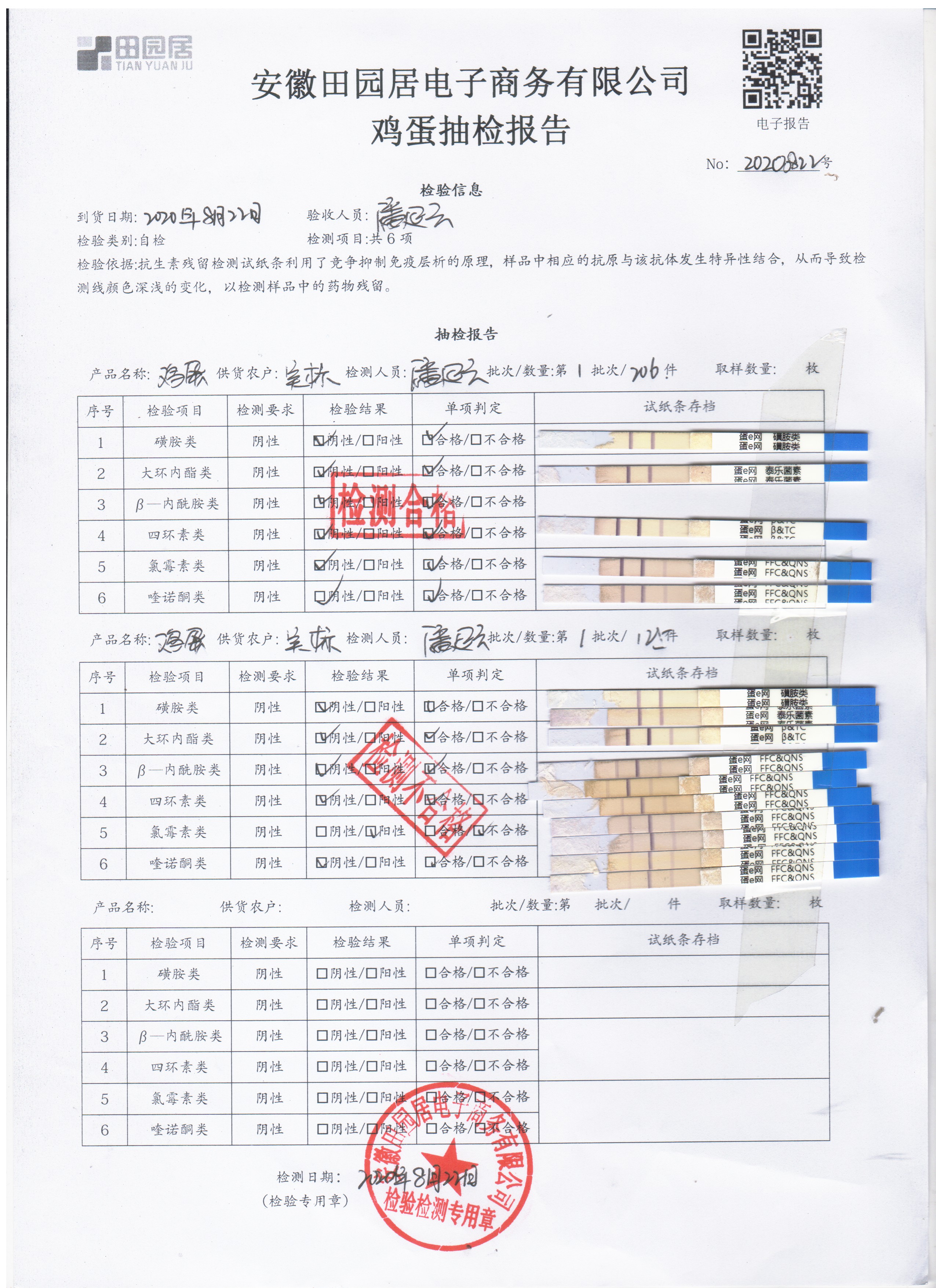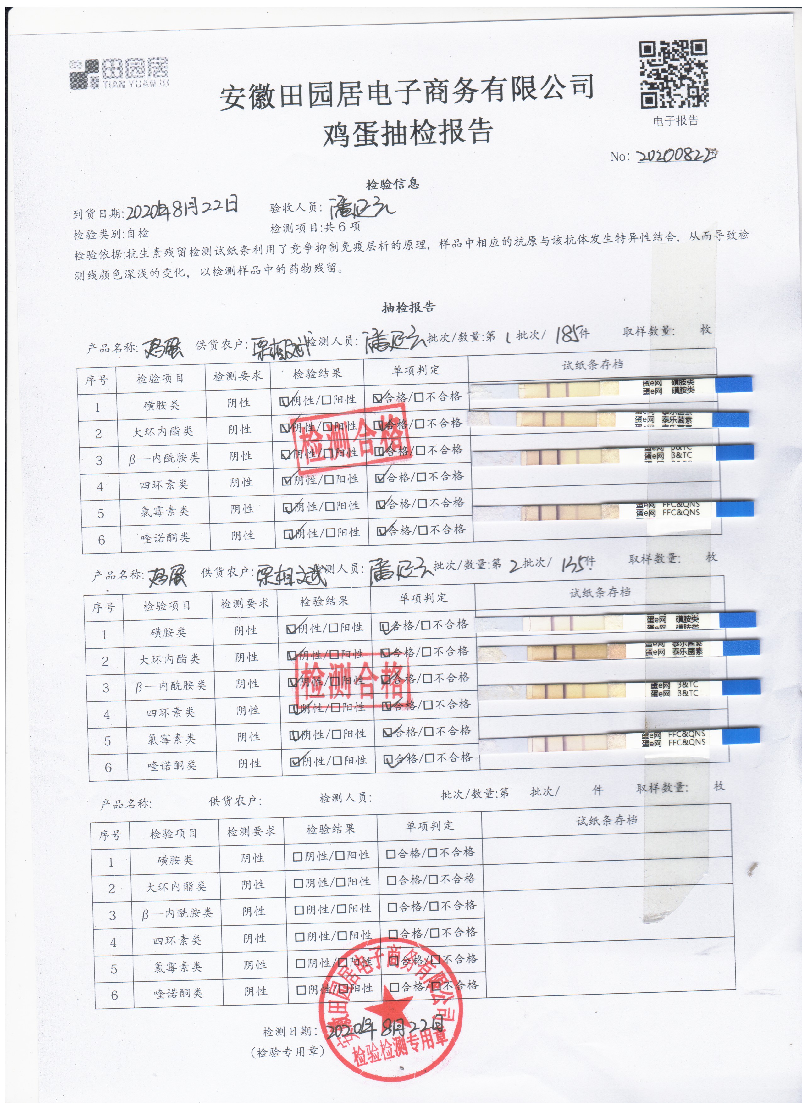 2020年8月22日鲜鸡蛋无抗检测