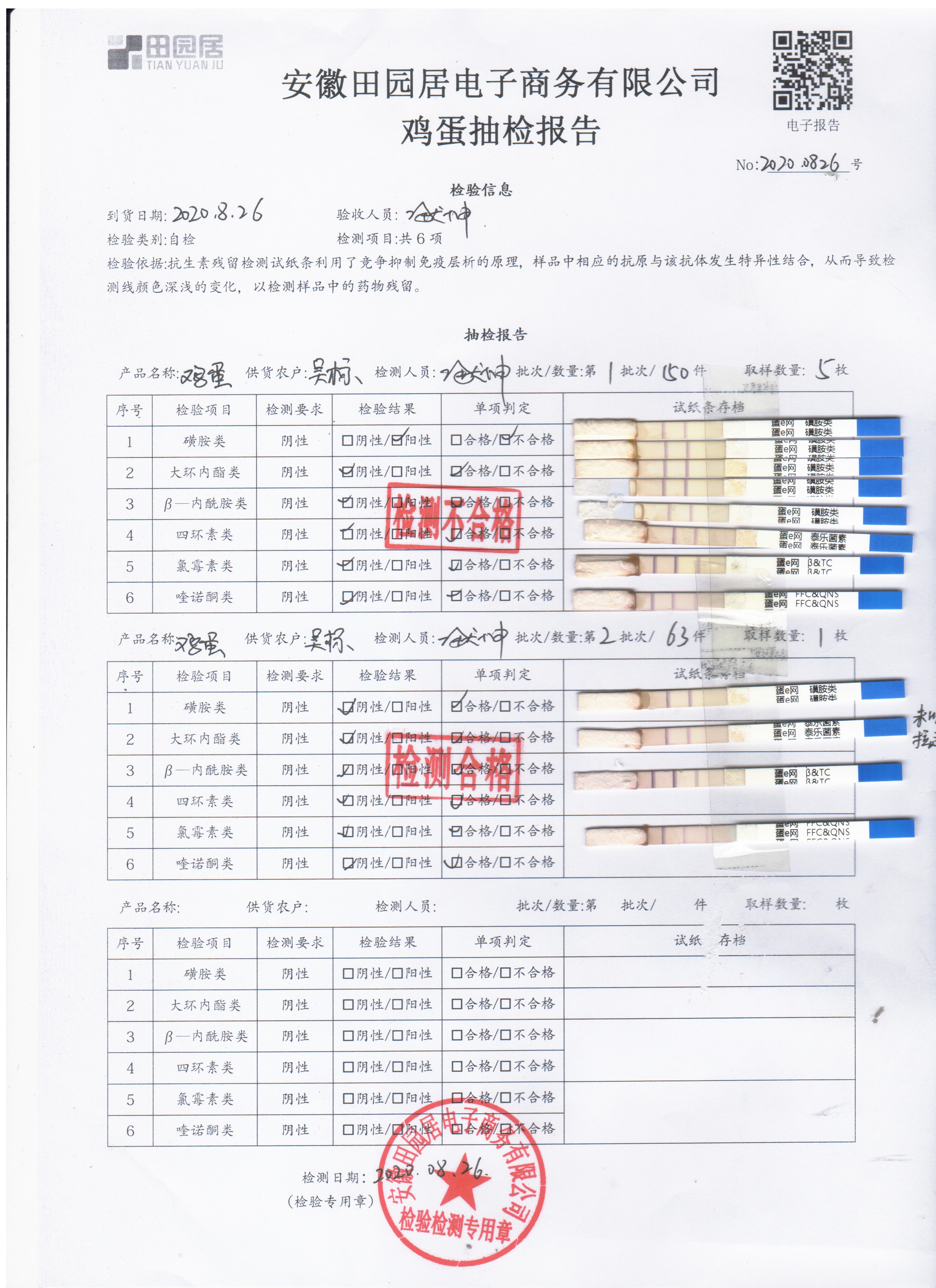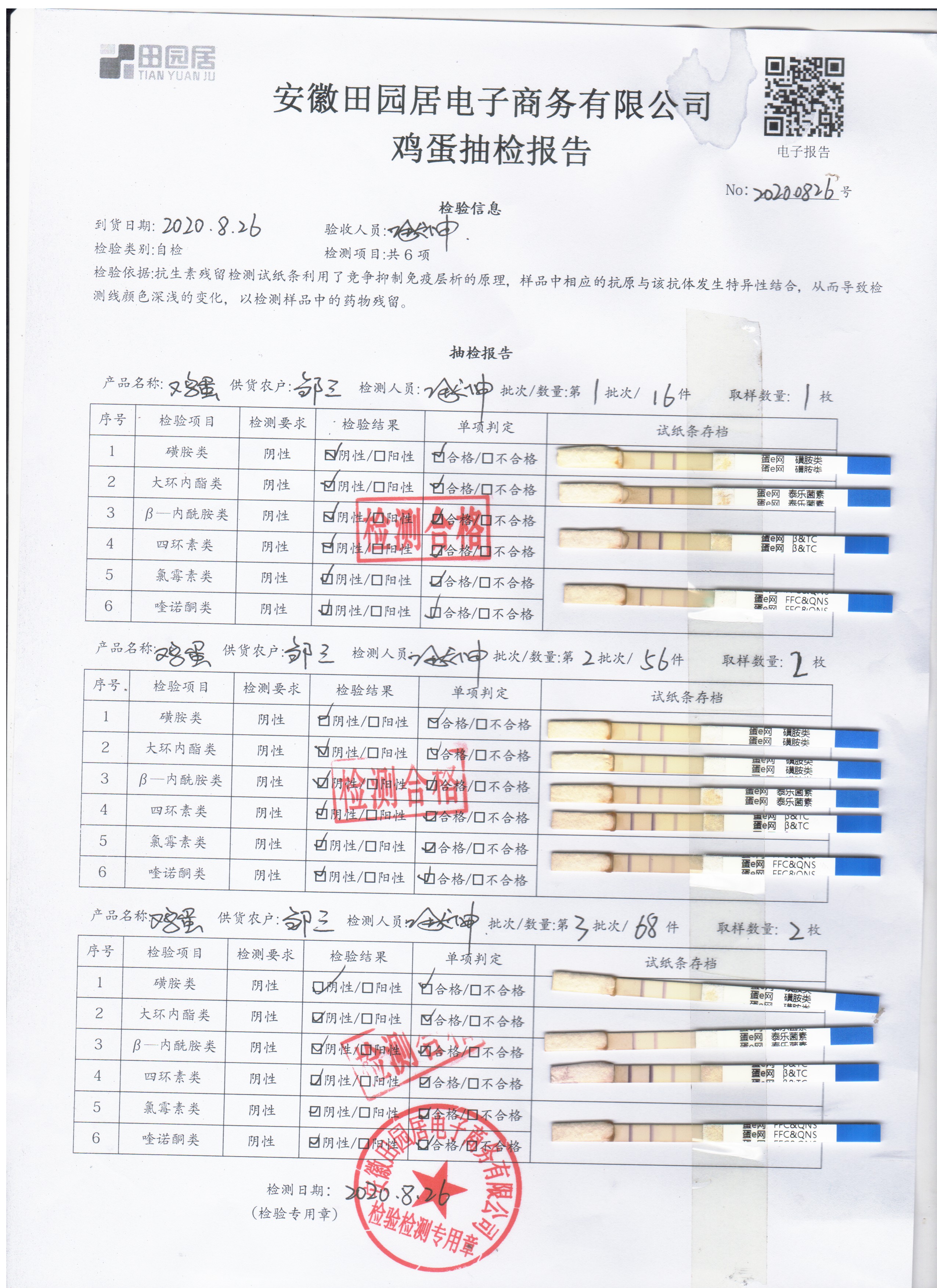 2020年8月26日鲜鸡蛋无抗检测