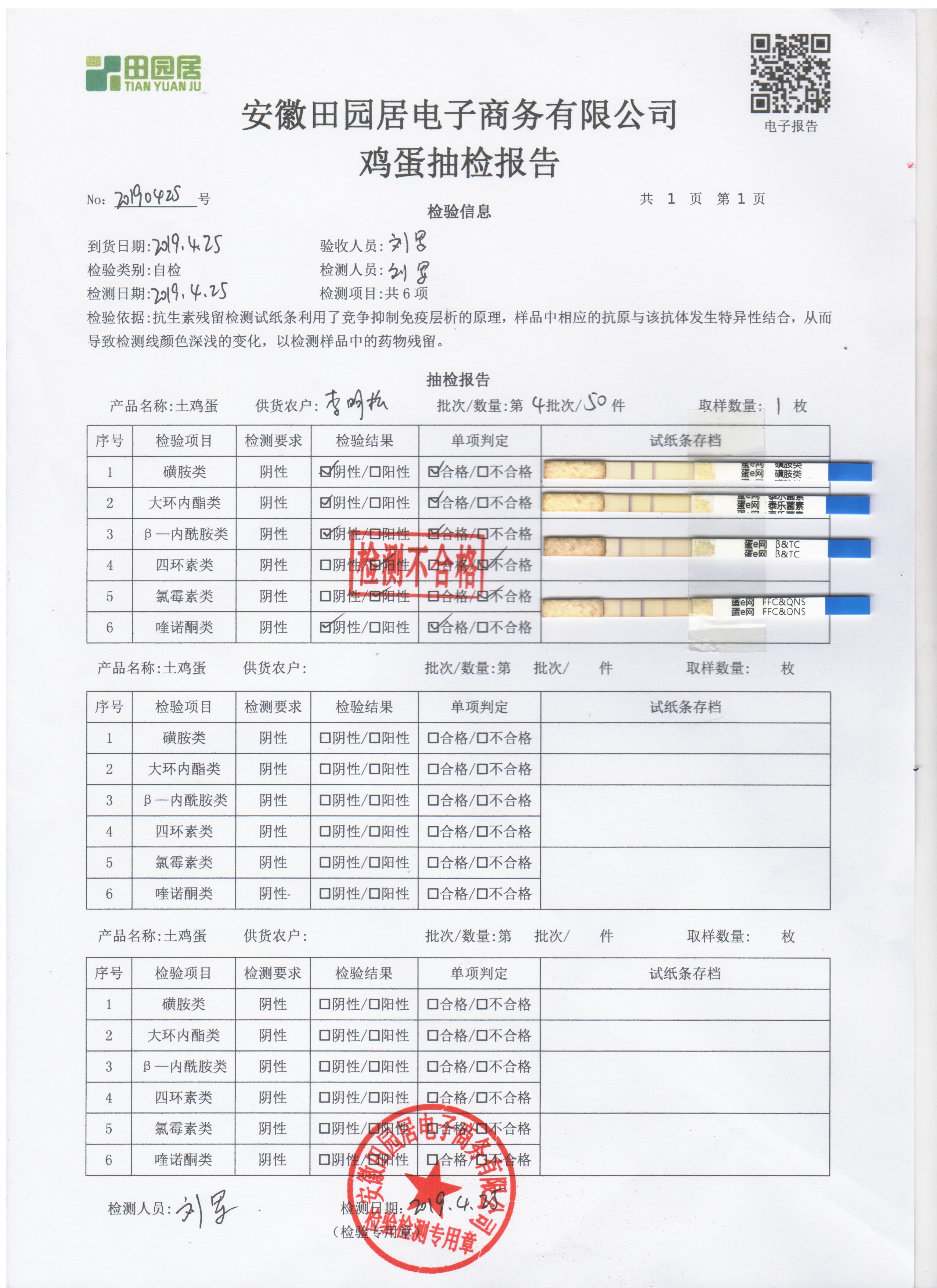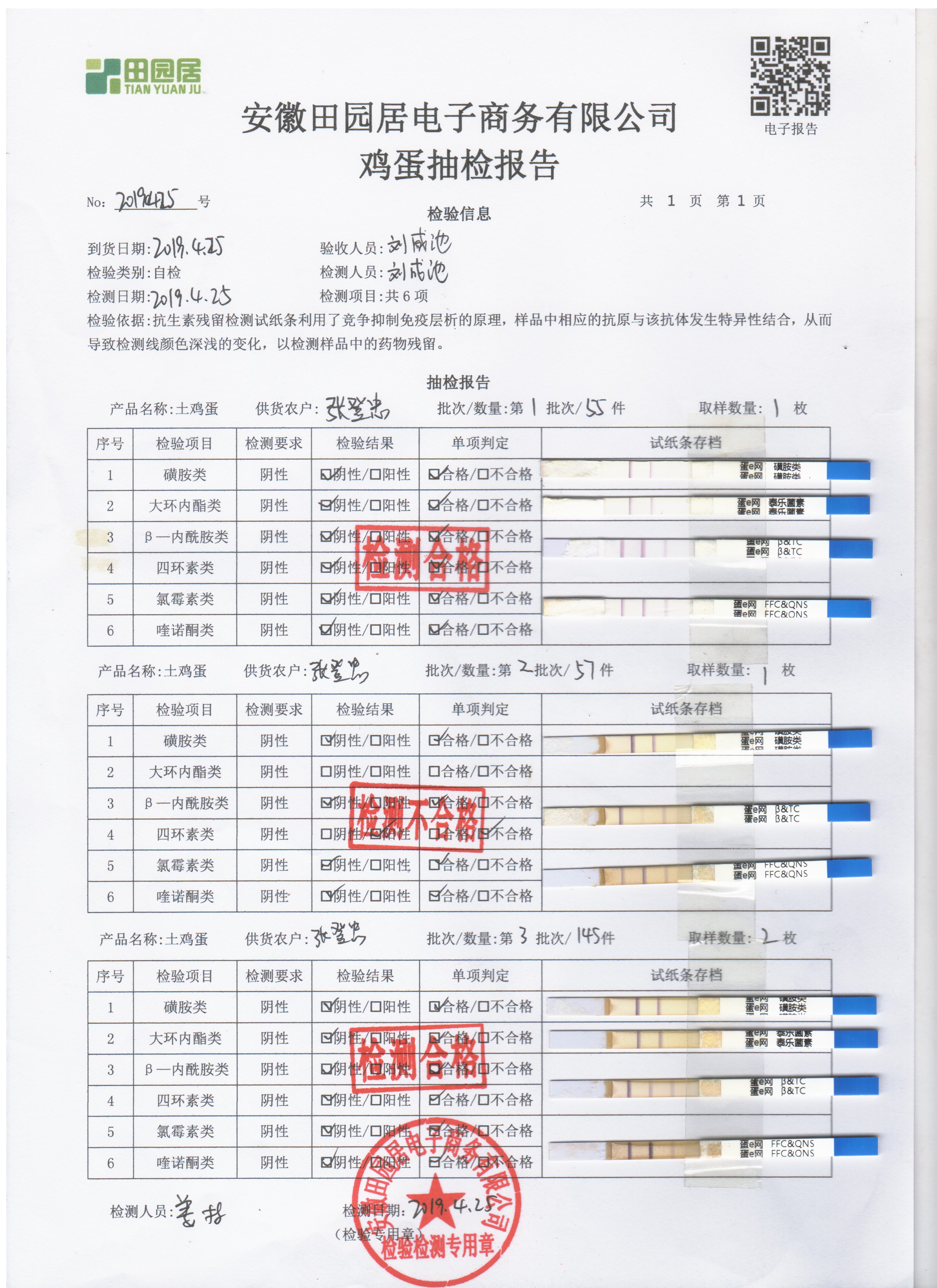 2019年4月25日鸡蛋自检报告
