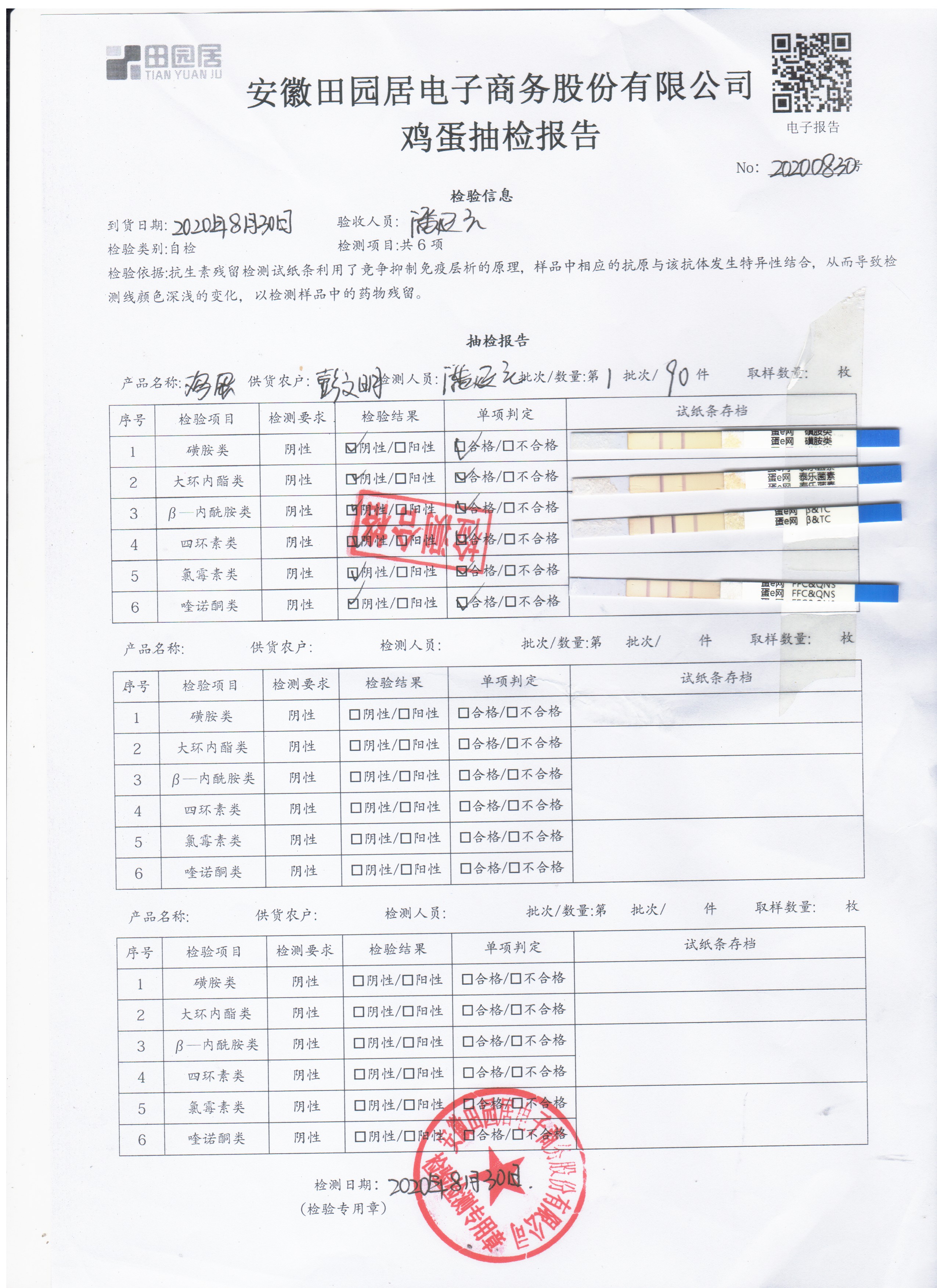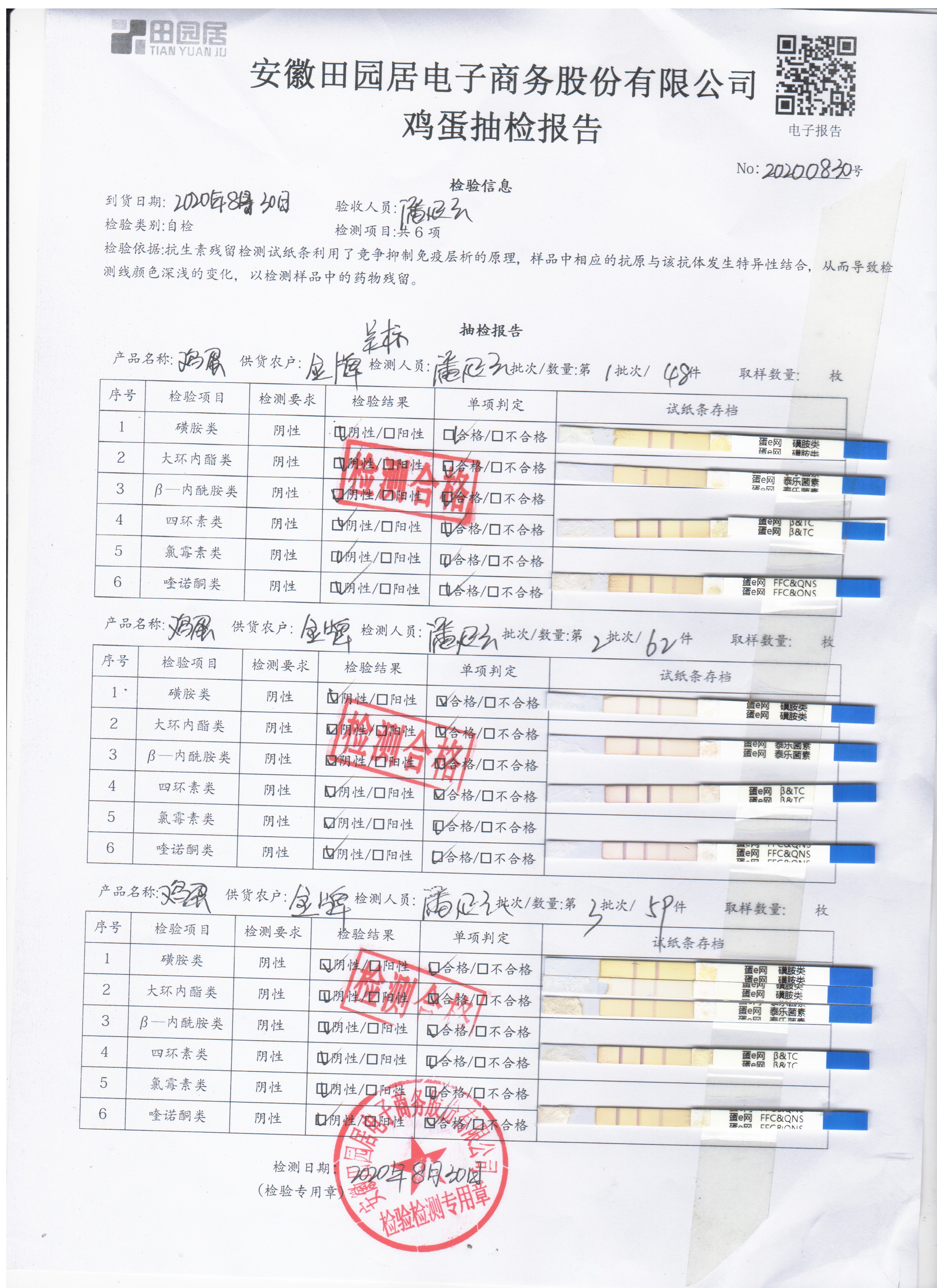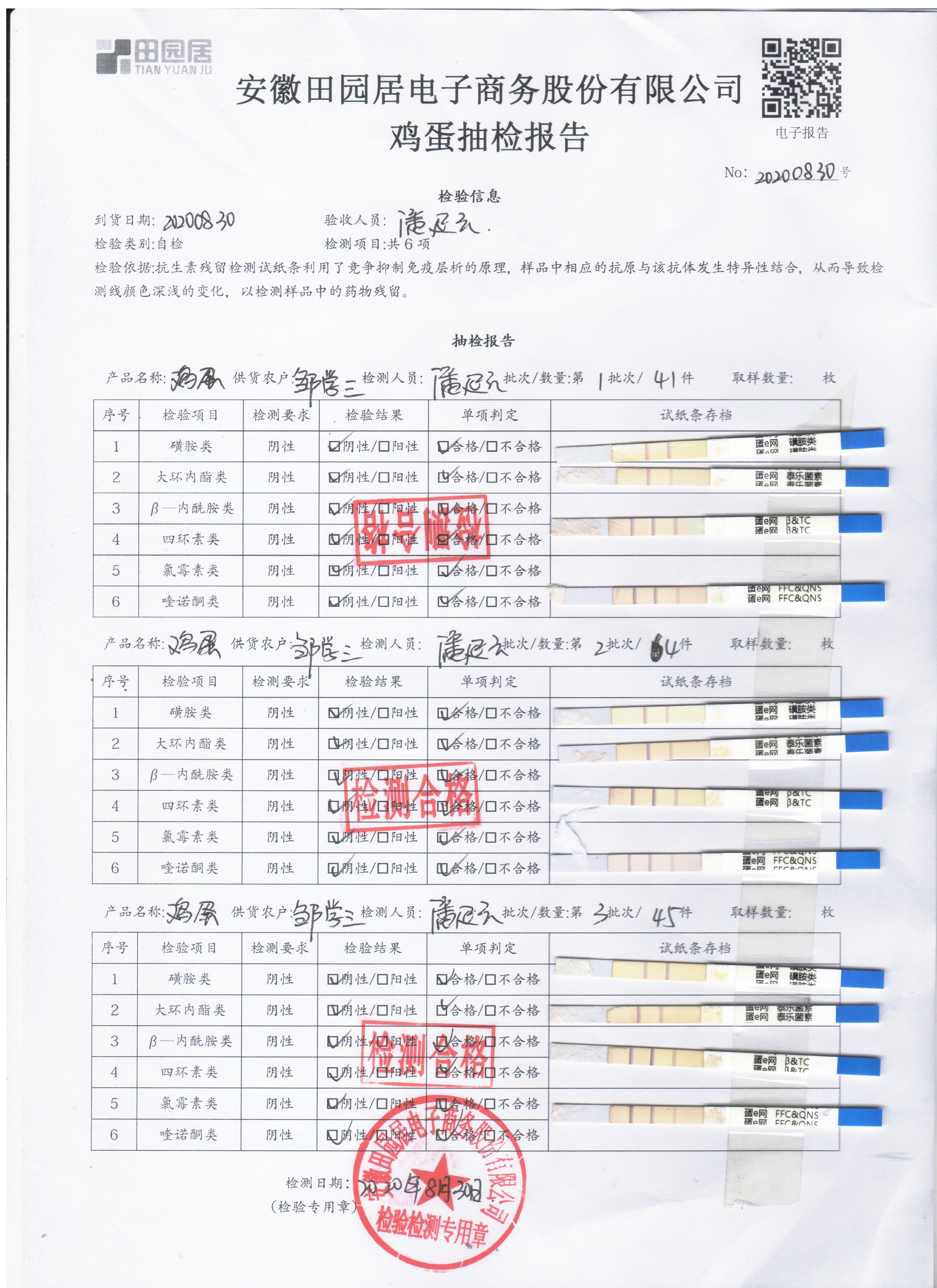 2020年8月30日鲜鸡蛋无抗检测