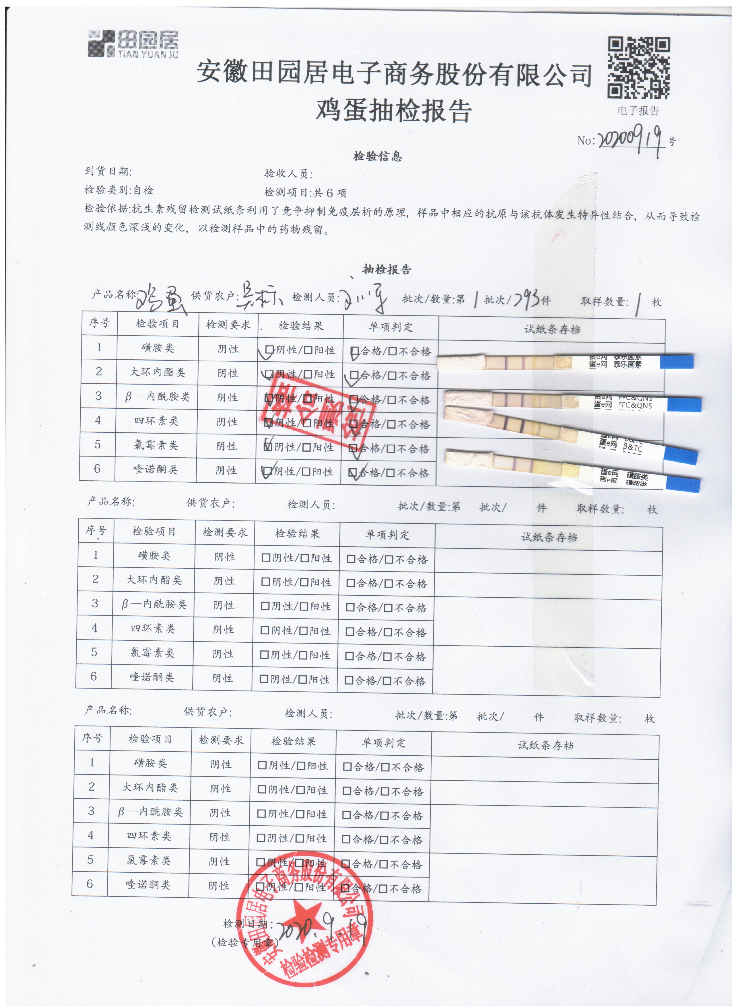 2020年9月18日鲜鸡蛋无抗检测