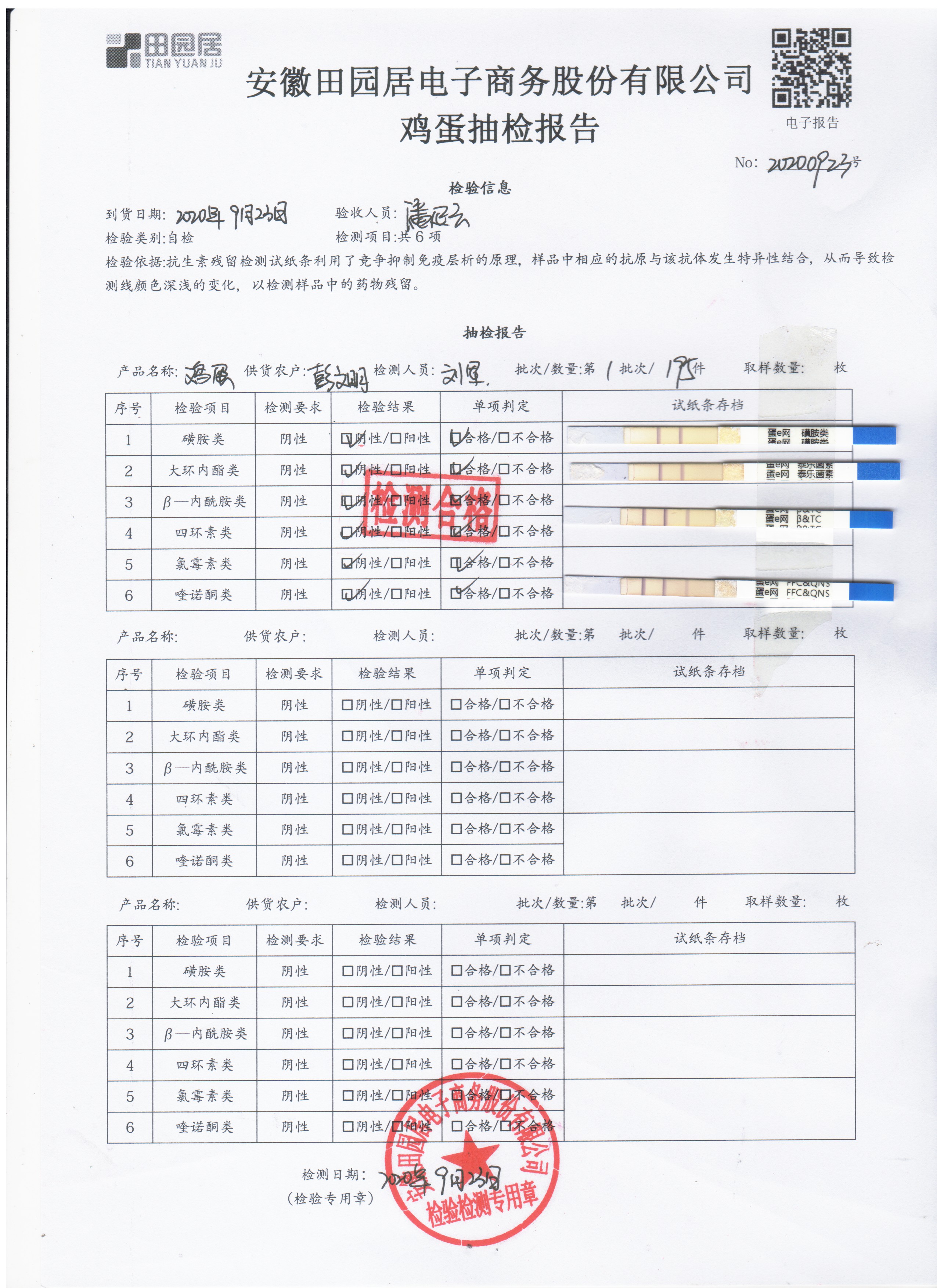 2020年9月22日鲜鸡蛋无抗检测