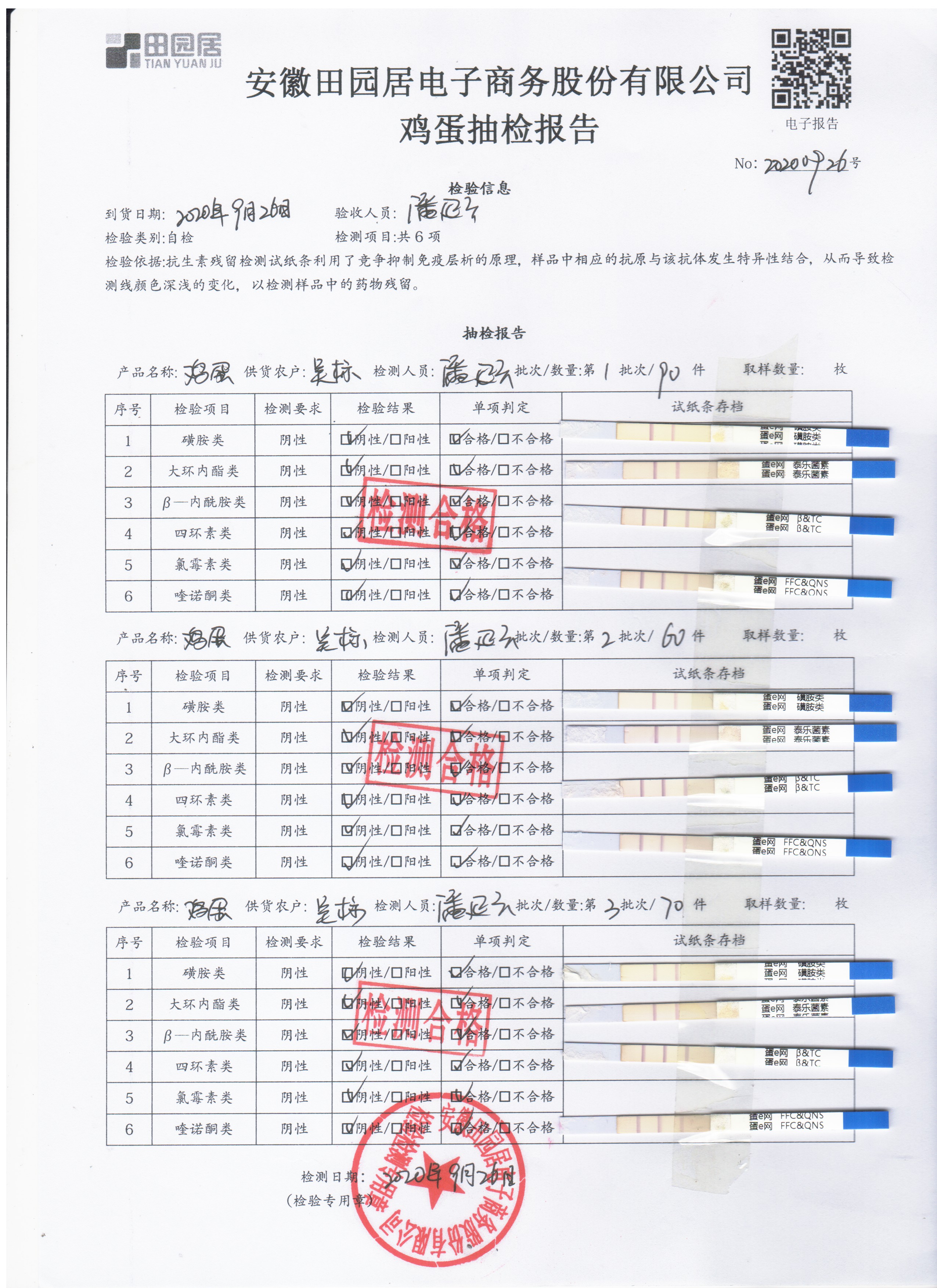2020年9月25日鲜鸡蛋无抗检测