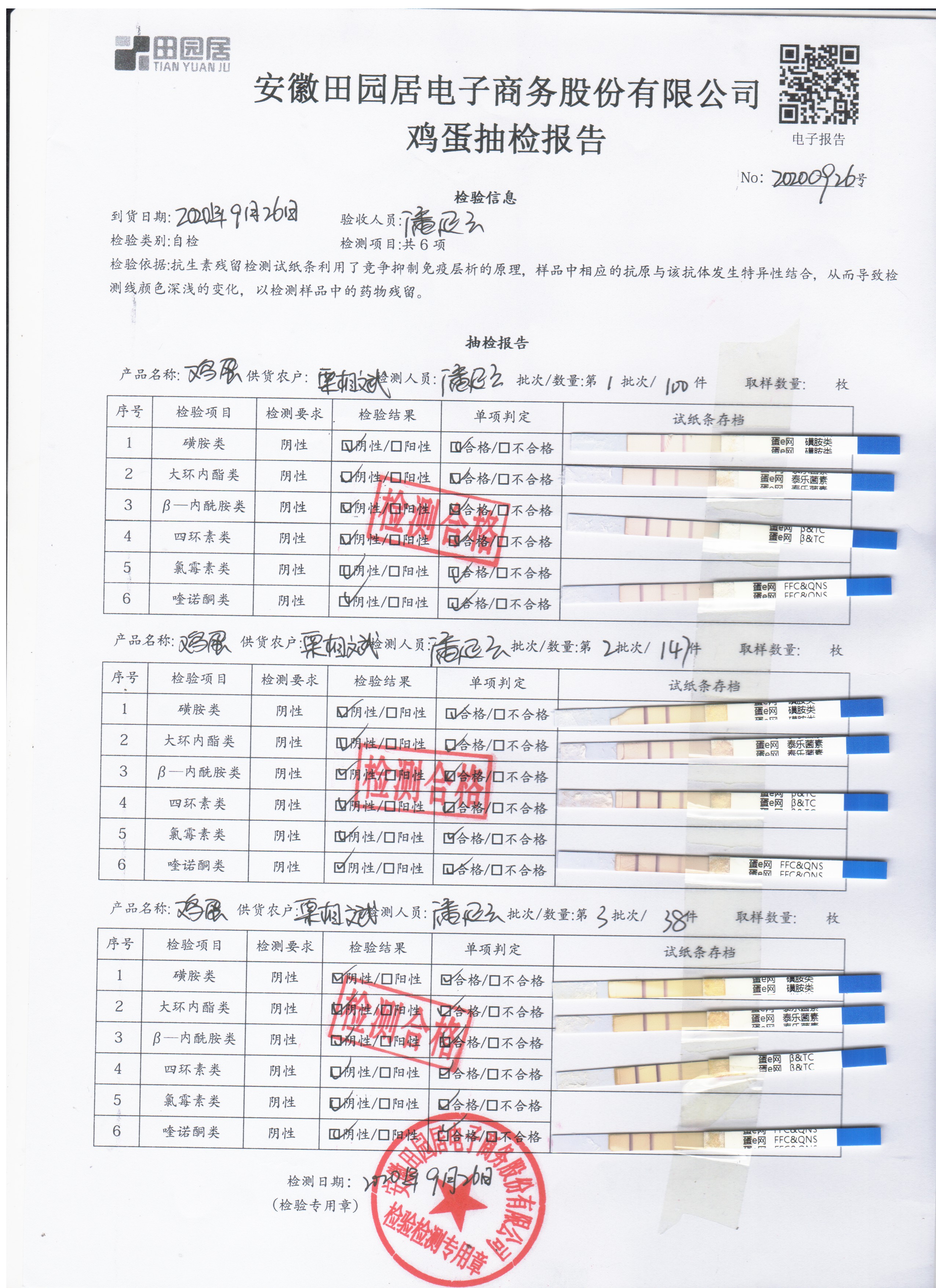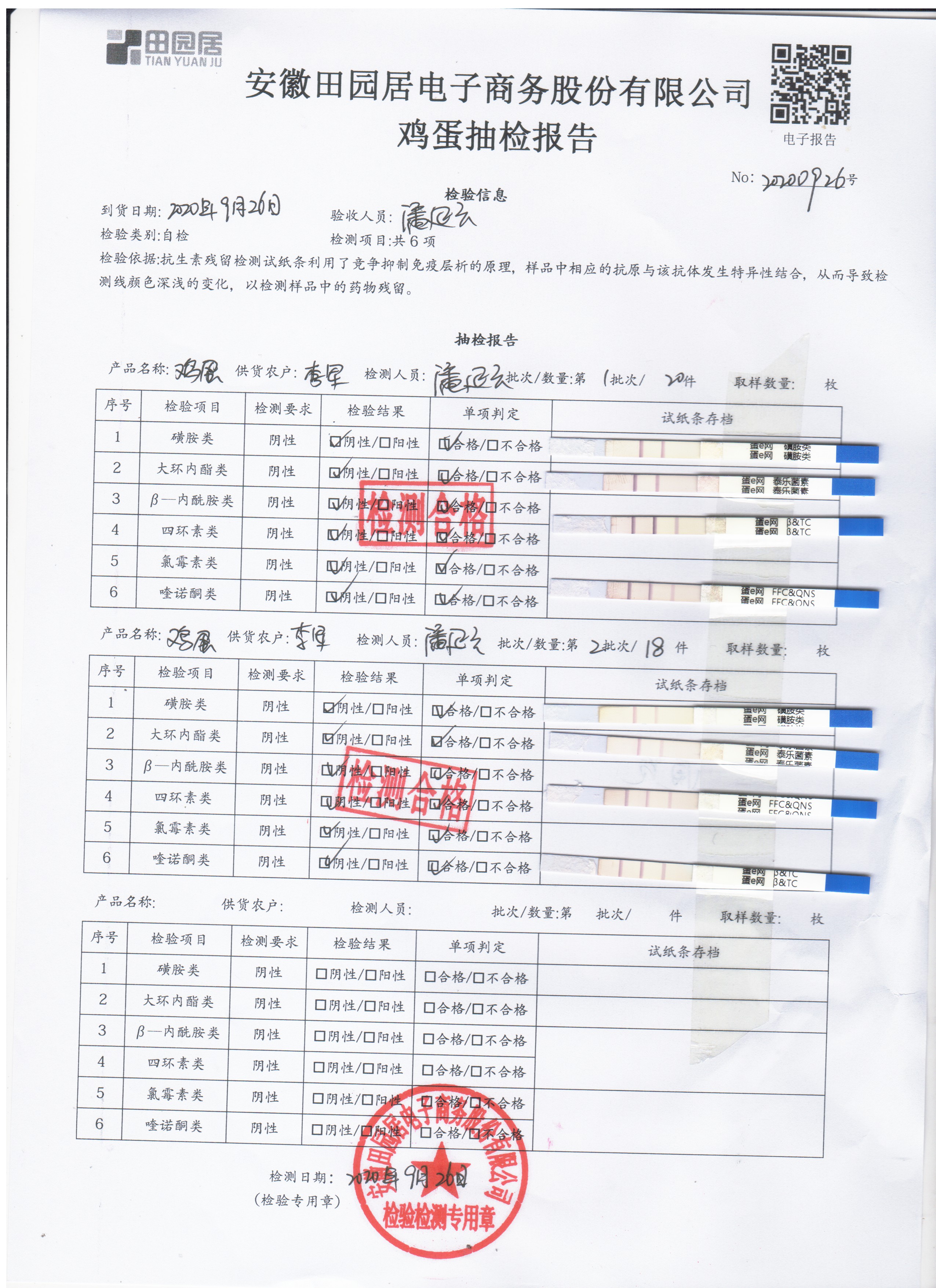 2020年9月26日鲜鸡蛋无抗检测
