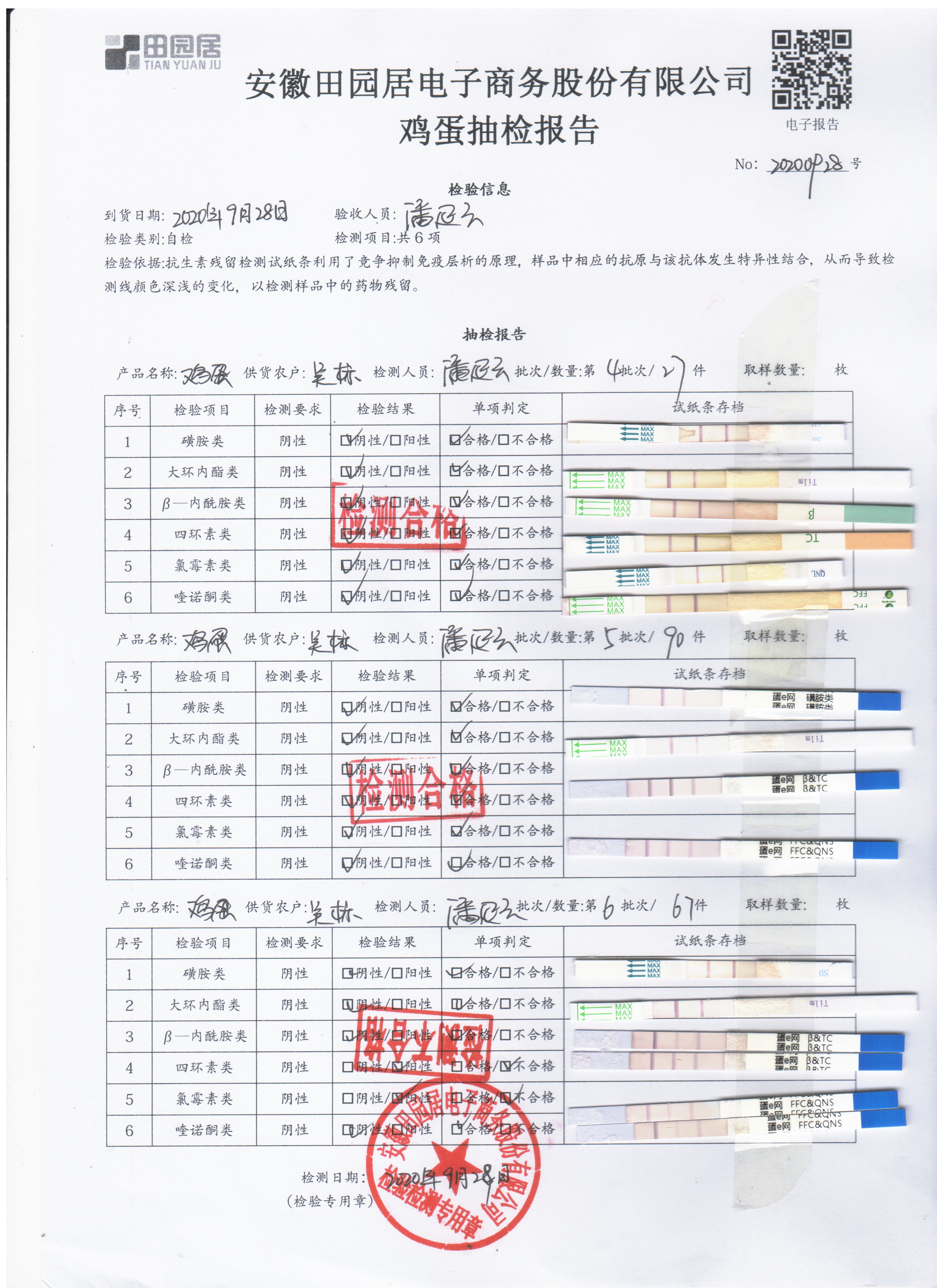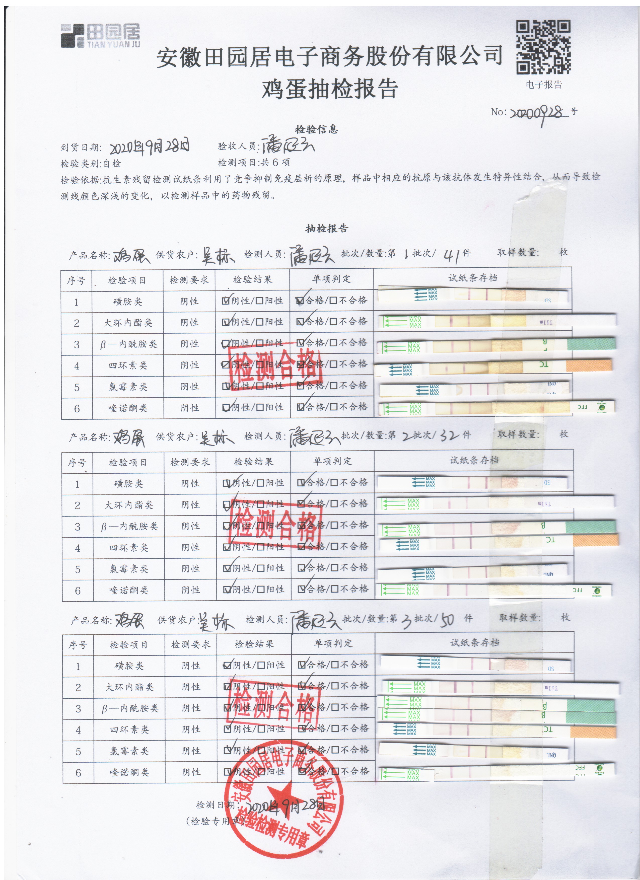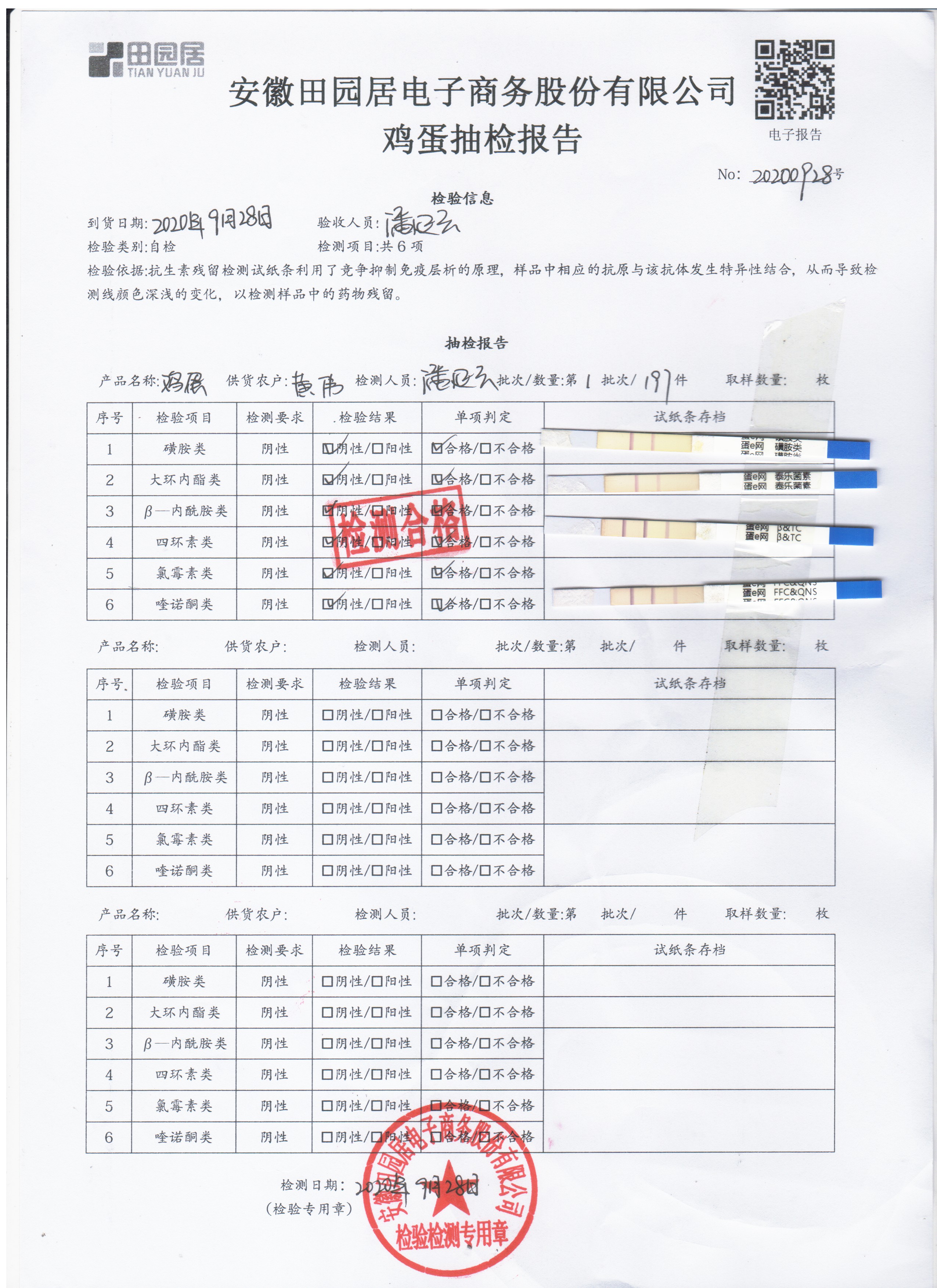 2020年9月28日鲜鸡蛋无抗检测