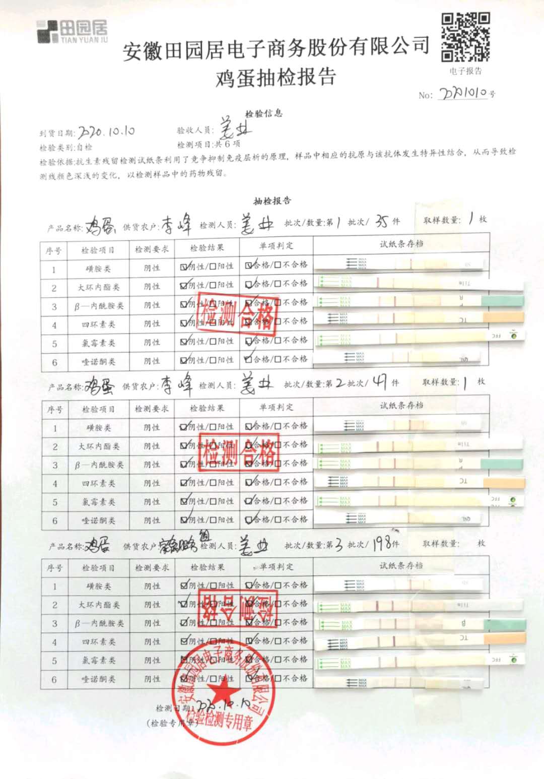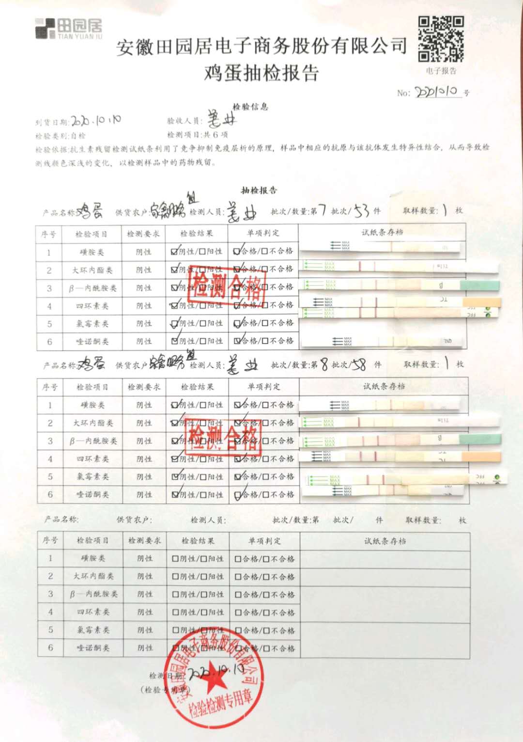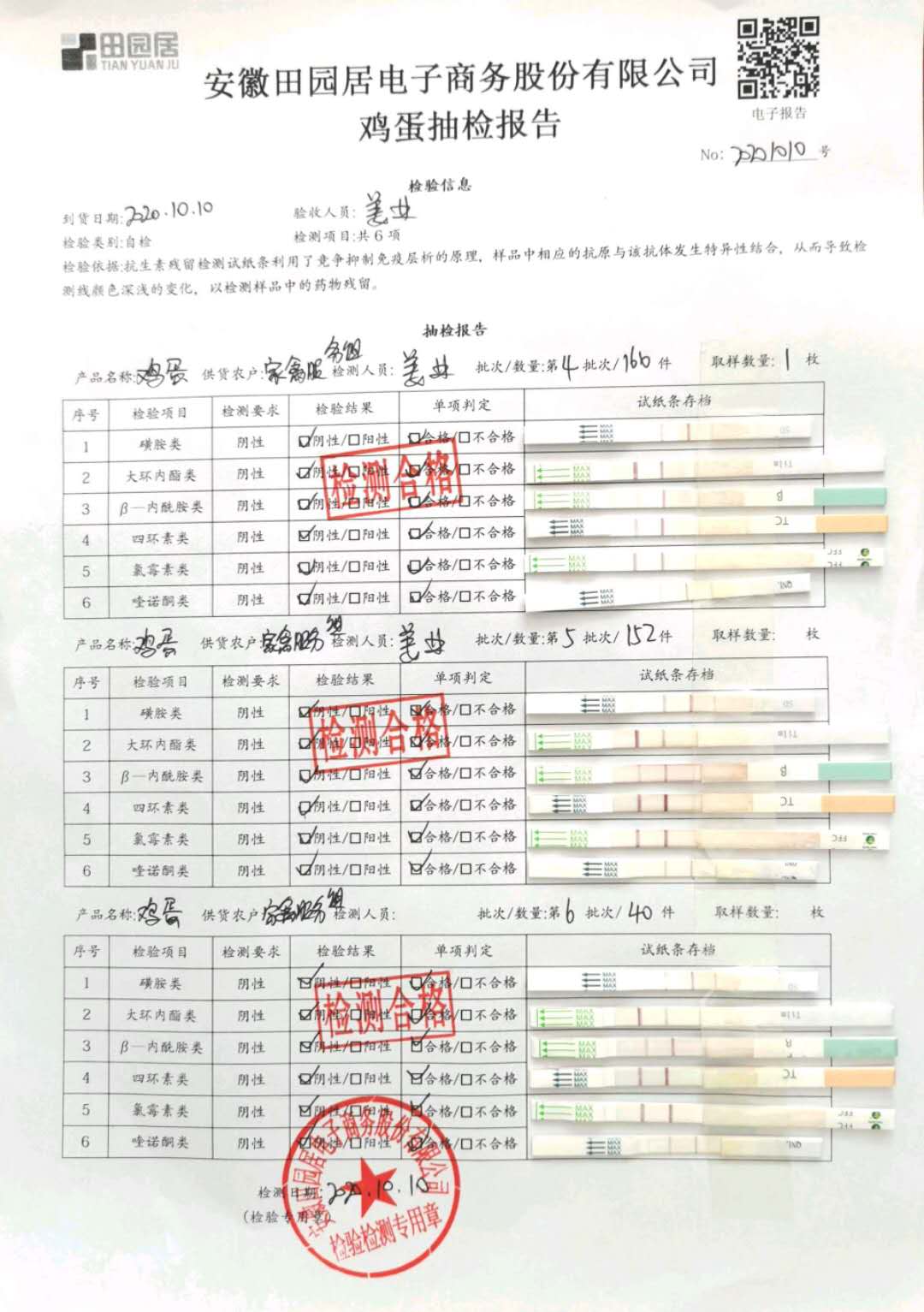 2020年10月10日鲜鸡蛋无抗检测