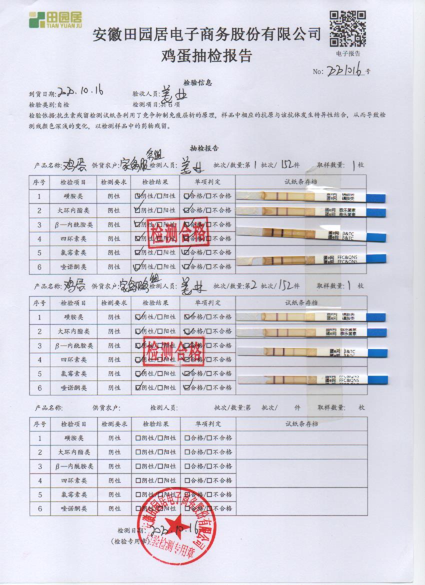 2020年10月16日鲜鸡蛋无抗检测