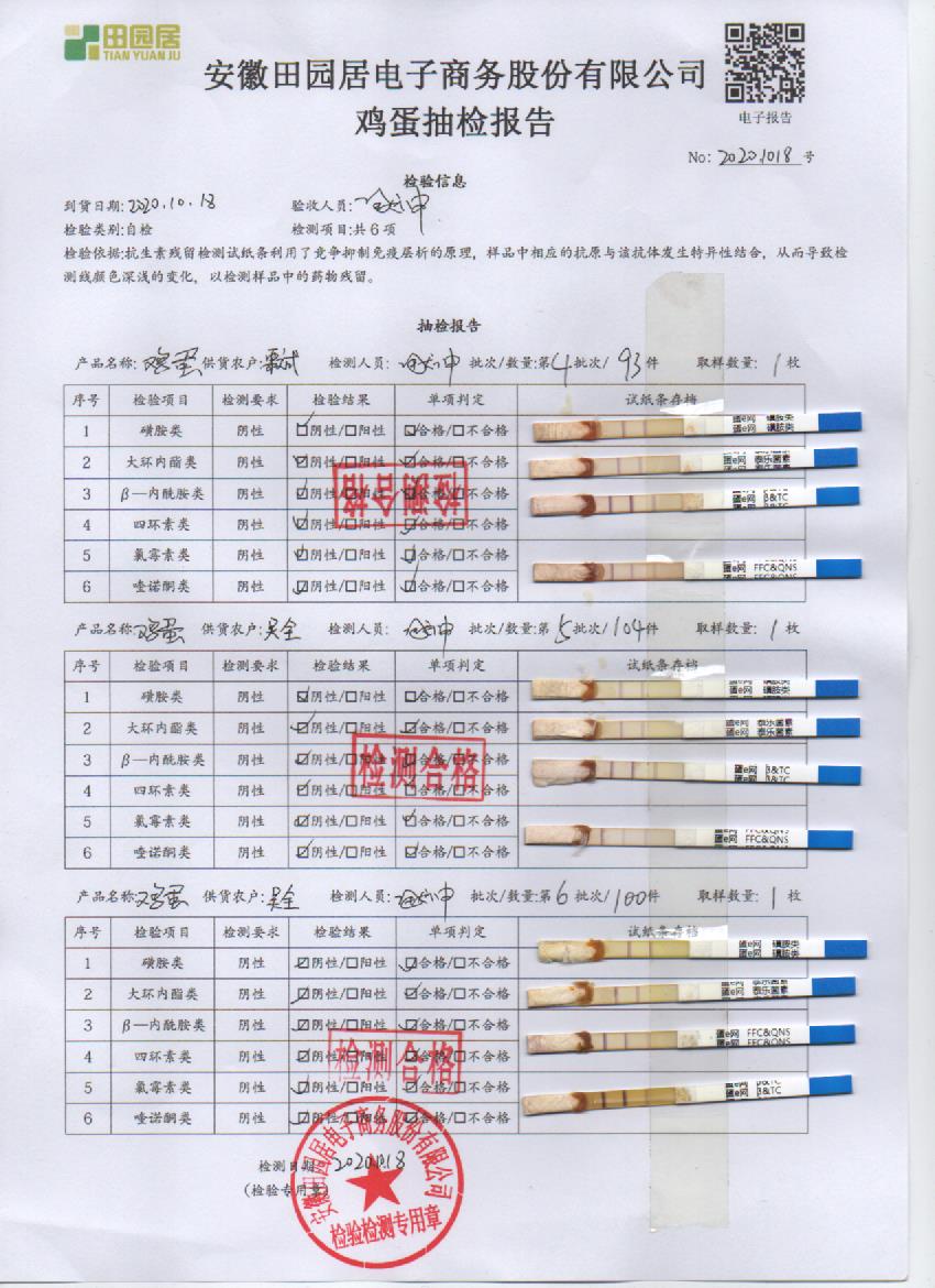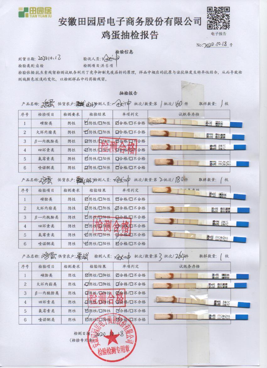 2020年10月18日鲜鸡蛋无抗检测