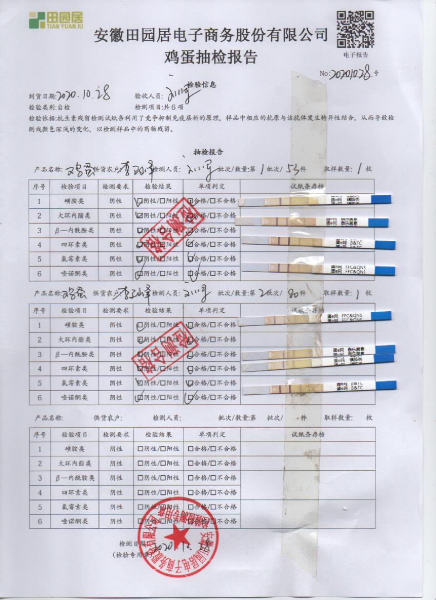 2020年10月28日鲜鸡蛋无抗检测