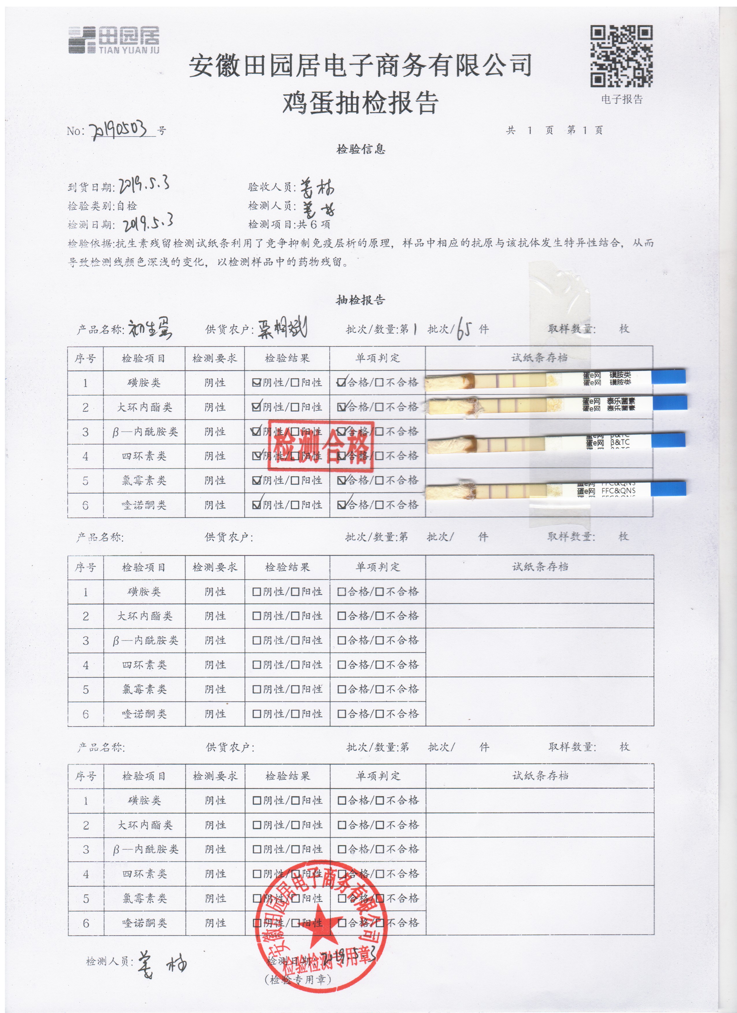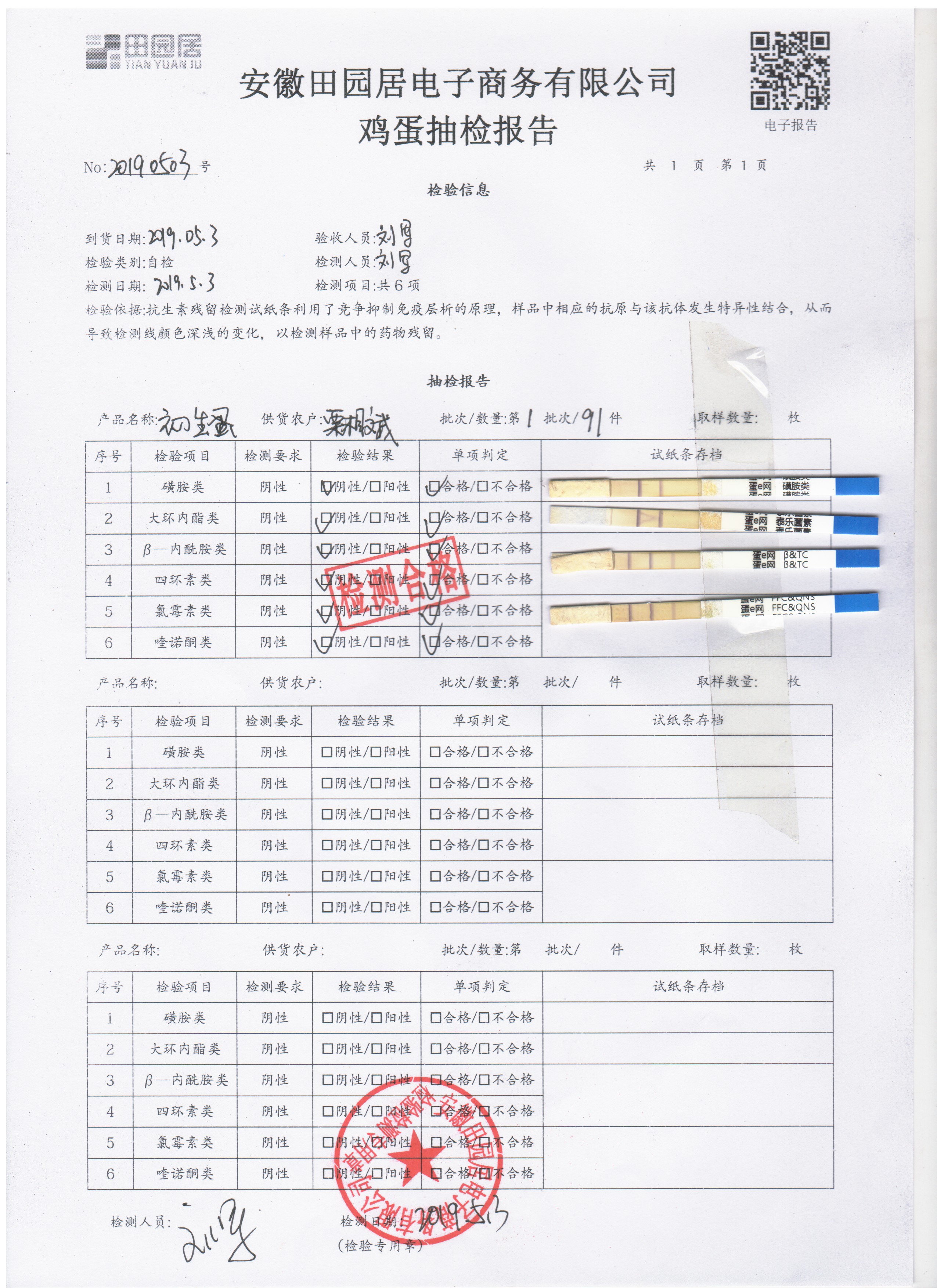 2019年5月3日鸡蛋自检报告