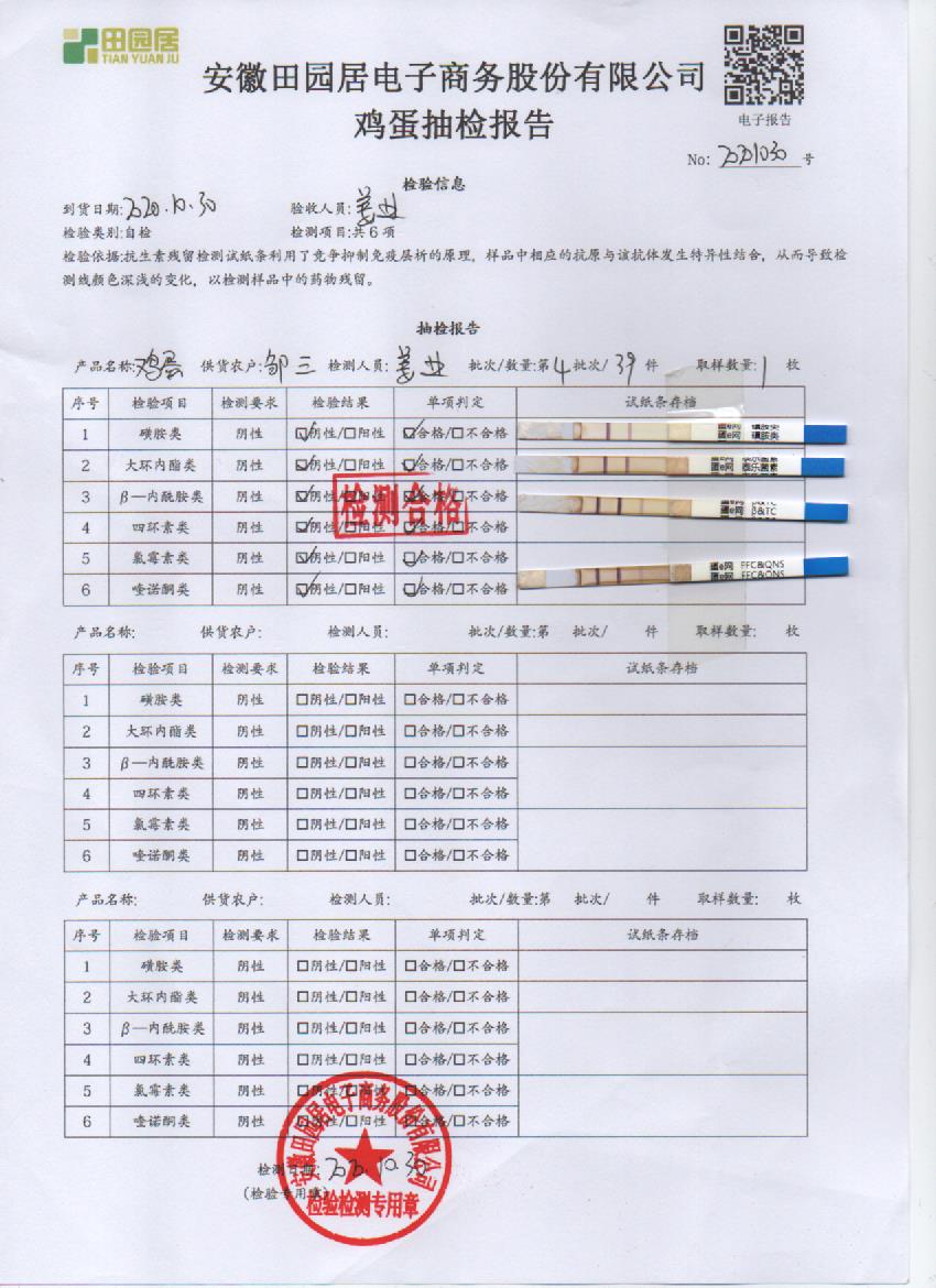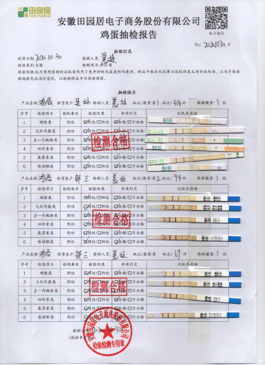 2020年10月30日鲜鸡蛋无抗检测