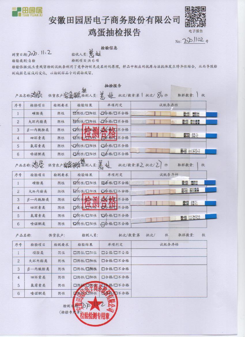 2020年11月2日鲜鸡蛋无抗检测