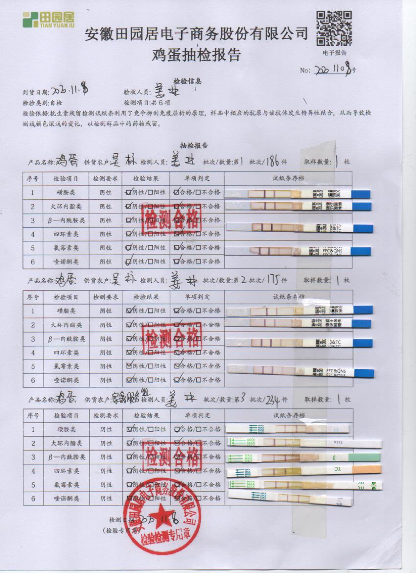 2020年11月8日鲜鸡蛋无抗检测