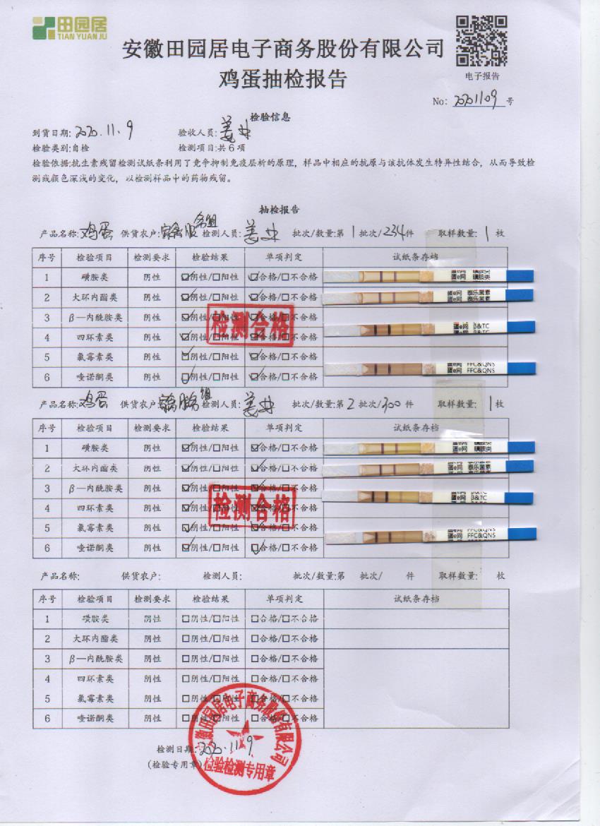 2020年11月9日鲜鸡蛋检测报告