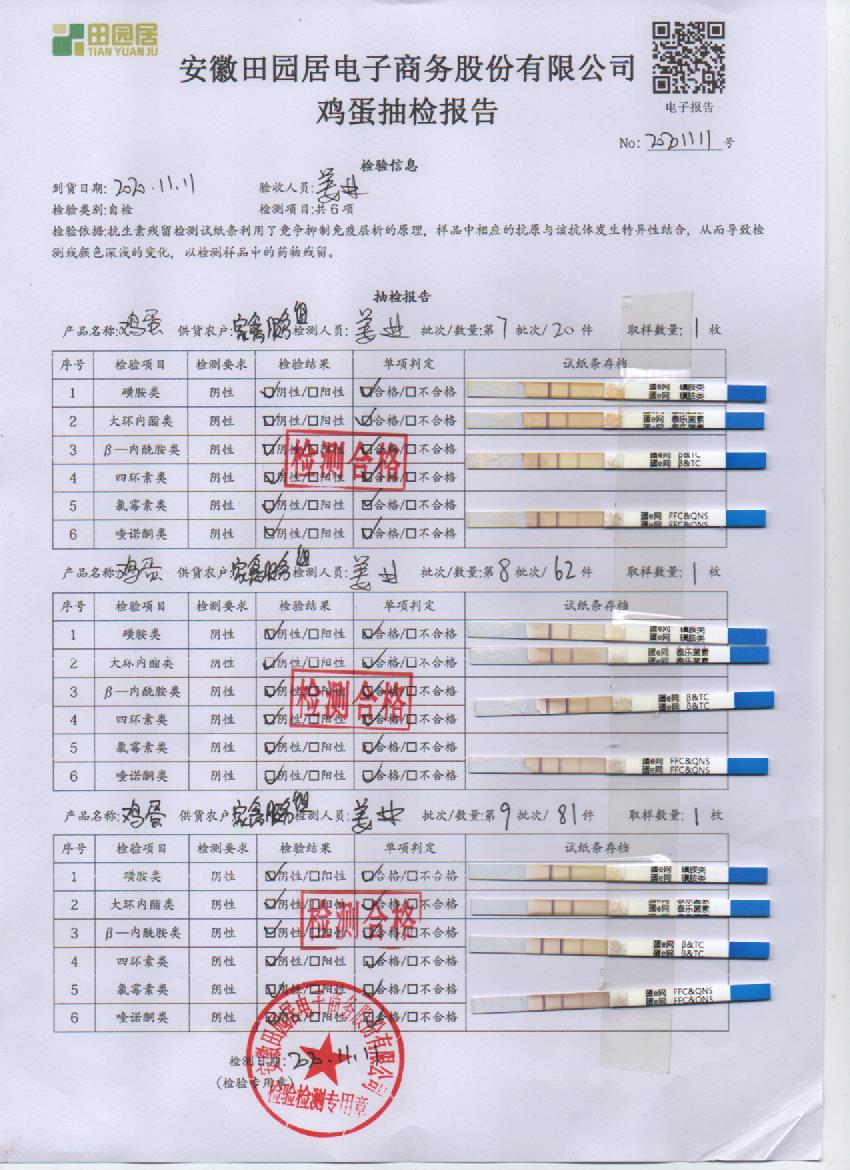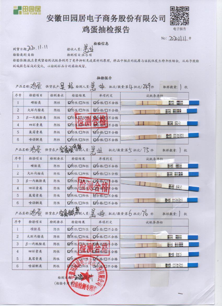2020年11月11日鲜鸡蛋检测报告