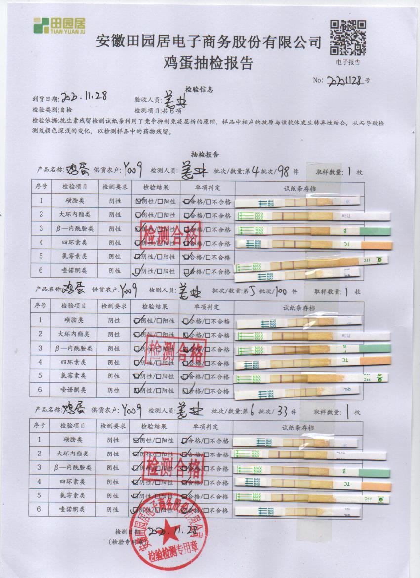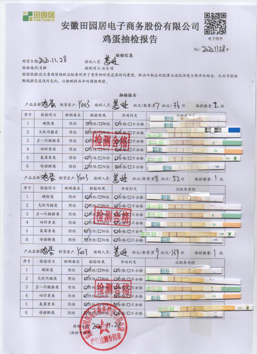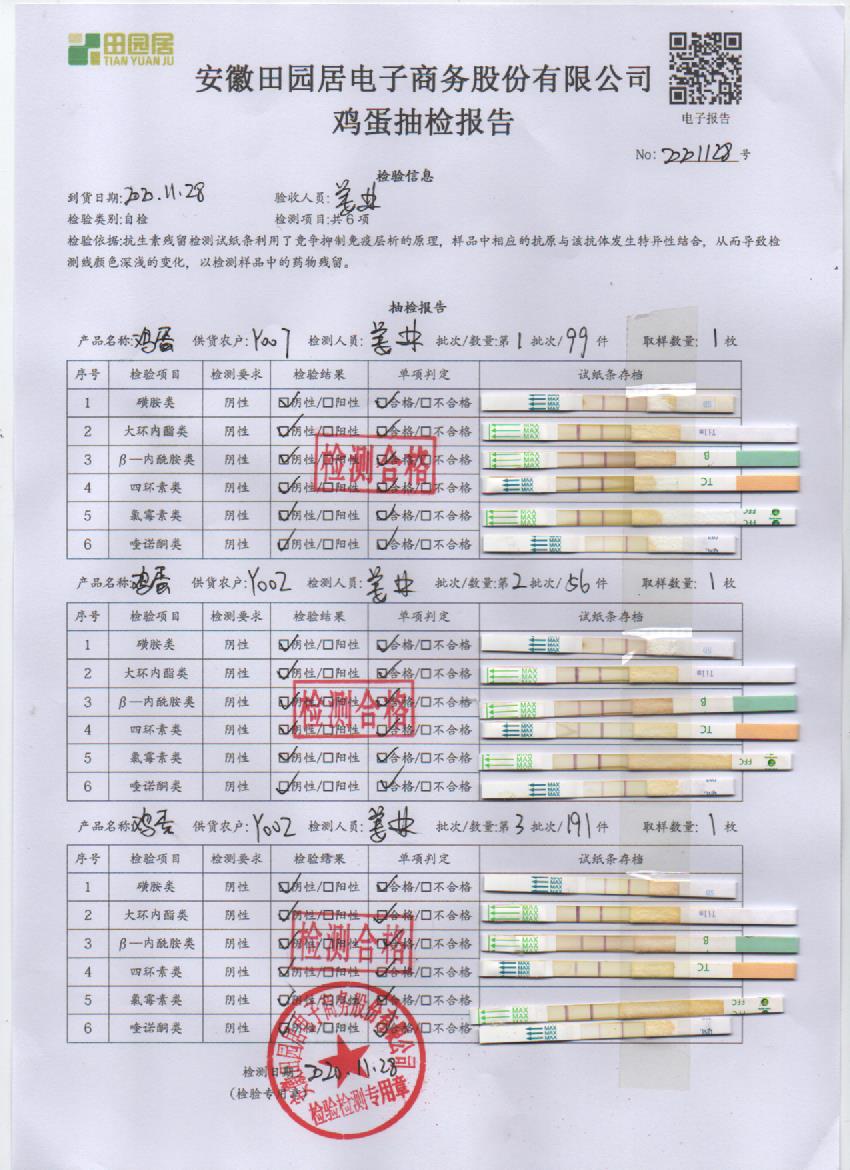 2020年11月28日鲜鸡蛋检测报告