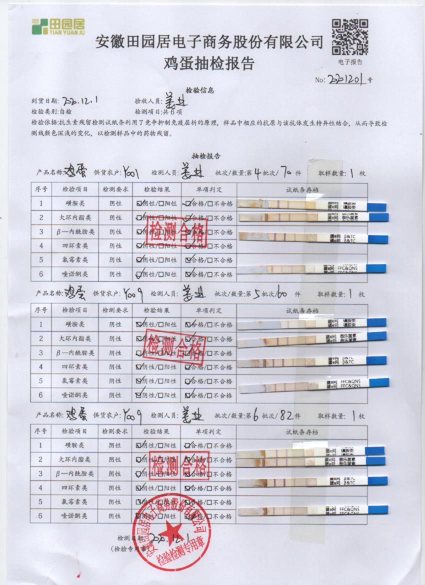 2020年12月1日鲜鸡蛋检测报告