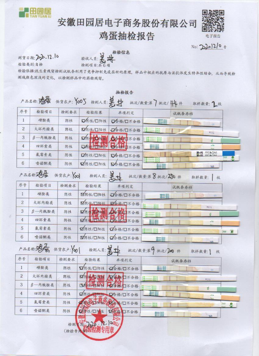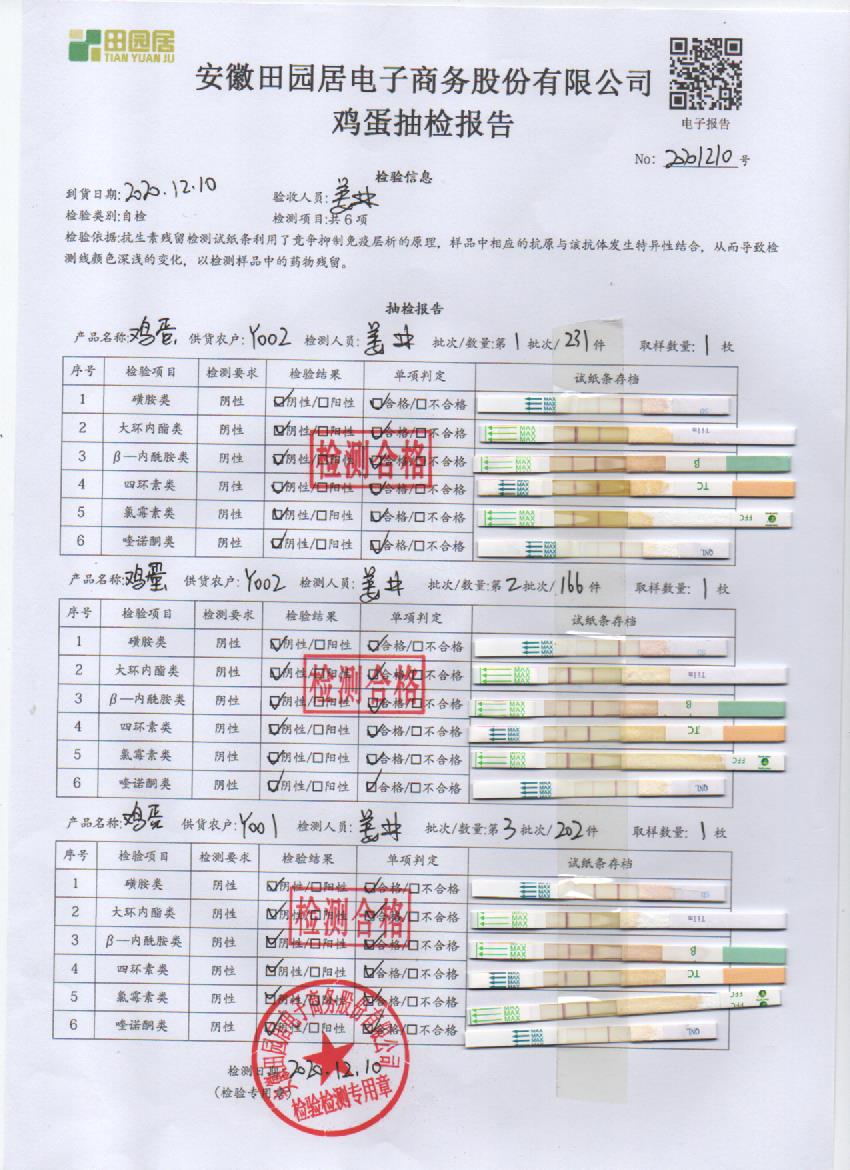 2020年12月10日鲜鸡蛋检测报告