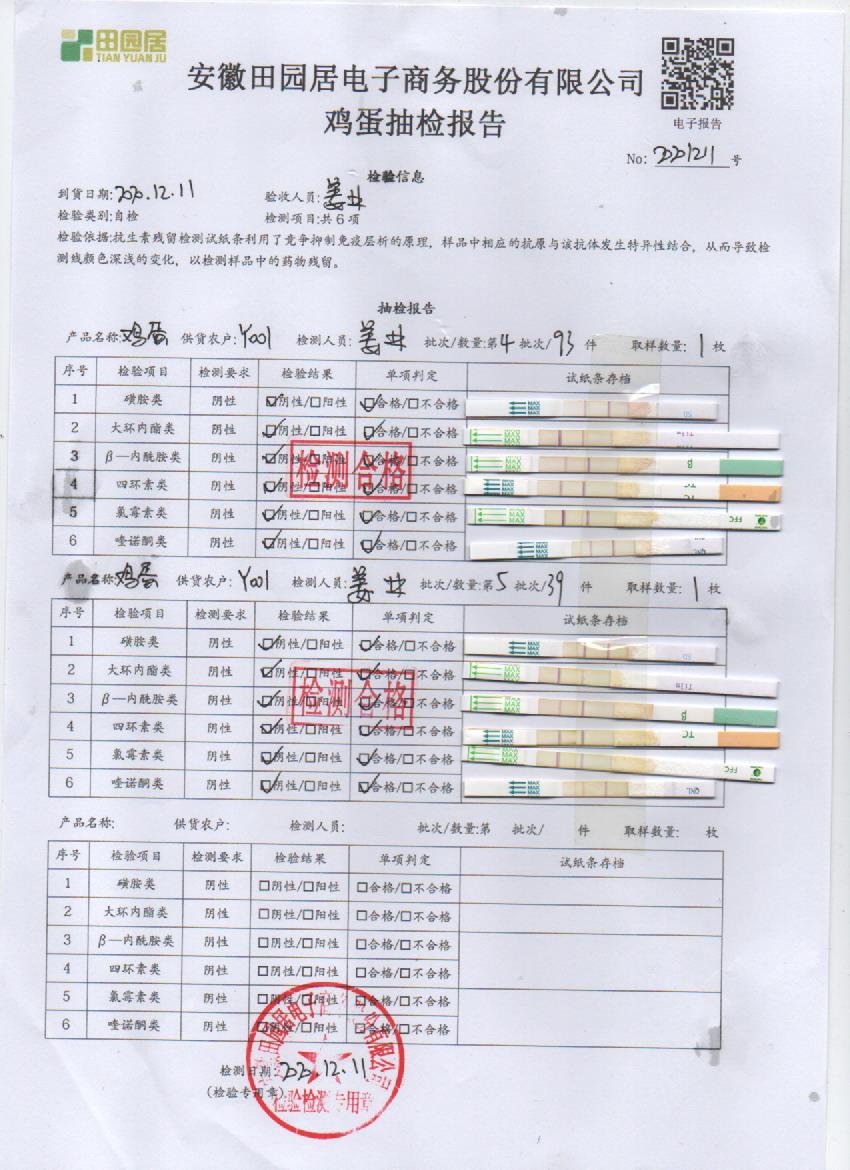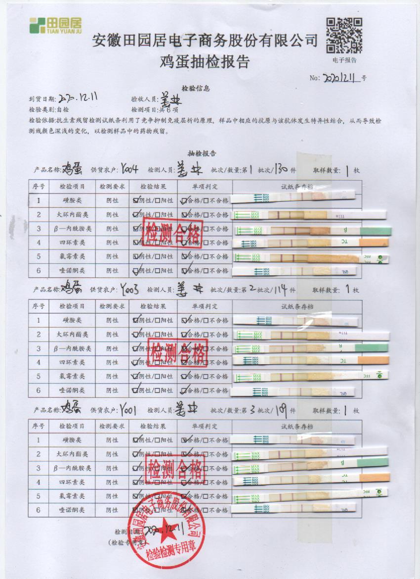 2020年12月11日鲜鸡蛋检测报告